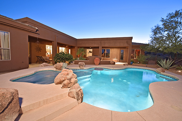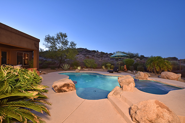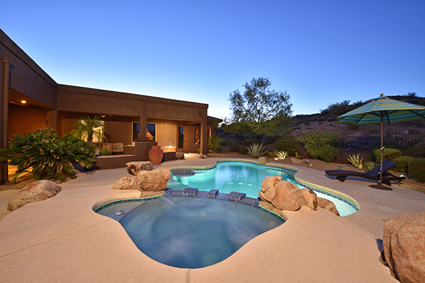 This well maintained home in the upscale gated community of Desert Summit has a sun filled, two plus acre premium lot that backs to NAOS for maximum privacy. Relax in the backyard with the sparkling pool and heated spa with boulder accents, easy maintenance desert landscaping, built in BBQ, lounge areas, covered patio, and dynamite panoramic views including the infamous Arizona sunsets.
