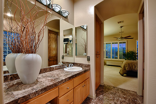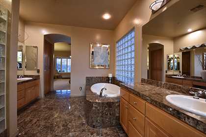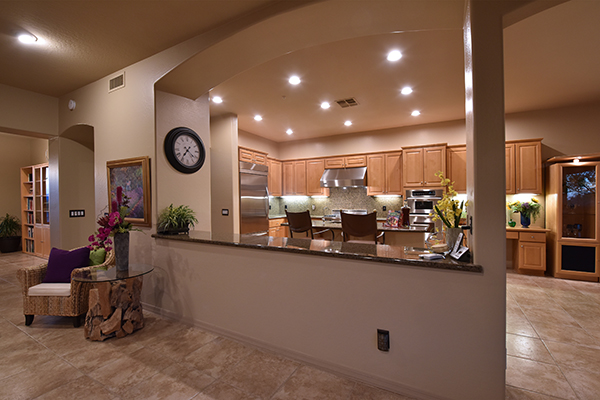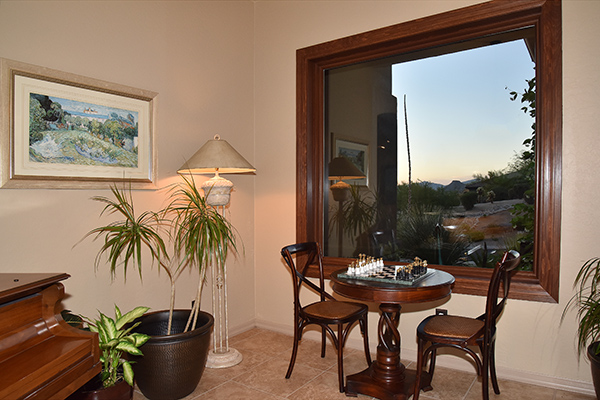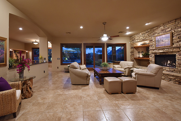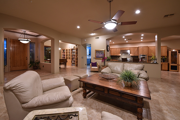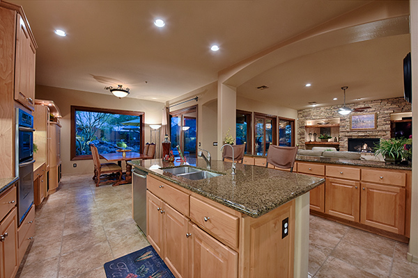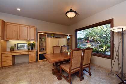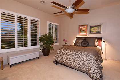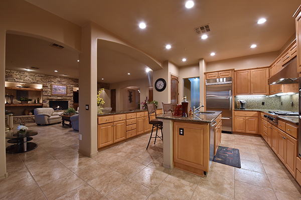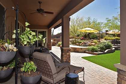 Entertainers delight! This Monterey built home with the popular Bellagio great room floor plan features custom touches and a lush backyard with up close views of Troon Mountain. Located in the gated community of Desert Summit, this impeccably maintained, three bedroom, two and a half bath home with a hard to find four car garage is just the right size at over 2,700 SQ FT.