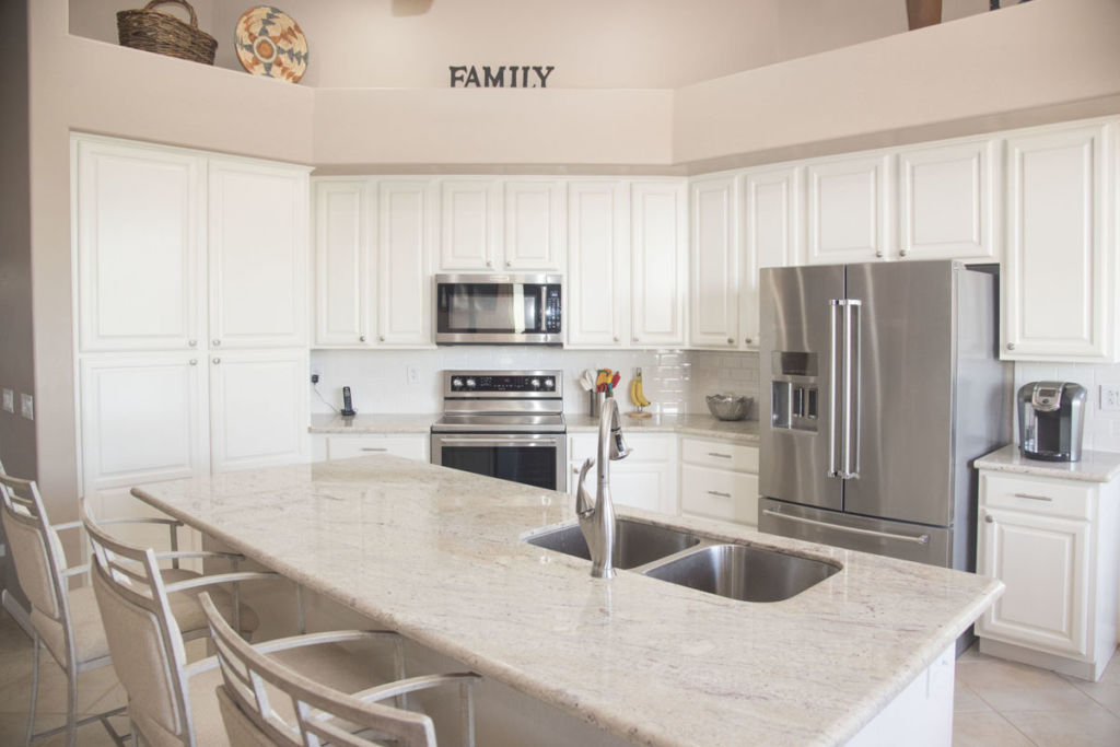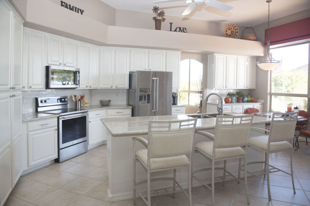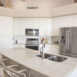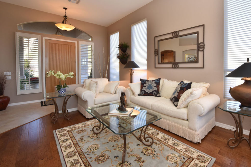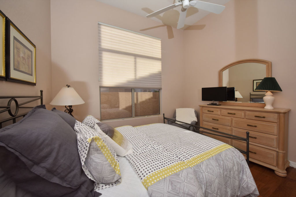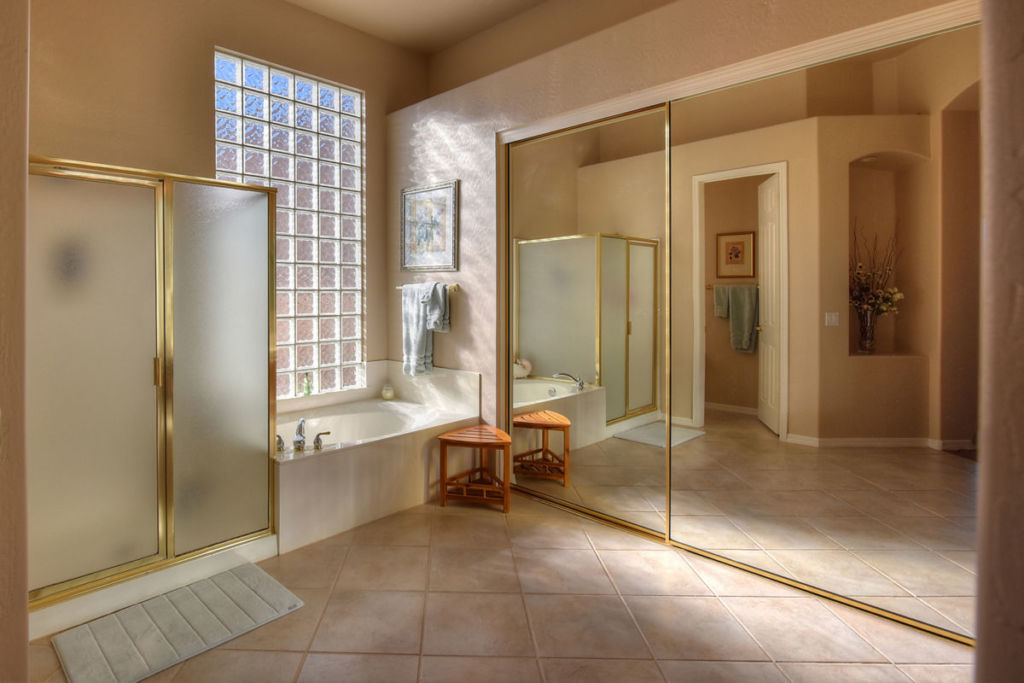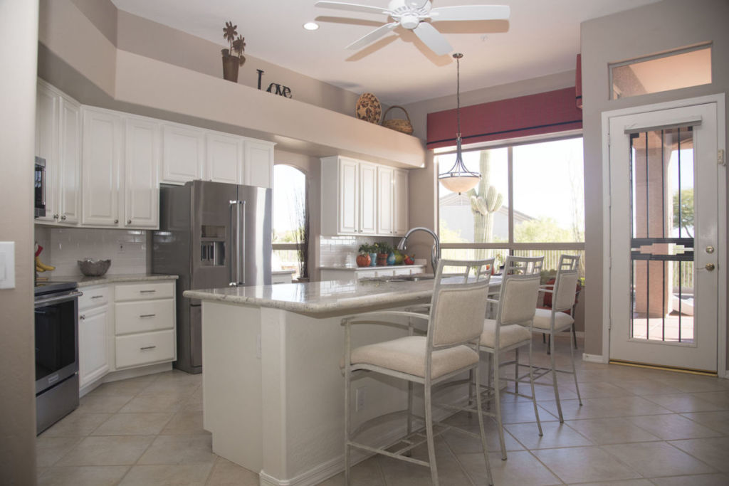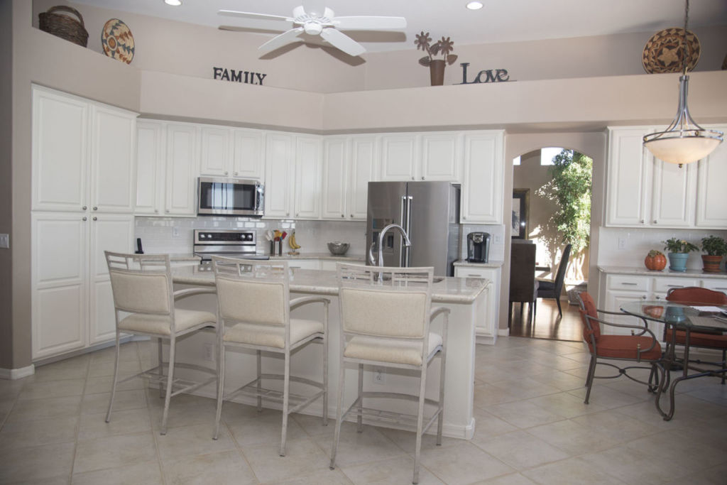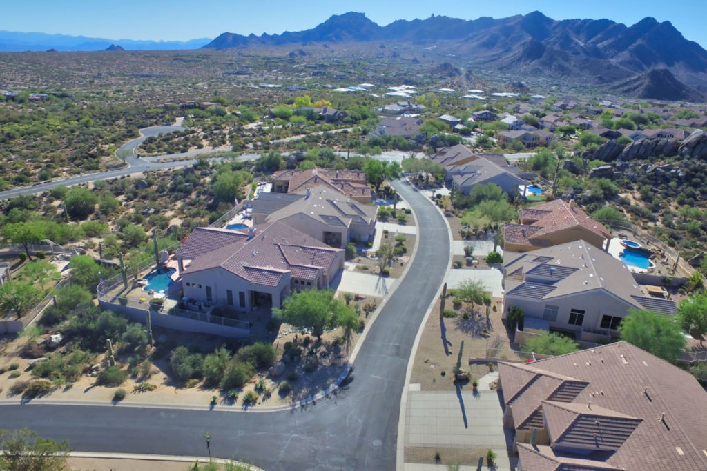 Floor plan features split master bedroom with large walk-in closet; adjacent office; powder bathroom; two secondary bedrooms each with their own vanity that connects to a jack-and-jill bath; 4th guest bedroom with removable Murphy bed cabinet and adjacent full bathroom; full size laundry room; formal living and dining rooms offer flex space for media or billiards room; and eat-in kitchen open to family room. Expansive backyard features travertine covered patio that expands out to surround the heated pool with water features, the stacked stone gas burning fire pit; built-in cook station, flowering desert landscape — all designed to frame the spectacular view.