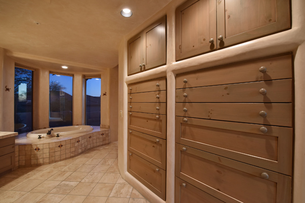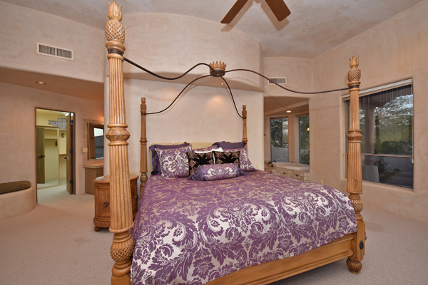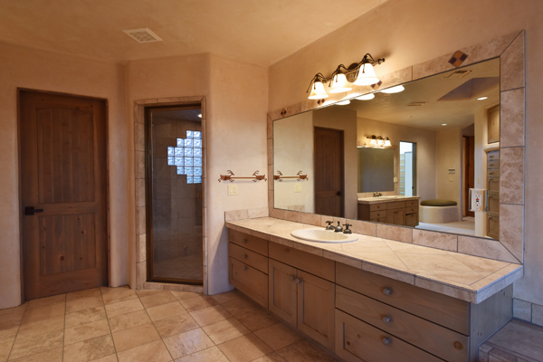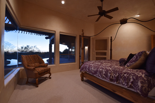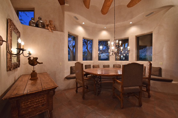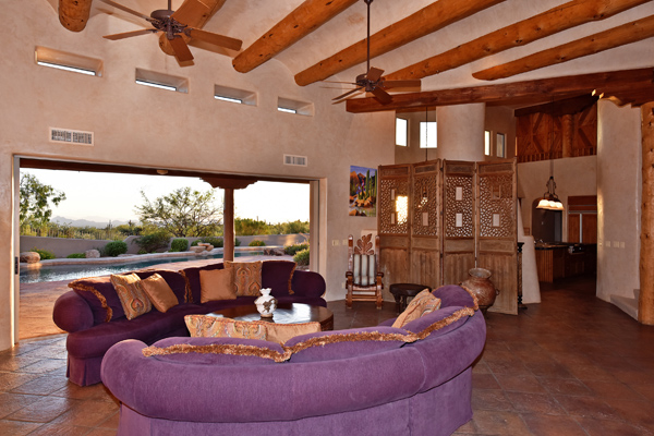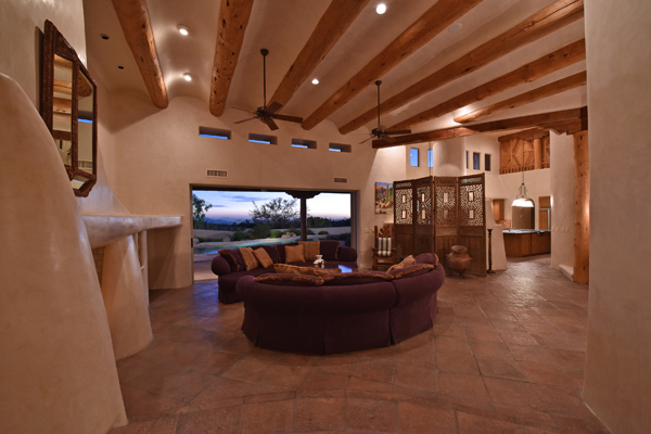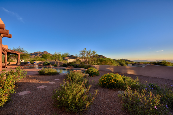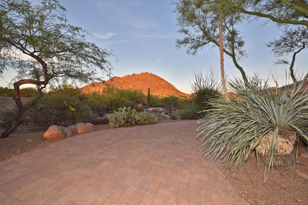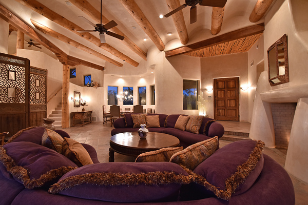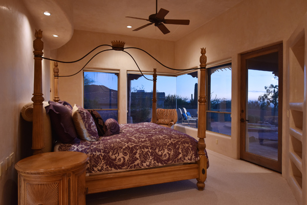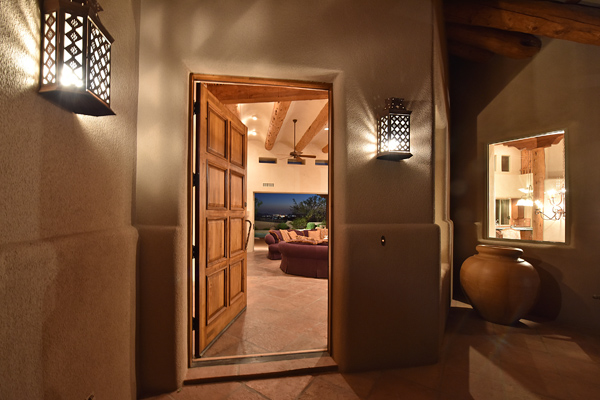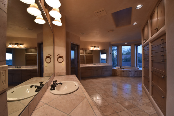 Warm and inviting Southwest custom home in guard gated Glenn Moor with architectural details galore. Nestled on nearly an acre with one of the best lots in the neighborhood, this 3800 plus sq.ft. home has sweeping city light and mountain views from the elevated lot including Troon Mountain views from the front. The sliding pocket doors off the great room allow the inside to flow out to the expansive patio spaces, large pool, heated spa, and the breathtaking city light views. Clay tiles, viga beams, and latillas accent the newly painted stucco exterior. The viga beams and latillas continue throughout the interior of the home accenting the saltillo tile floors, kiva fireplace, and designer paint. The master suite has access to the backyard and a well-appointed bathroom complete with walk-in closet, steam shower, built-in cabinetry and drawers, split vanities, soaking tub and travertine tile. The kitchen featuResan oversized island, two wall ovens, tile counters, high accent windows and skylights letting in lots of light and an eat-in breakfast area. Other features include: three new a/c units, surround sound inside and out, large brick paver driveway, three single bay garages, security system, loft or office space with balcony, hand painted sink with custom vanity in guest bath, built-in wrap around bay seating in dining, well manicured mature landscaping and a built-in bbq. If your looking for a home with good bones to make your own then look no further. The community of Glenn Moor is situated around the back nine holes of Troon Country Club and houses a clubhouse, tennis court, pool, spa and shuffleboard court for residents to use at leisure.