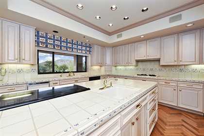 The side entry three car garage with additional parking and an elevator to the main level of the house is perfect for a car enthusiast. Mature, lush desert landscaping enhance the exterior staircase and multiple front patios and covered porches perfect for relaxing or taking in the gorgeous Arizona sunsets. Formal living and dining spaces feature high ceilings with coffered and beamed detailing and ambiance creating fireplaces. The kitchen is a draw for the homes chef as function and style couple to create a workspace that is a TRUE pleasure.