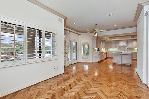 With details such as herringbone wood floors, the kitchen truly stands out as a beautiful feature of the home. Indoor spaces flow out onto an expansive patio where residents and guest can relax and take a breath of fresh Sonoran Desert breezes. Bring your decorator and make this home your own.