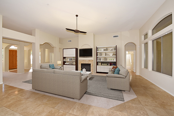 Under $200 a sq ft in gated North Scottsdale! This beautiful move in ready home is located on a quiet cul-de-sac in the private gated community of La Vista conveniently centered in the 85255 zip code. The freshly painted interior and brand new carpet compliment the polished travertine stone floors creating light, bright, and neutral spaces. The kitchen features a large center island with granite counters, a large walk in pantry, ample cabinet space and opens to the breakfast nook and family room with fireplace. The split floor plan features four bedrooms and three full baths with formal living and dining spaces. The master bedroom and bathroom are spacious, complete with a soaking tub, walk in shower, large walk in closet with built in shelving, and dual sinks. The peaceful backyard has grass with mature landscaping and overlooks the NAOS. La Vista features a community park and easy access to top rated schools, grocery, dining, and freeway access.