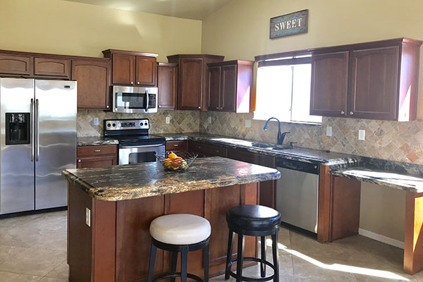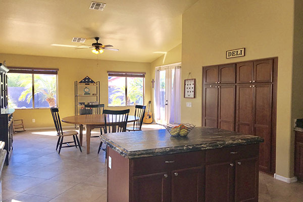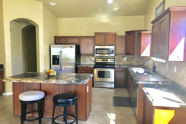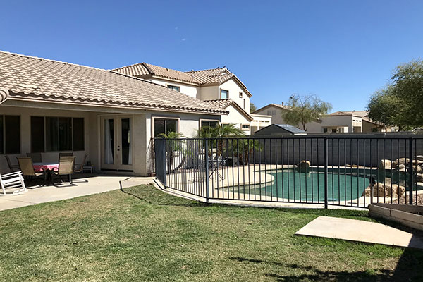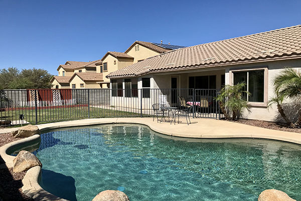The kitchen comes equipped with a stainless steel appliances, ample counter top and cabinet space, center island with bar seating opening to the large breakfast area which could also be used as a family room. The backyard is perfect for relaxing with a gated swimming pool with rock waterfall, grassy play area, and covered patio. Located within close proximity to shopping, dining, and many community parks, this home is ready to make your own!