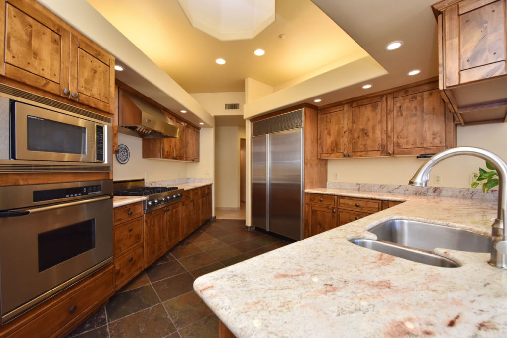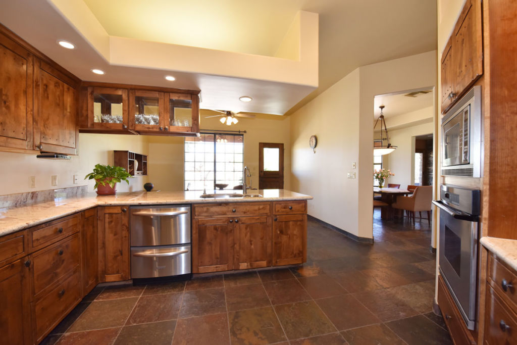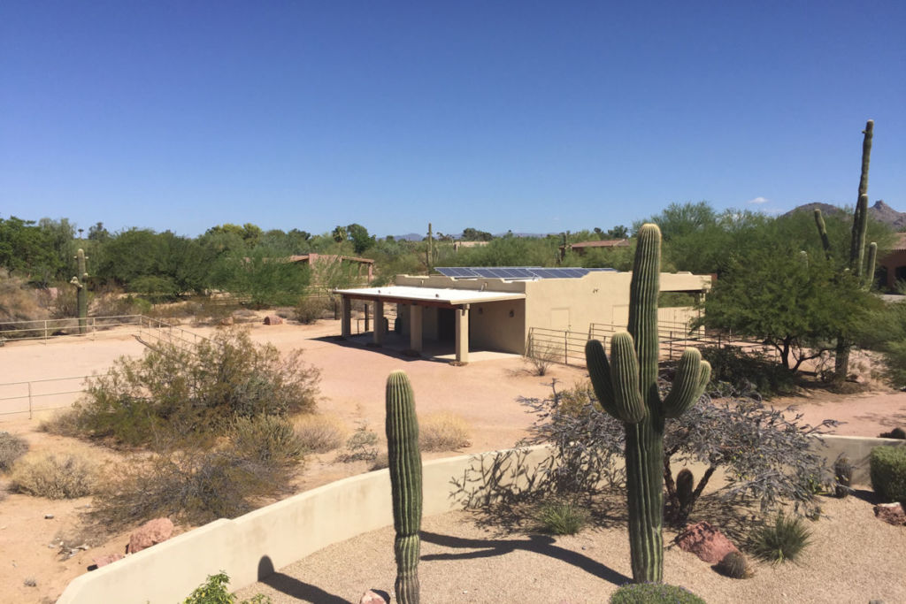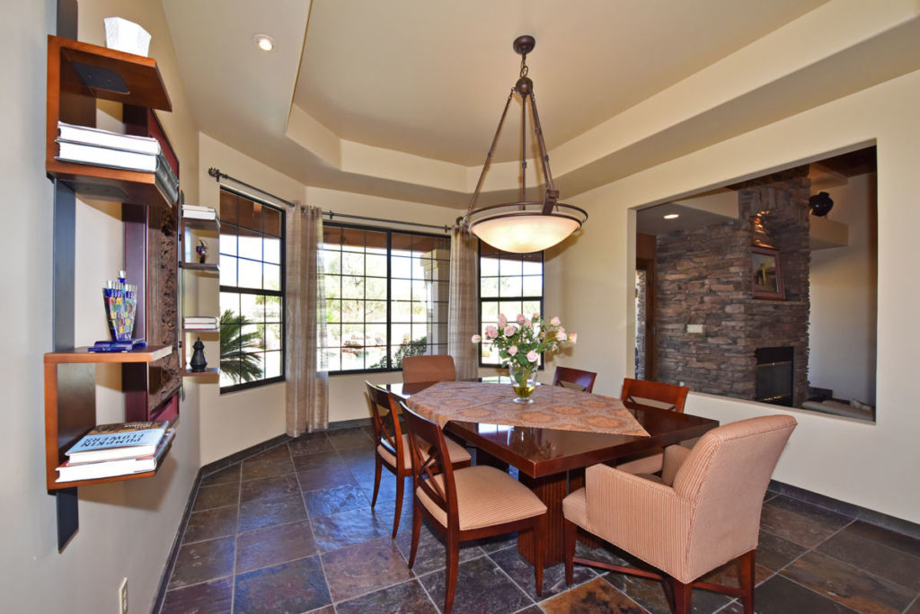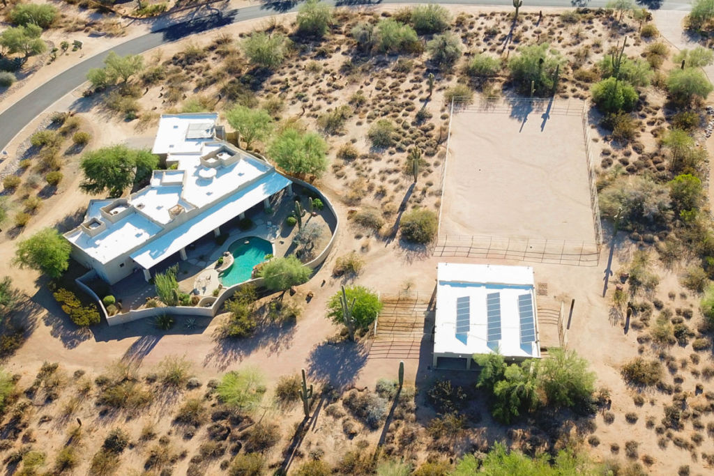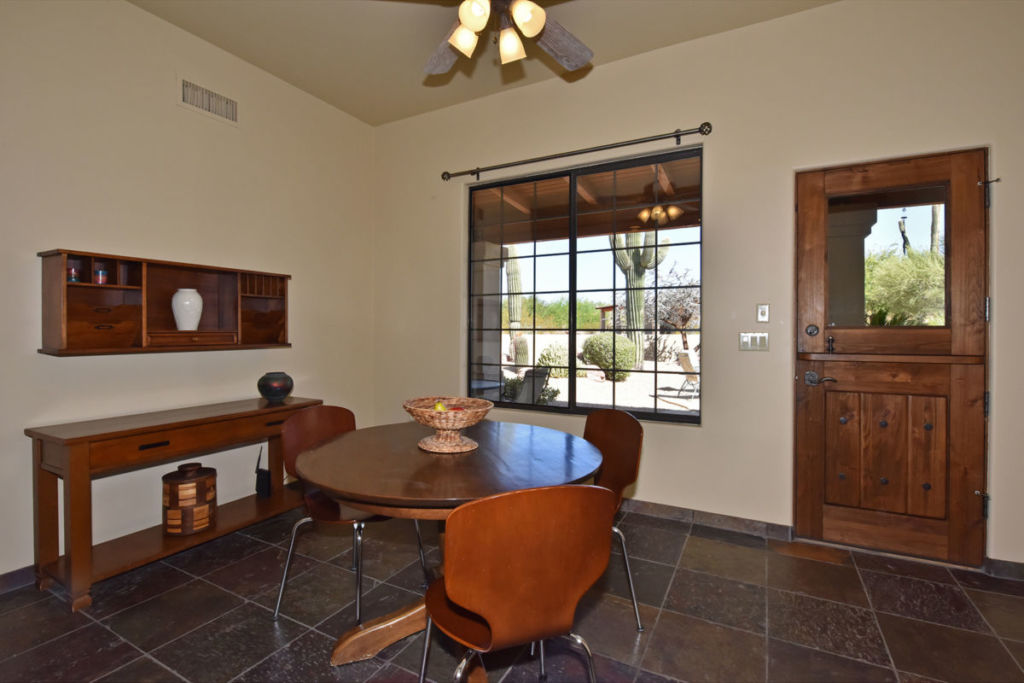 In the highly sought after 85255 zip code, this stunning 3,591 SF residence is a rare find on a private 2.53 acre setting with its own equestrian facility in gated Los Gatos. A mix of slate flooring, granite surfaces, stacked stone accents, and wood beam ceilings highlight the living areas which include an elegant entry, formal dining room, den/sitting area with full bar, and an upgraded kitchen with stainless steel appliances and dinette area.