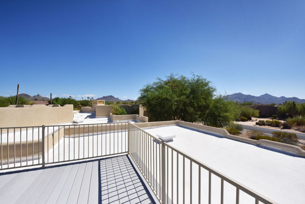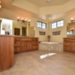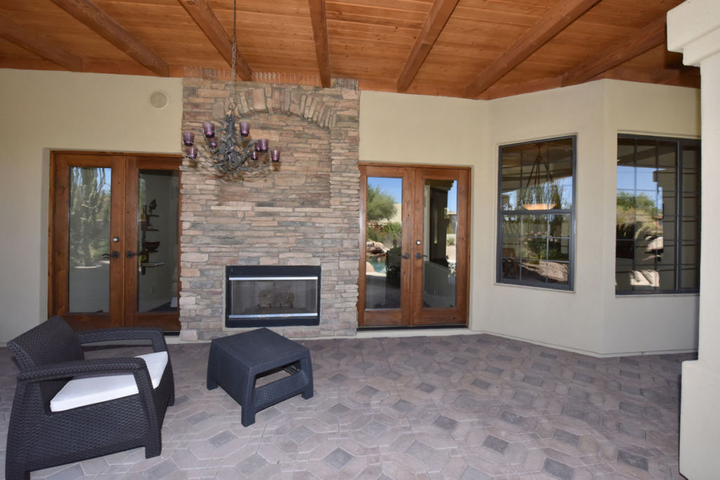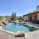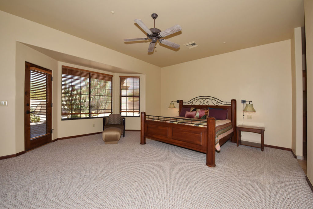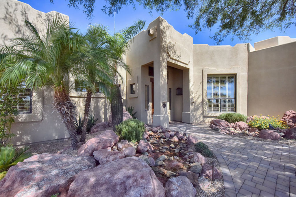 The master suite features large bath area including a zero grade entry shower, soaking tub, dual vanities/sinks, and walk-in closet. Split floor plan with two additional bedrooms on the West side of home. Covered patios accentuate the exterior and allow for both covered dining and seating as well as space for entertaining. Pebble tec pool and fountain, all overlooking breathtaking McDowell Mountain views.