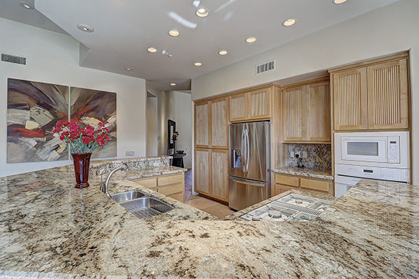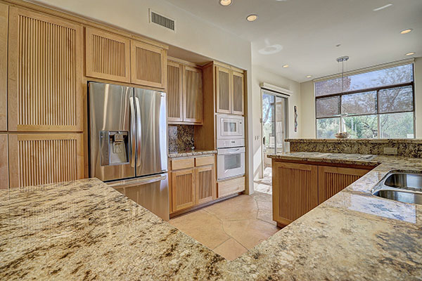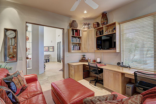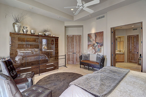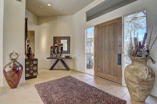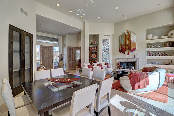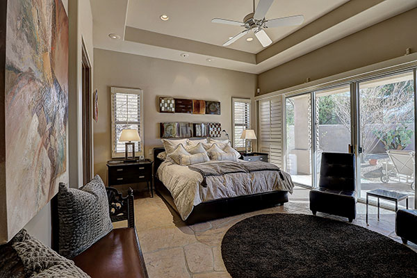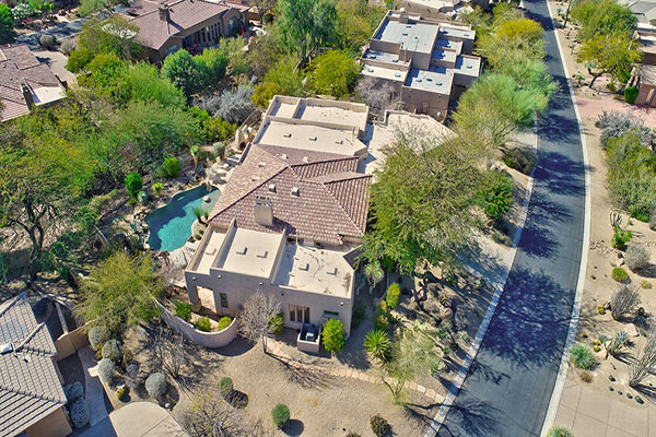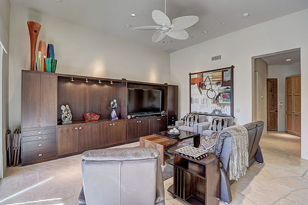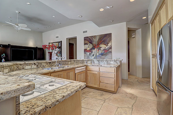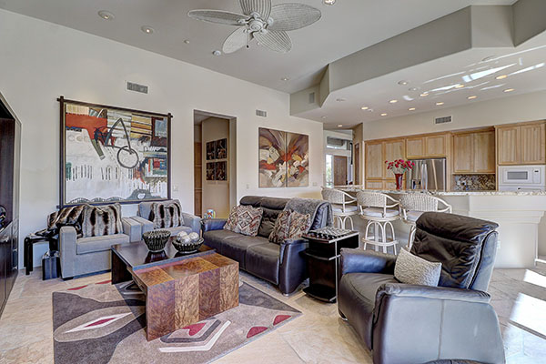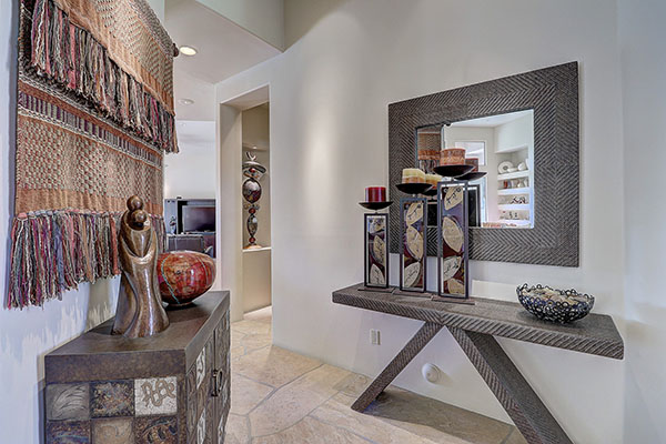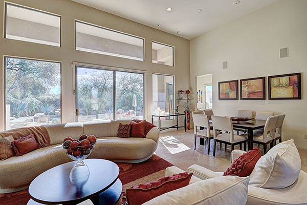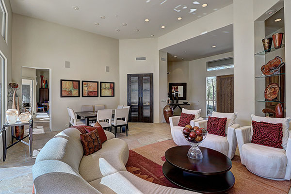 Designers own residence! 4130 sq feet including a 1800 SF addition! Beautiful and meticulous in gated Monument in Troon North. The sun-filled rear yard features a large pool with 2 rock water falls, spa, kiva fire place, 2 covered patios, built-in BBQ, and flagstone hardscape. Pool and professionally landscaped backyard visible from master suite, living/dining room, kitchen, and family rooms.