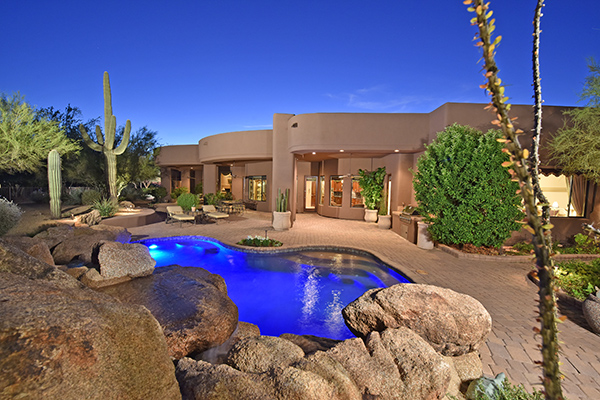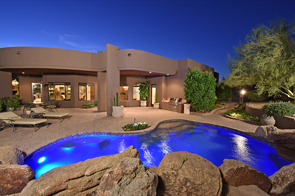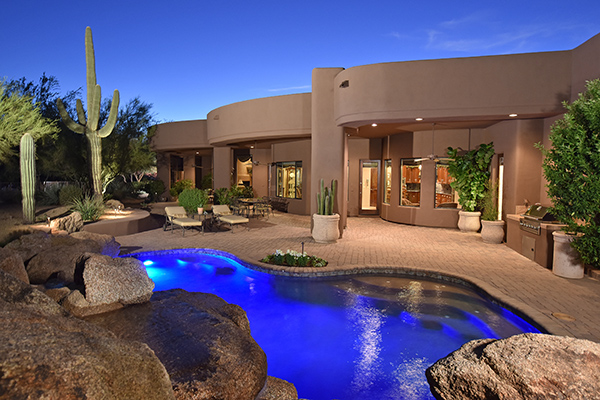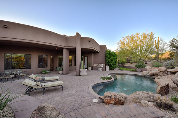 Welcome home to this Green Building Certified home nestled on a nearly one acre lot in North Scottsdale with no HOA! This secluded cul-de-sac lot was designed with Southeast orientation to capture the prevailing breezes and the dynamic mountain views of the McDowell’s from the resort style backyard featuring raised garden beds, hand laid pavers, pool with rock waterfall, built-in BBQ, large covered patios with dining and lounge areas, view deck with spiral staircase, and fruit trees.