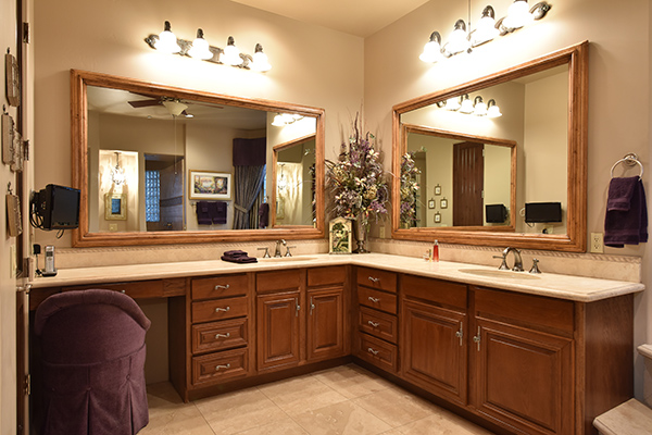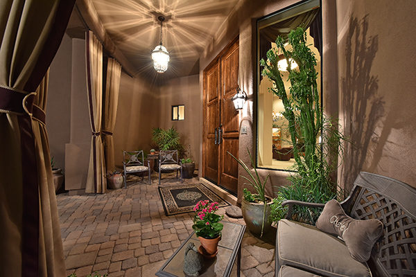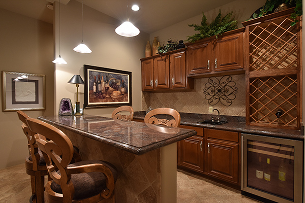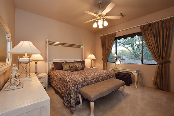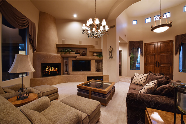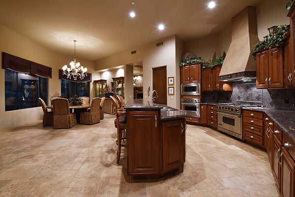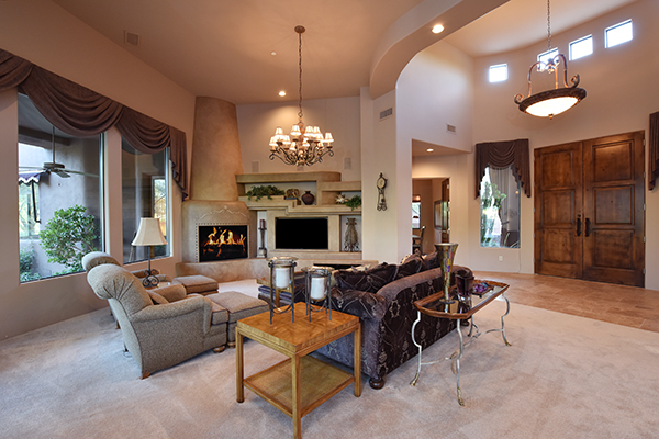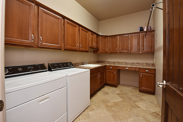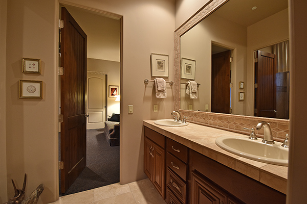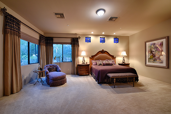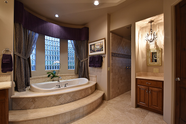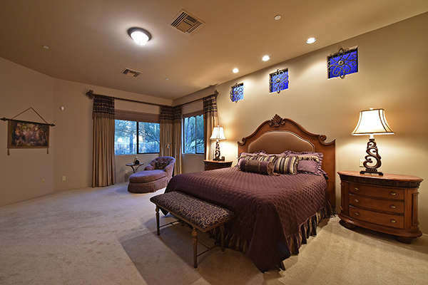 Other features include: central vac, front entry courtyard with awnings and custom drapes, energy efficient windows, travertine flooring, no interior steps, living and dining spaces with wet-bar and corner kiva fireplace, large master suite with sitting area, jack and jill guest bedrooms, office with built in bookcases and pre-wired media media system, and large laundry with sink and storage. With too many features to list, this home has it all!