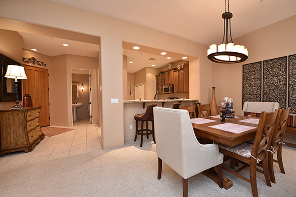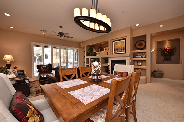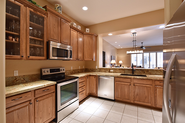 Immaculate, move in ready town home in Troon North is model perfect. Single level home with no interior steps features open living spaces that include the dining area and living/family area with fireplace and built in shelving. The kitchen is chef inspired with plenty of counter space, granite surfaces, stainless steel appliance package, and a bar top area for additional seating.