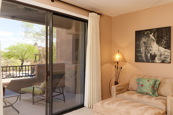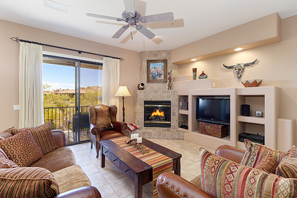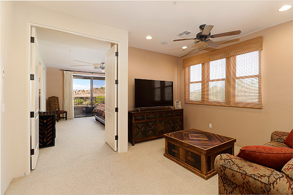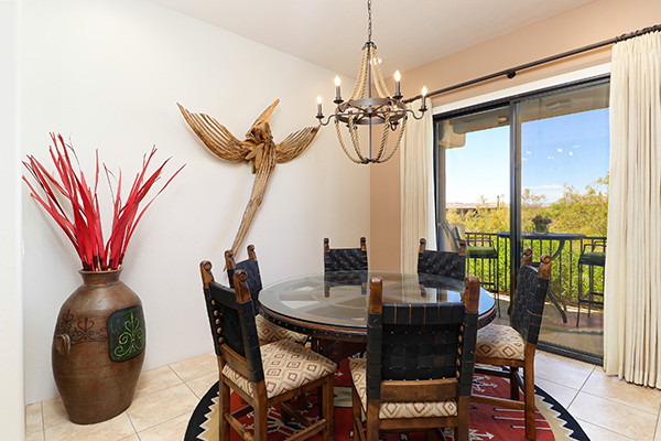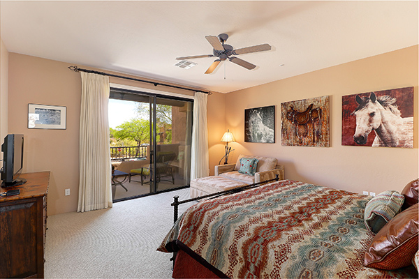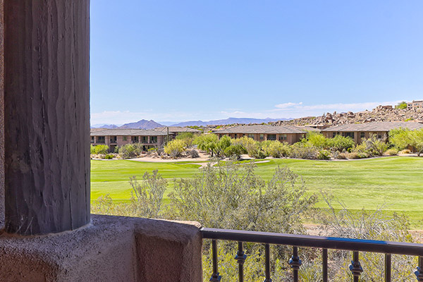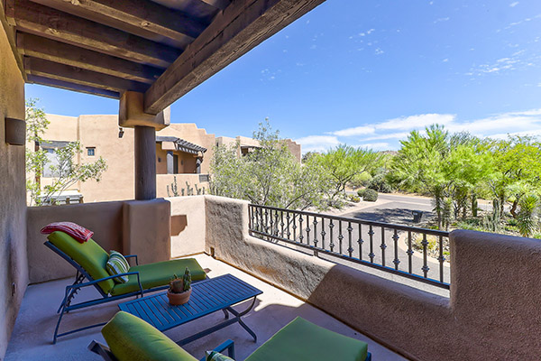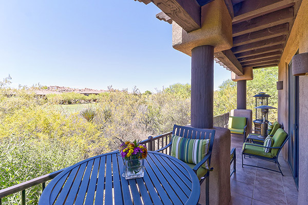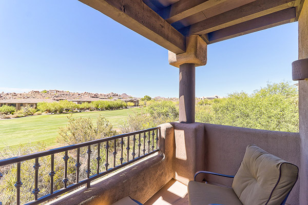 The two bedroom plus den and two and a half bath floor plan has tile floors, new carpet in the bedrooms, new LED can lighting, and neutral paint throughout. Enjoy golf course views of the famed Troon North Golf Course from your balcony and walk over to the 2017-remodeled community workout center, heated pool and spa and Troon North Golf Club. The large master suite has its own personal balcony, separate sitting room, and large bath with separate shower and tub. The two car extended length garage has epoxy floors and additional cabinet storage.