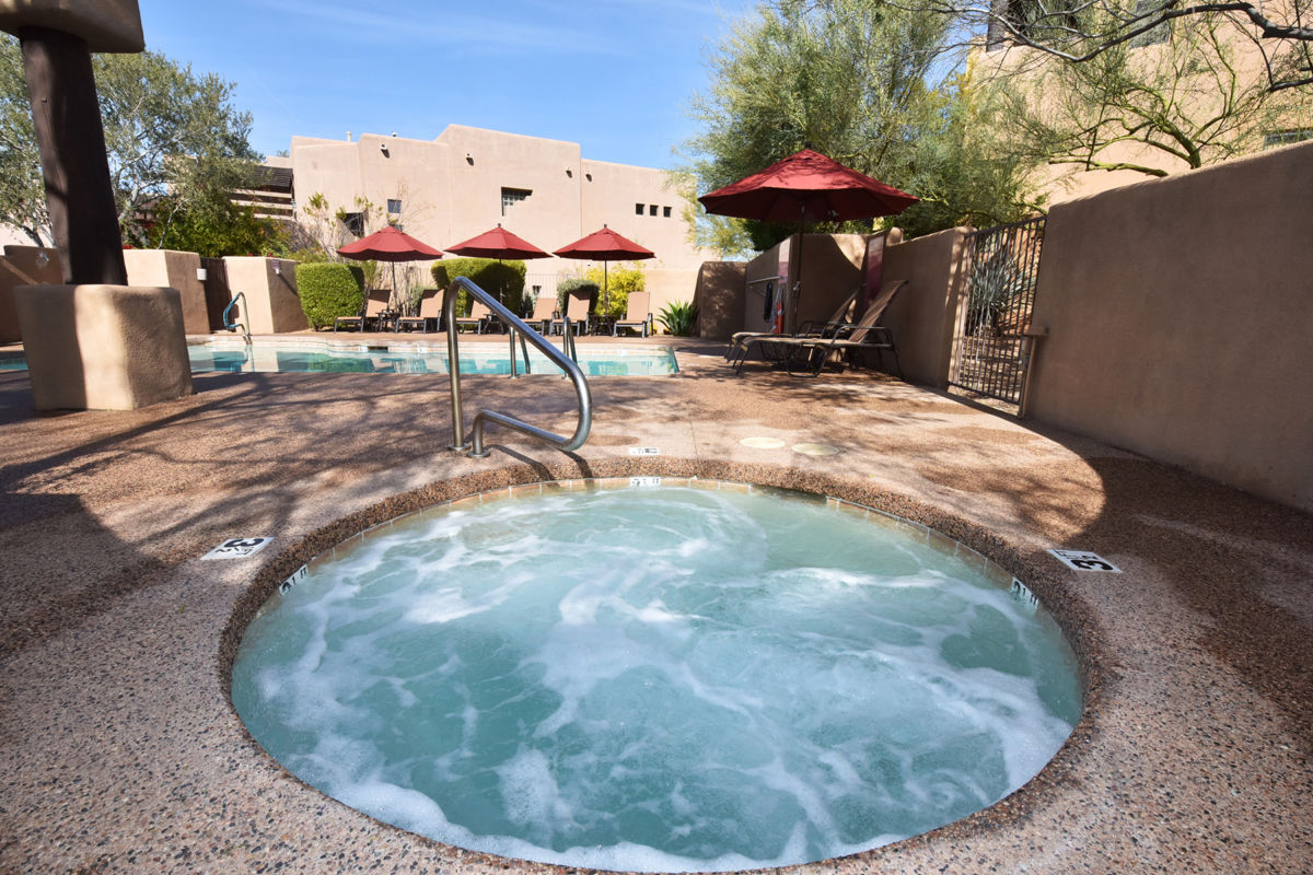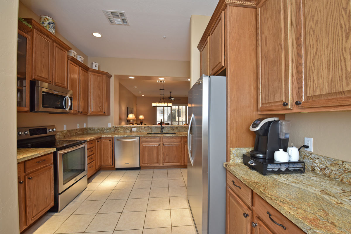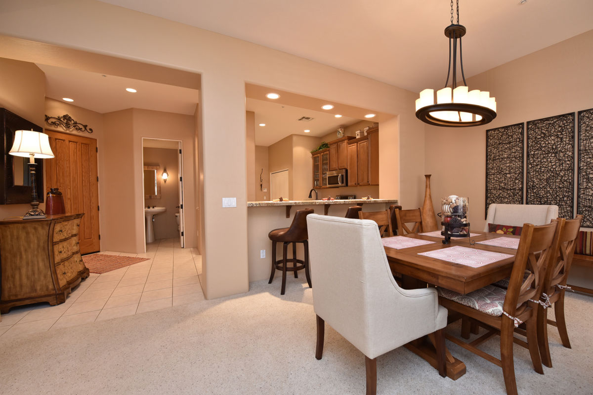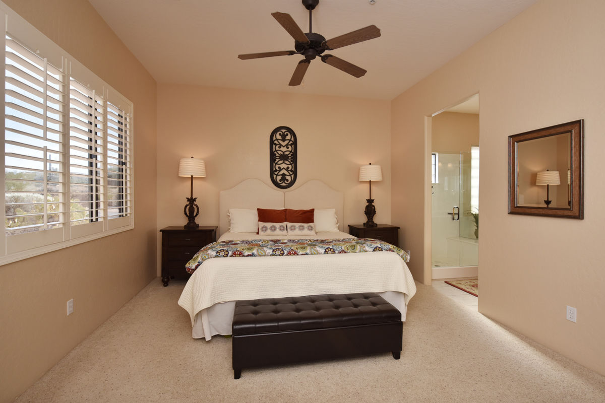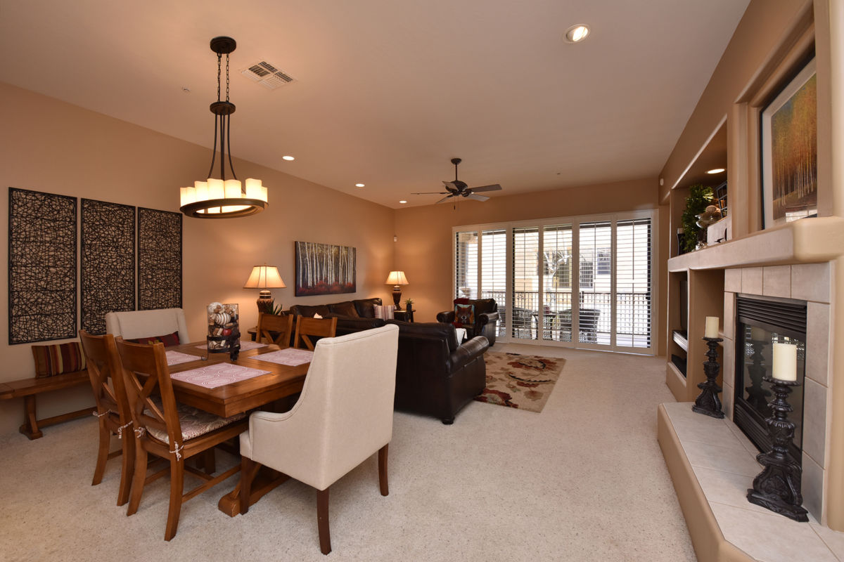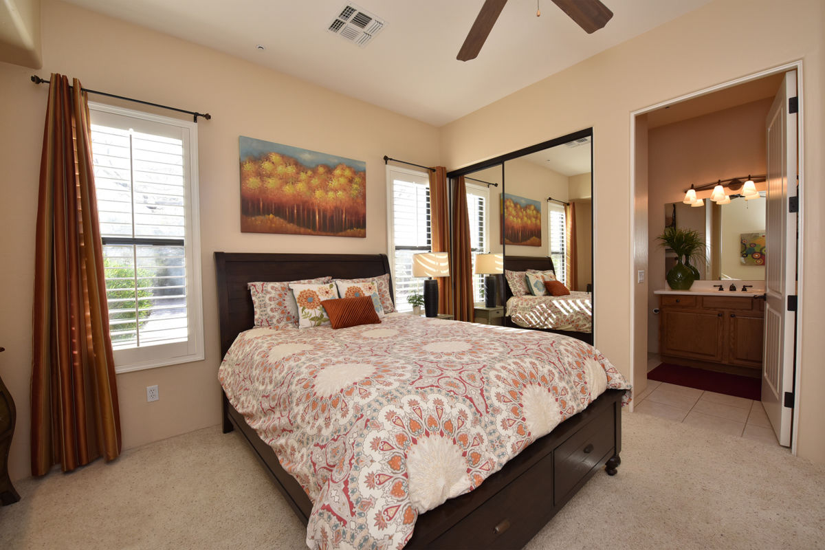 Immaculate, move-in ready town home in Troon North is model perfect. Single level home with no interior steps features open living spaces that include the dining area and living/family area with fireplace and built in shelving. The kitchen is chef inspired with plenty of counter space, granite surfaces, stainless steel appliance package, and a bar top area for additional seating. The master suite is light and bright featuring a walk-in closet, full bathroom with soaking tub and separate walk-in shower, two sink vanity, and oil rubbed bronze accents. Other features include an ensuite guest bedroom, powder bath, cozy patio space, two car garage with extended driveway, plantation shutters. Community features include access to heated pool and spa, fitness center, walking distance to Troon North Golf Club, and close to hiking, shopping & dining.