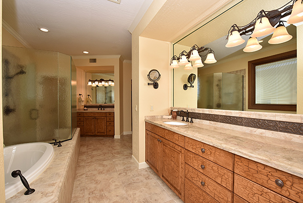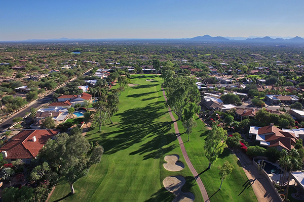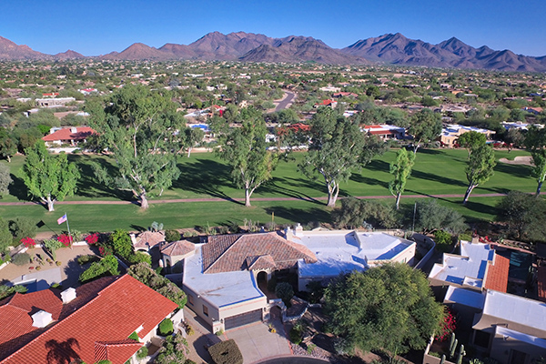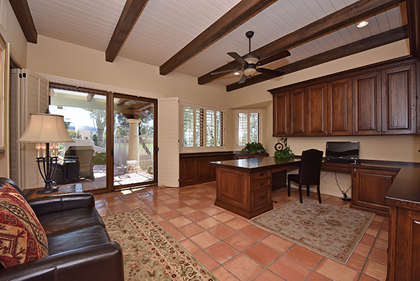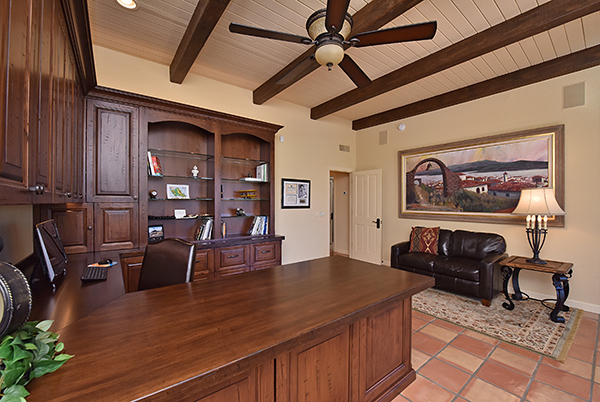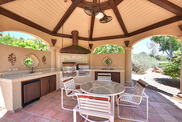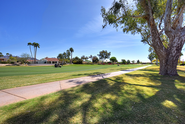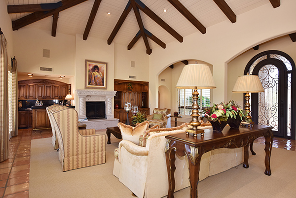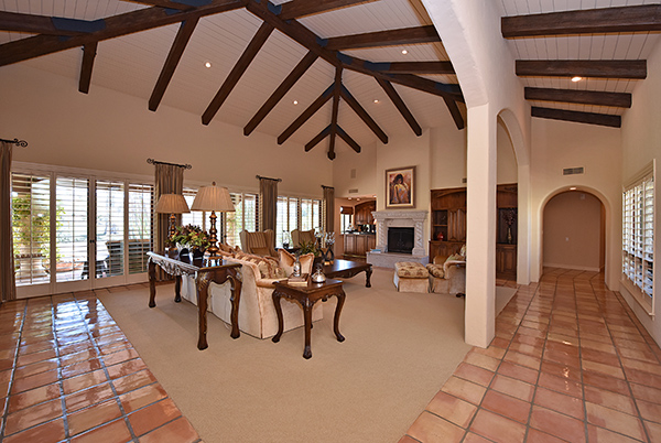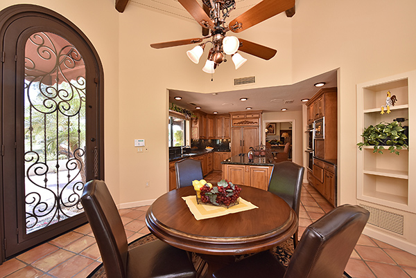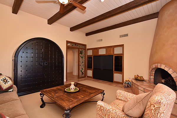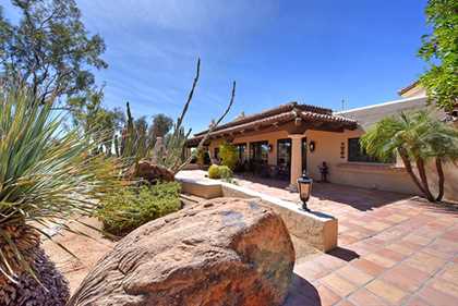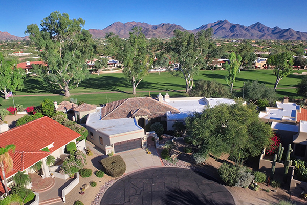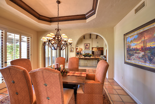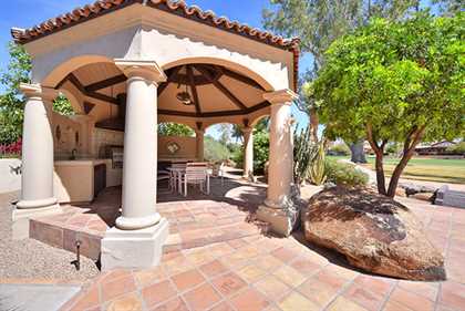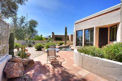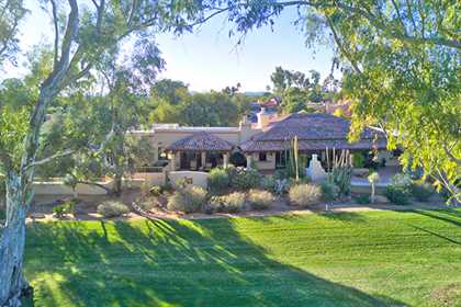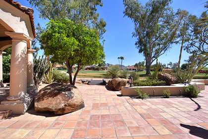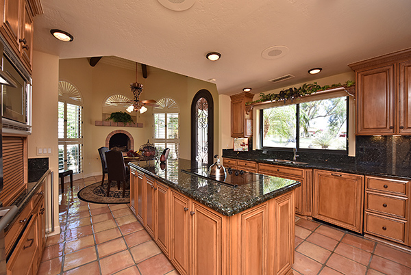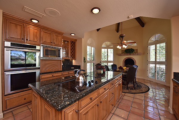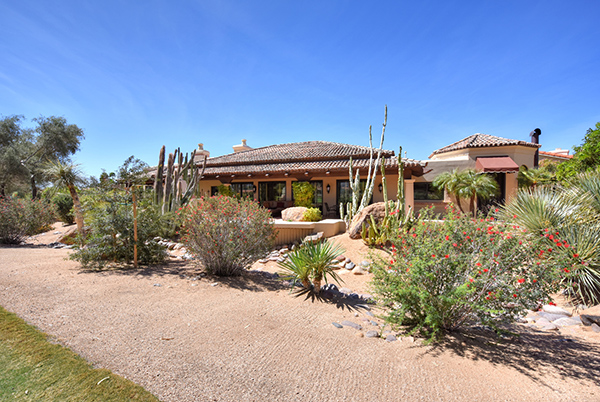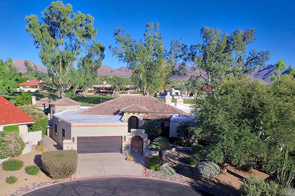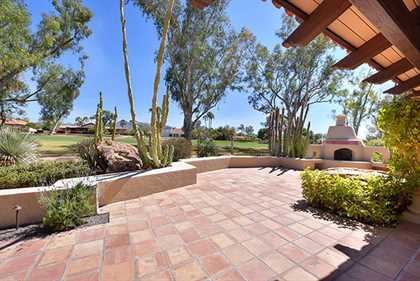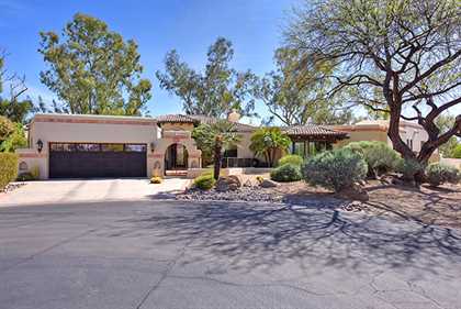 Pinnacle Peak CC Custom – Updated and New to market! Rich warm finishes appoint this thoroughly updated residence exuding soaring wood beamed ceilings, walls of windows overlooking the 14th fairway, and a thoughtfully designed floor plan with flowing living spaces, spacious bedrooms, room-size storage areas, and exquisite outdoor living spaces. Through a custom ironworks door, the interior unfolds onto the great room with full bar area, hand carved cantera stone fireplace, and doors opening to the gorgeous backyard – 278 feet of fairway views. The remodeled kitchen features new cabinetry, stainless steel appliances, large center island, granite counters, and huge walk-in pantry. A rotunda breakfast room with fireplace provides a casual dining area; the dining room is perfect for more formal gatherings. Additional living spaces include the connected family room with fireplace and executive office with built-ins including a murphy bed for guests. All bedrooms are ensuite with updated remodeled baths and walk-in closets. The master suite features marble bathroom counters, two walk-in closets and private access to the back patio. The backyard is a TRUE outdoor living space with an extended covered patio for both seating and dining, a sun deck surrounding the pool, serene water fountain, an exterior wood burning fireplace, and a ramada-styled outdoor kitchen with dual built-in grilles, sink, refrigerator, prep space, and dining area. The interior cul de sac location provides one of the rare premium extended lots with golf views that maintain privacy from the course. Completed 2010-2014: roof with transferable roof warranty, new interior and exterior paint, new Pella double and triple pane doors and windows, new water heaters, new bath and hardware fixtures, audio system installed, and more.
