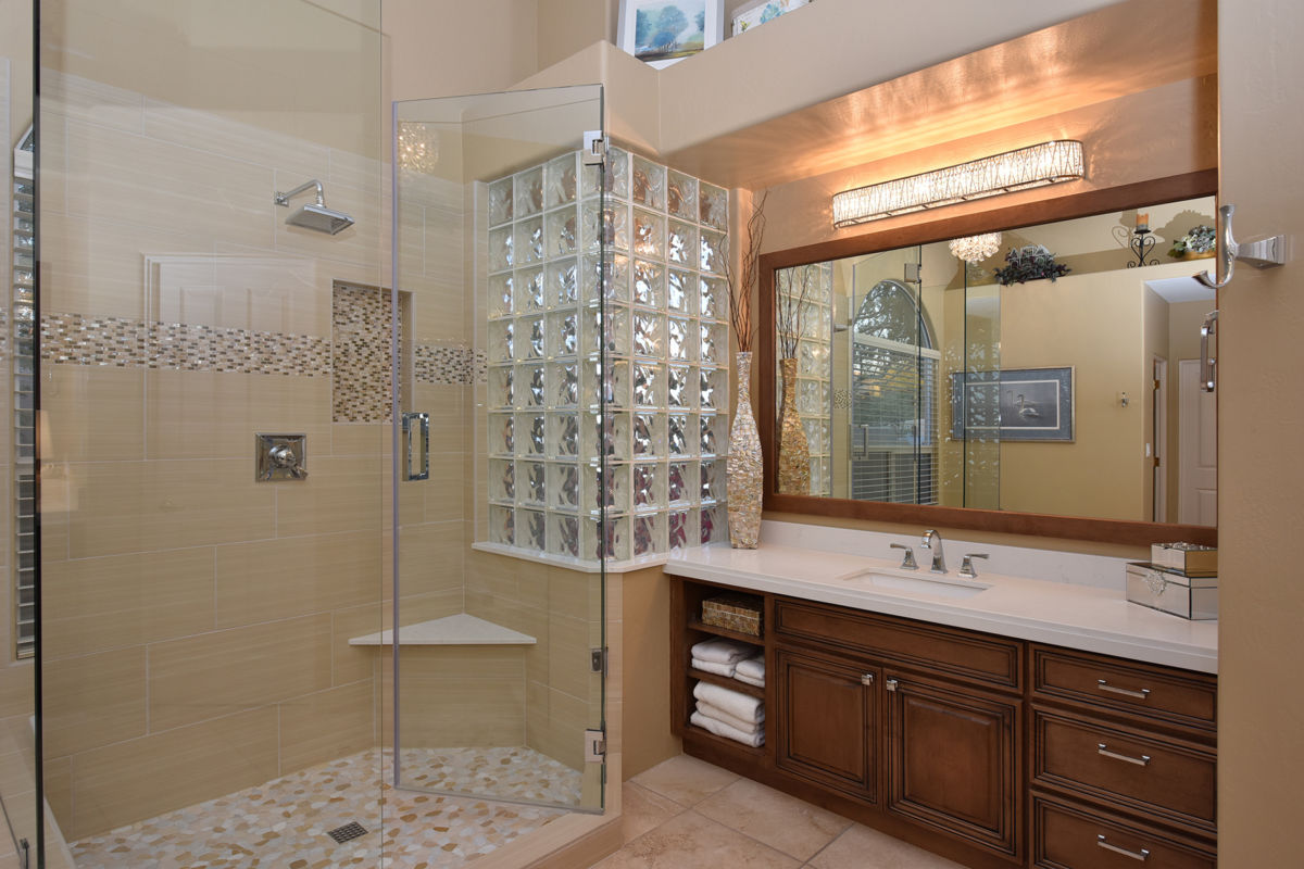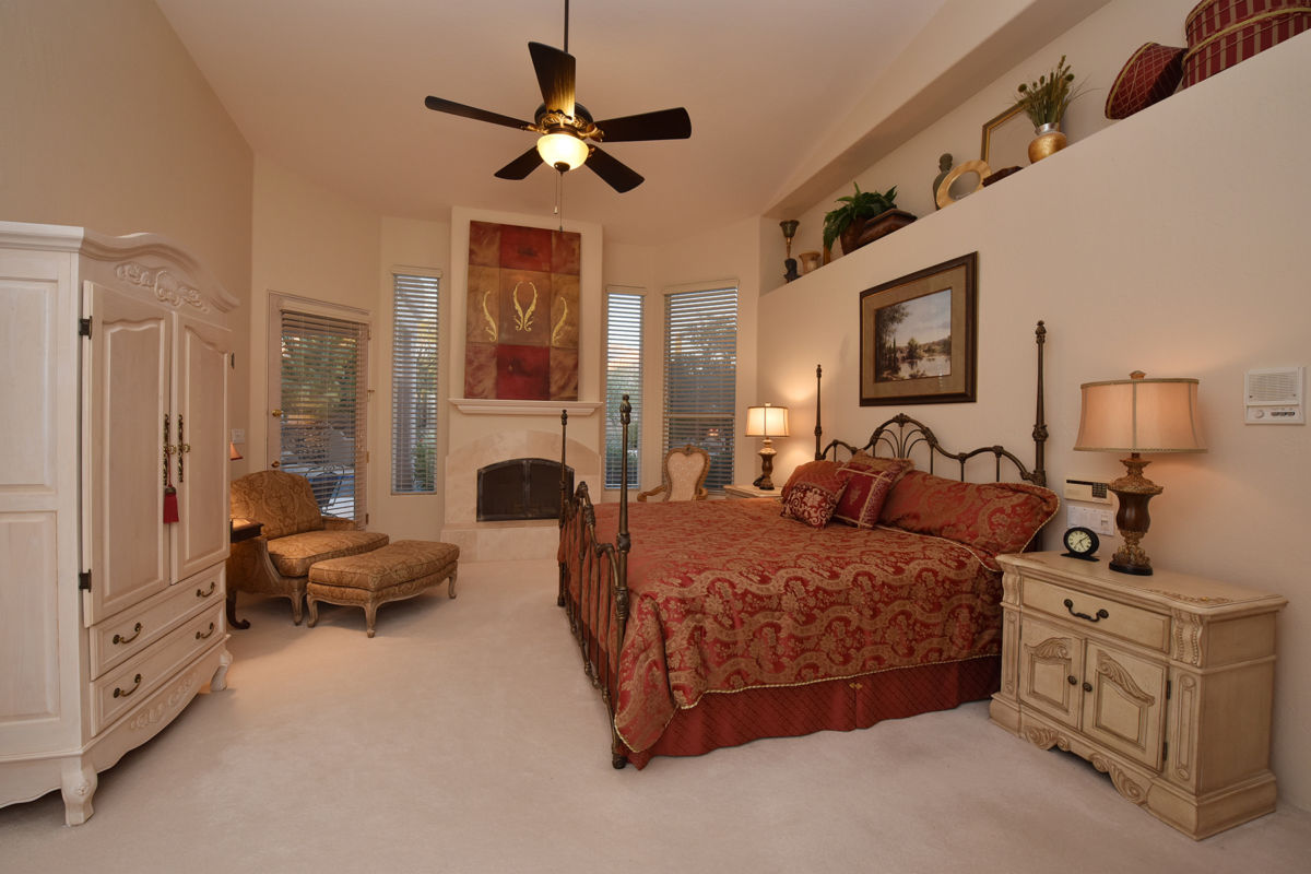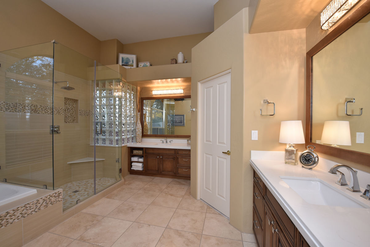 The 2017 remodeled master bath has split vanities with Quartz counters, tile and glass mosaic surrounding the soaking tub and frameless glass shower, custom wood cabinetry, and a walk-in closet. A large family room with wood burning fireplace along with traditional dining and living spaces surround the kitchen located in the heart of the home and highlighted by stainless steel appliances, granite counters, center island with cooktop, double wall ovens, walk in pantry, and breakfast nook.