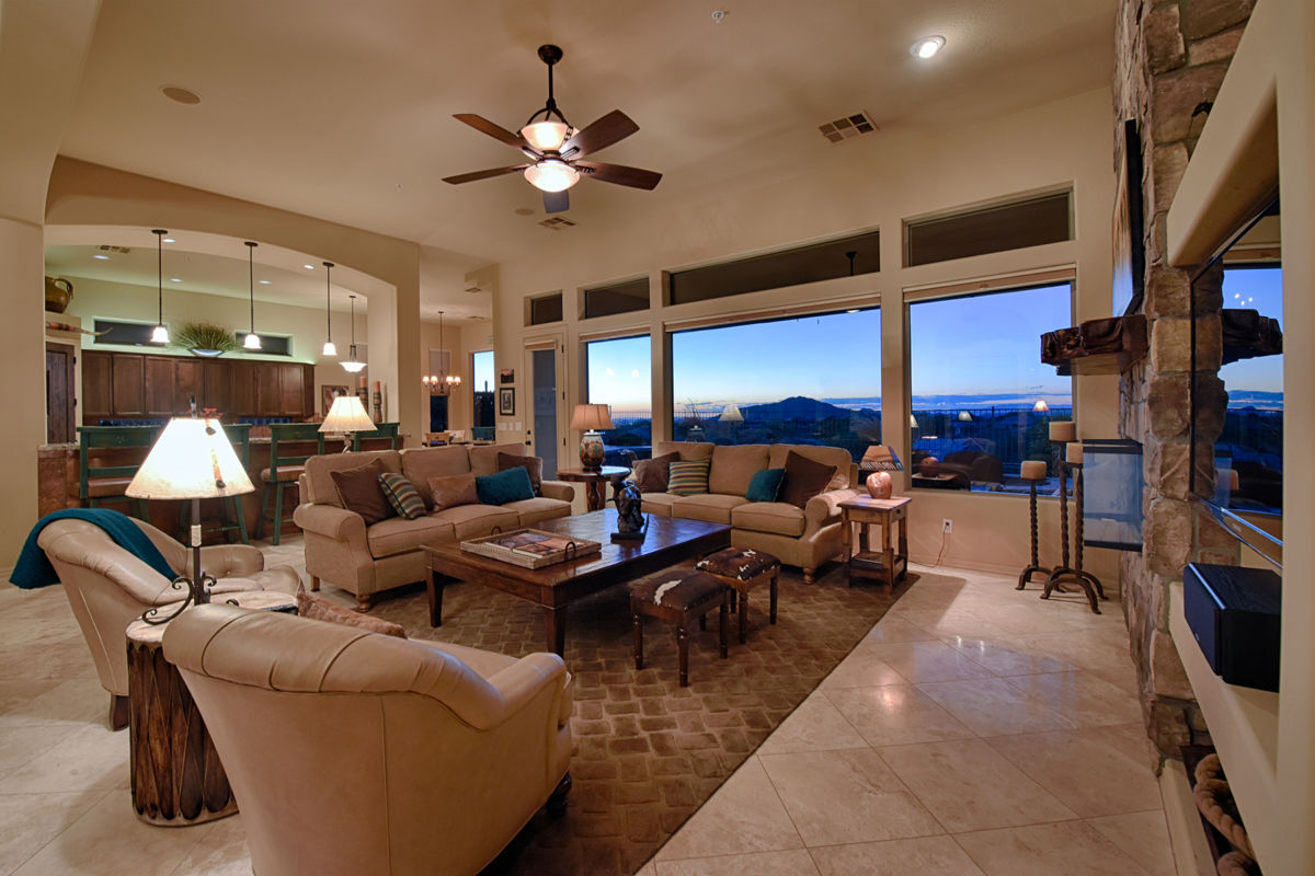 Impressive 360-degree panoramic views combine with quality craftsmanship and finishes, to create the perfect setting at this Legend Trail home. Located in the gated community of Preserve Summit within Legend Trail, this Kachina floor plan features a single level, great room setting with three bedrooms plus a den, three and a half baths, and a three-car garage.