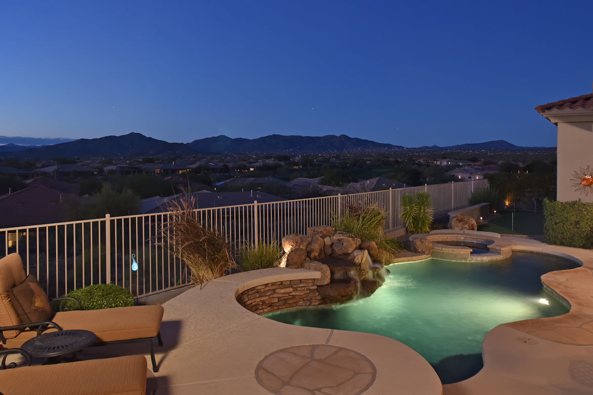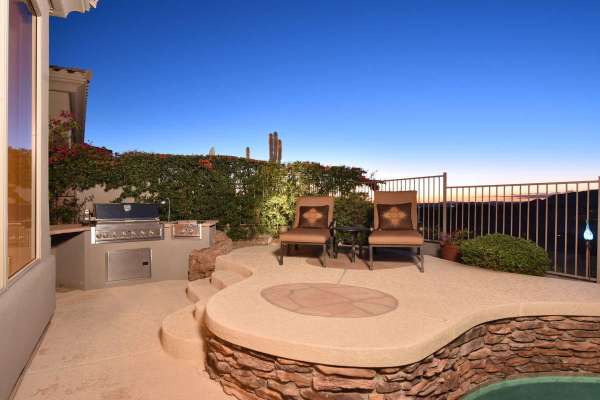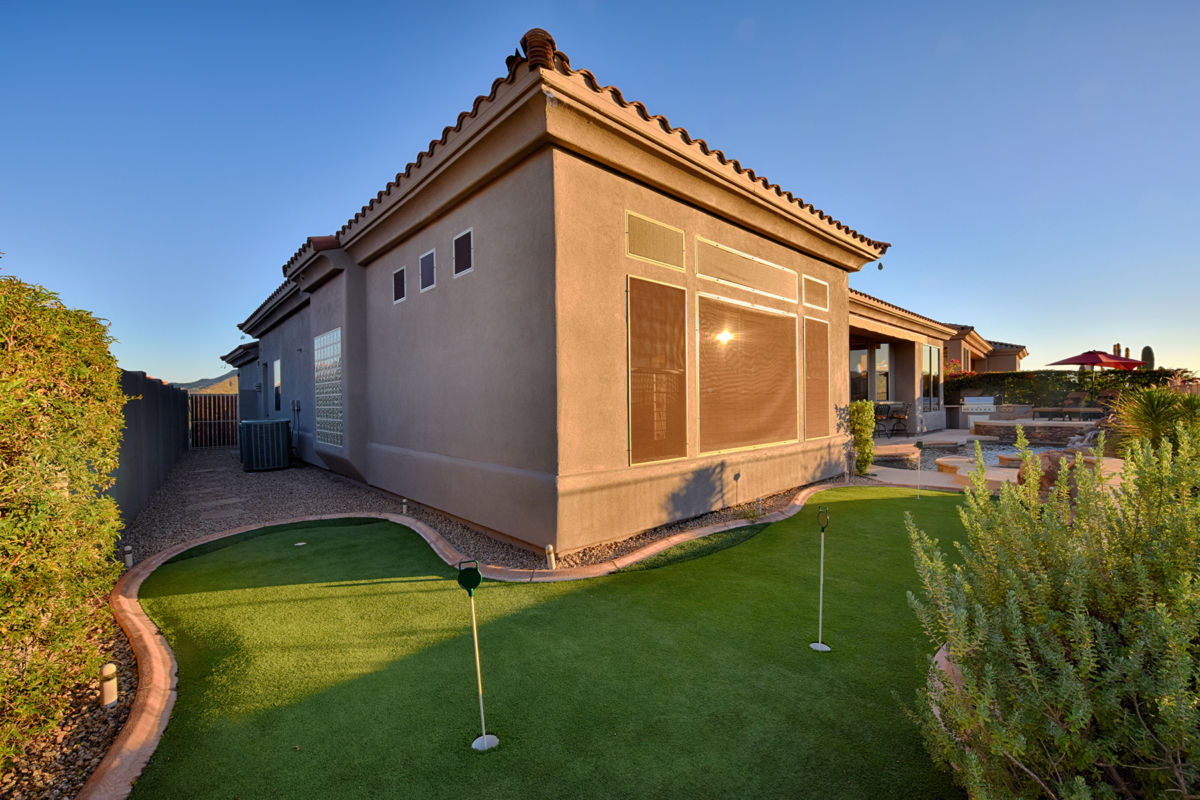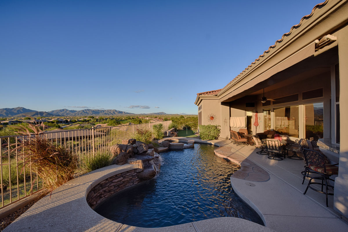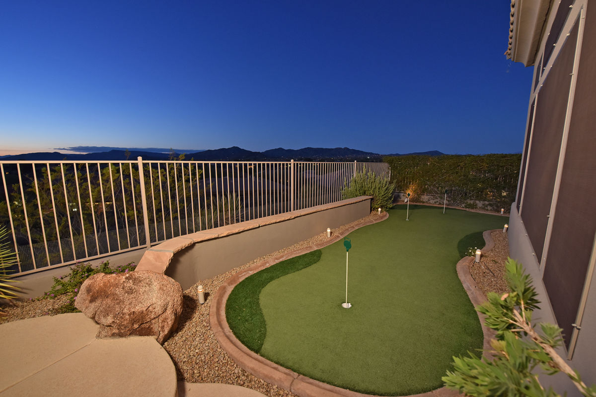 Soak in the views from the entertainer s yard with heated pool and negative edge spa, rock waterfall feature, four-hole putting green and elevated seating with BBQ and full view fencing to optimize the endless sky and mountain views. Most furnishings and accessories available by Separate Bill of Sale.