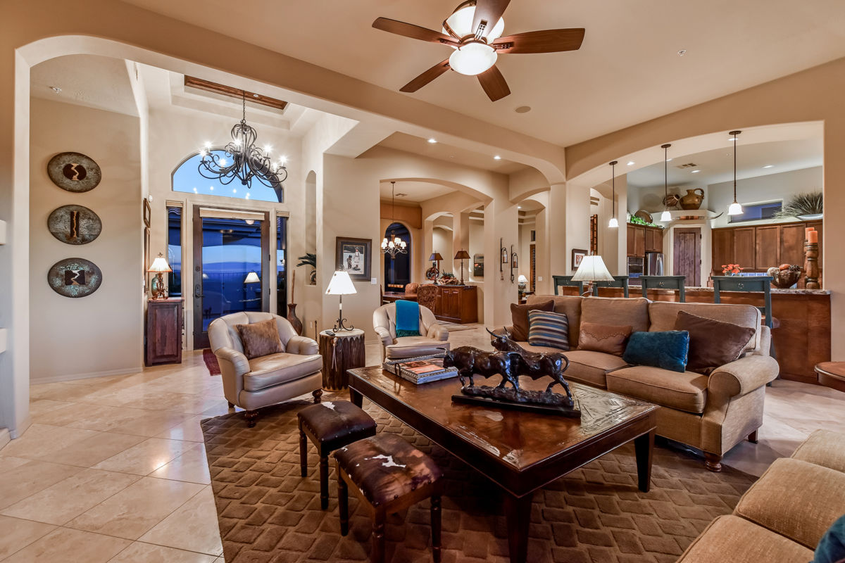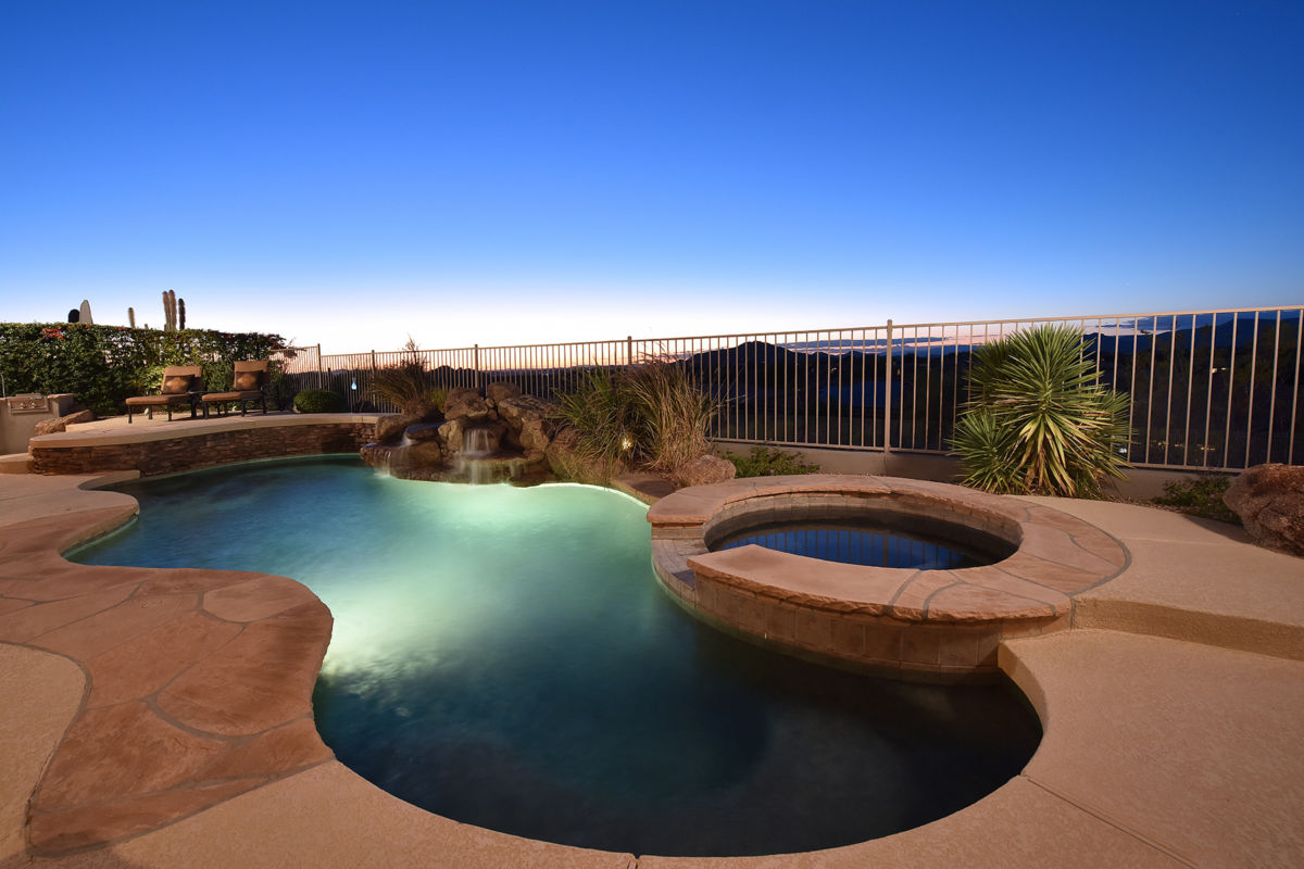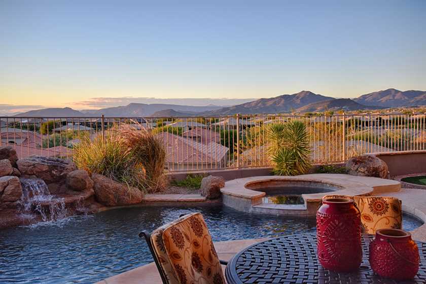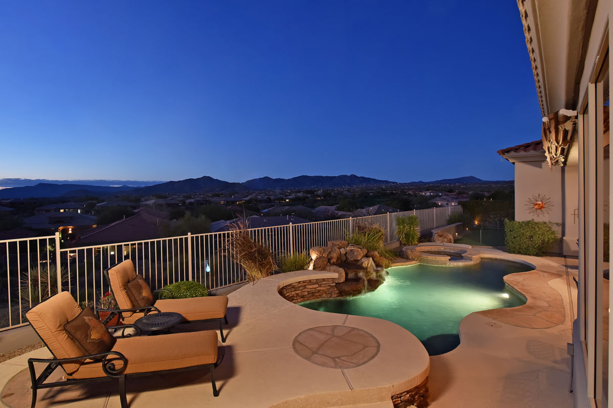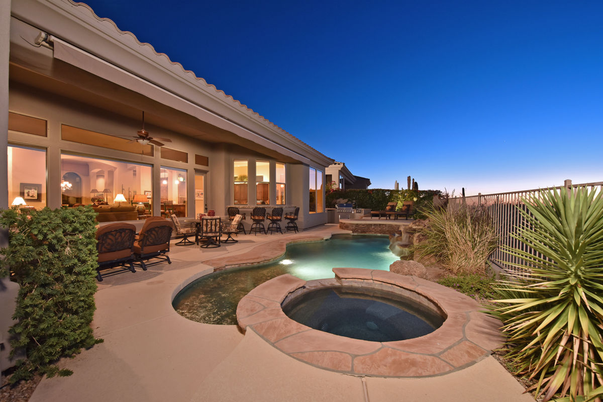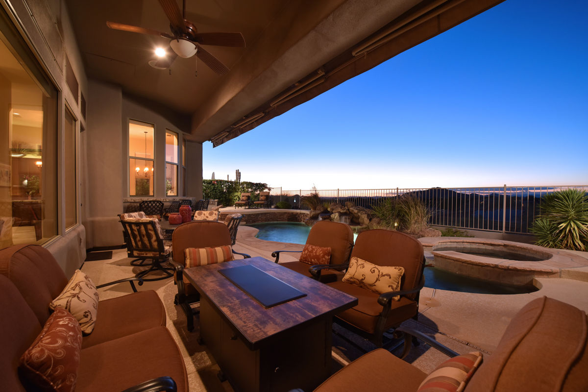 Soak in the views from the entertainer s yard with heated pool and negative edge spa, rock waterfall feature, four-hole putting green and elevated seating with BBQ and full view fencing to optimize the endless sky and mountain views. Most furnishings and accessories available by Separate Bill of Sale.