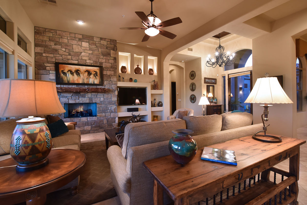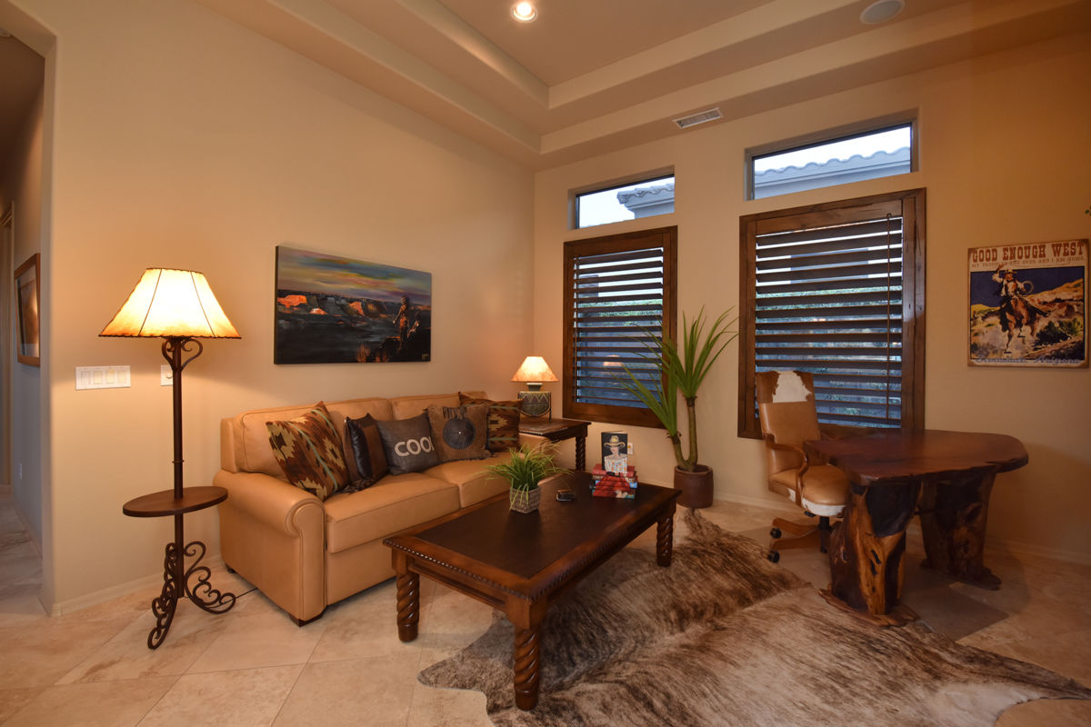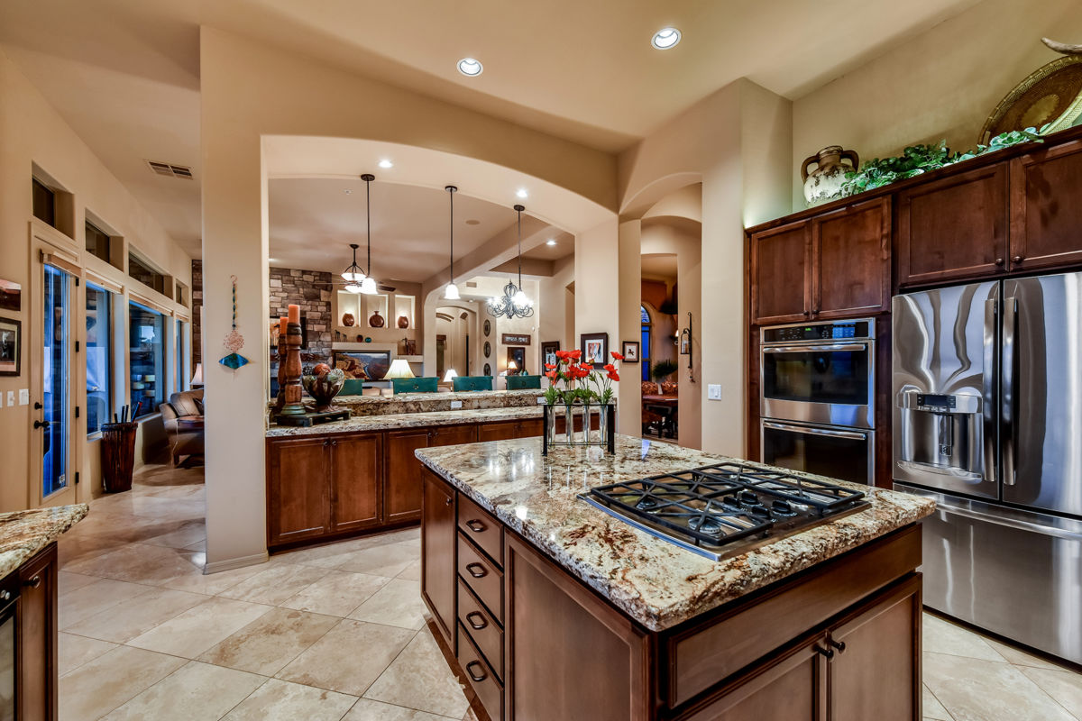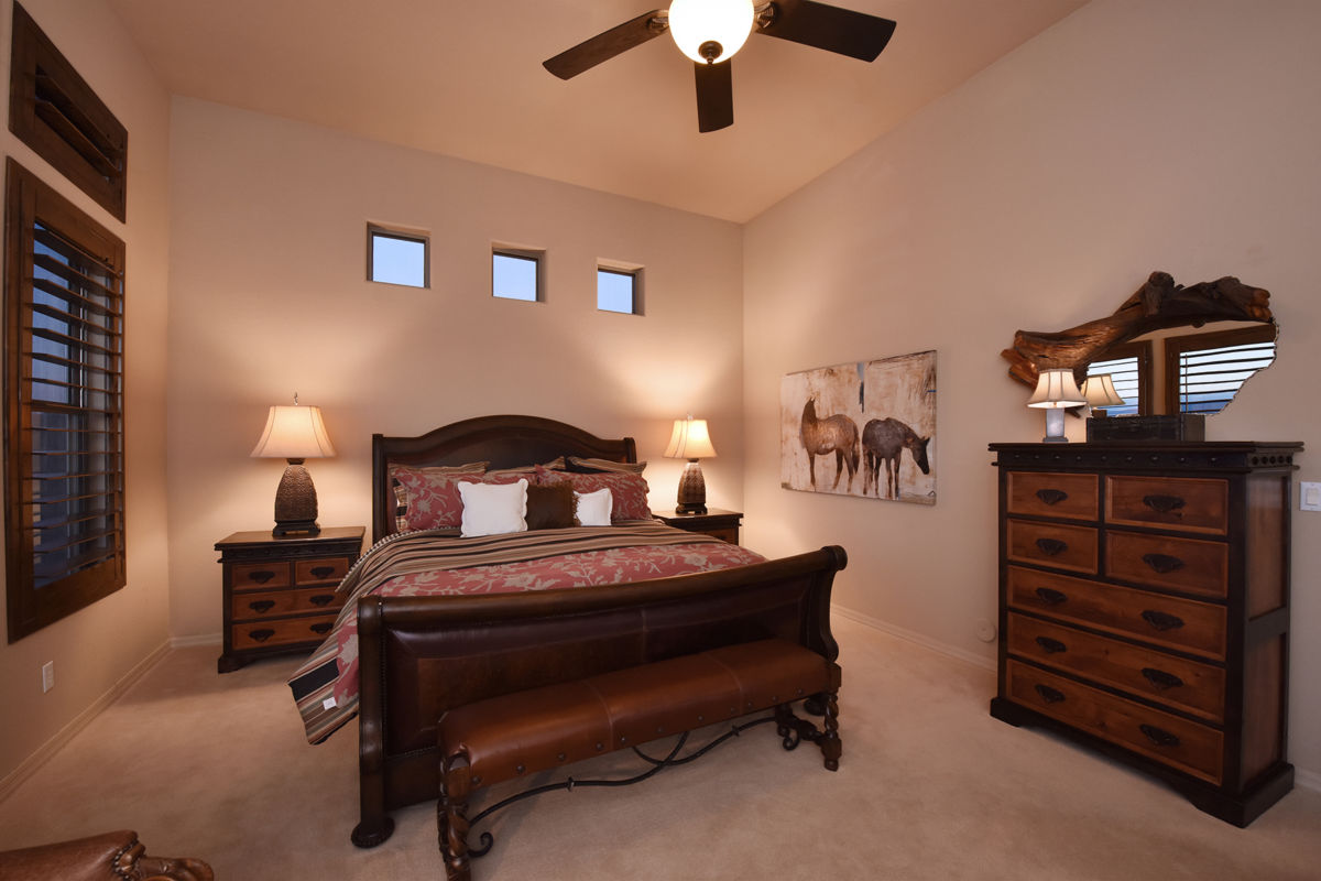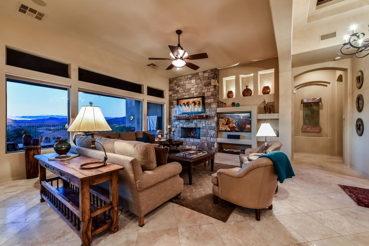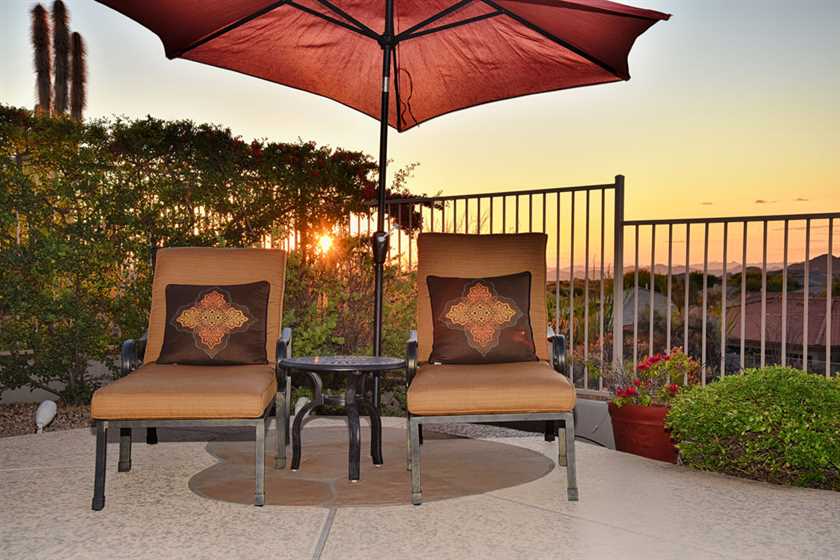 Soak in the views from the entertainer s yard with heated pool and negative edge spa, rock waterfall feature, four-hole putting green and elevated seating with BBQ and full view fencing to optimize the endless sky and mountain views. Most furnishings and accessories available by Separate Bill of Sale.