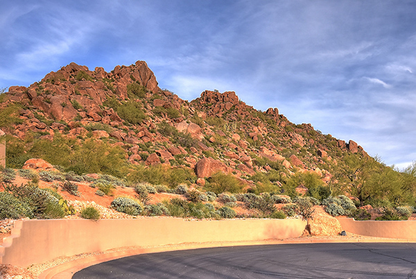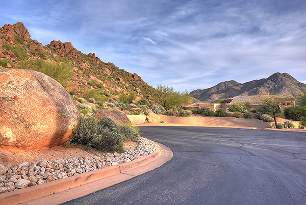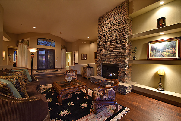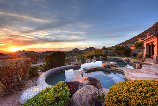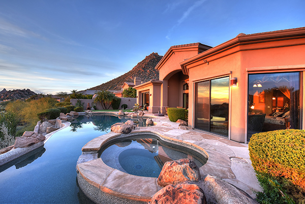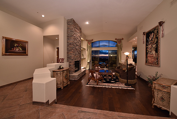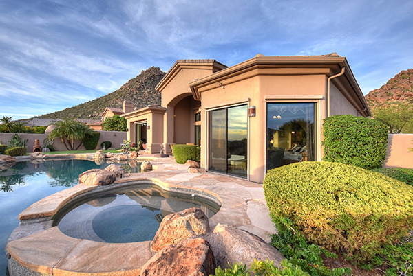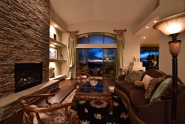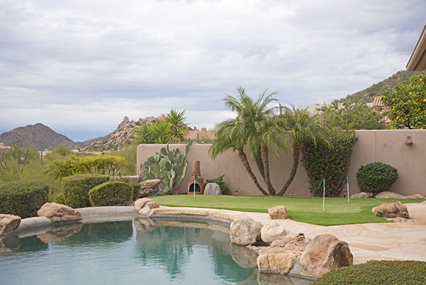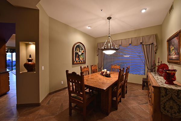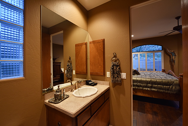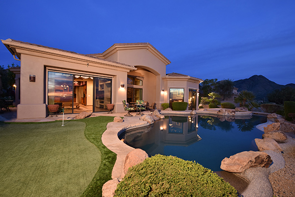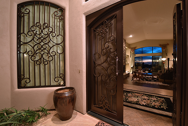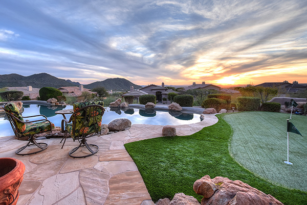 In the private gated community of Quail Ridge in Troon Village, this Edmunds custom residence is nestled within the gentle slopes of Troon Mt. Magnificent city light views from the back and stunning Troon Mt. views from the front. This quiet cul de sac home located towards the top of the subdivision, feature a charming front courtyard, cantera front door, custom window treatments, shutters, and spacious floor plan with 3,067 sf all rooms are a generous size. Kitchen has granite counters with full backsplash, island with sink, and double doors off Breakfast nook for outside entertaining. 3rd Bedroom is used as an office and has a Murphy Bed. Beautiful negative edge Pebble Tec pool, spa, firepit, putting green, and endless city light and sunset views! Freshly painted interior.