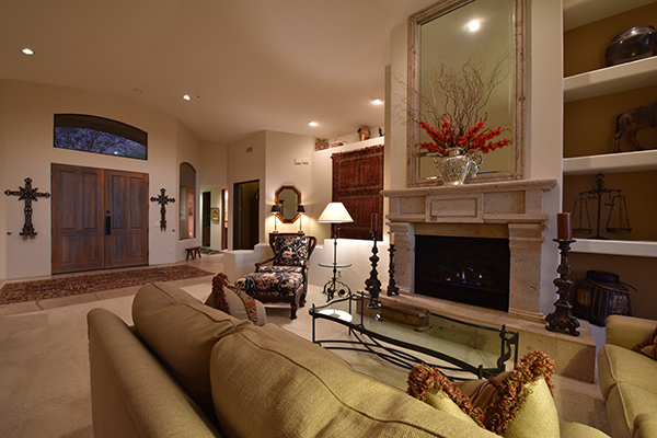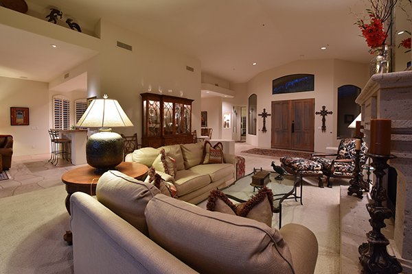 Outside features a large covered patio for entertaining with shade awning, built in BBQ, and a centerpiece waterfall pond feature. Art niches, built in entertainment area, a canterra stone fireplace, and stone floors are just some of the other features you will find. As soon as you take a step through the front door you will appreciate this wonderful home.