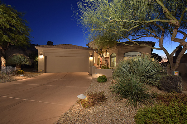 Located in the desirable community of Quail Ridge at Troon Village this home features city light and McDowell Mountain Views. Enter through the front courtyard and double doors and take note of the large picture windows and no interior steps!