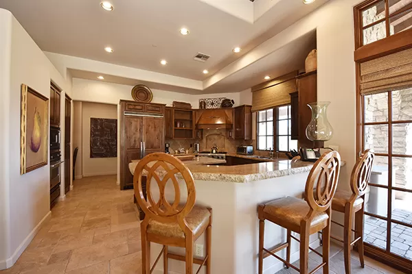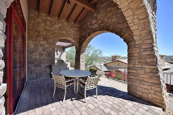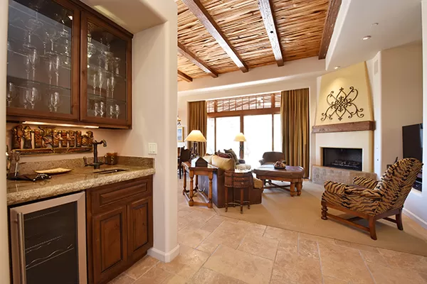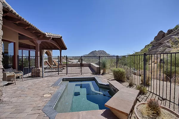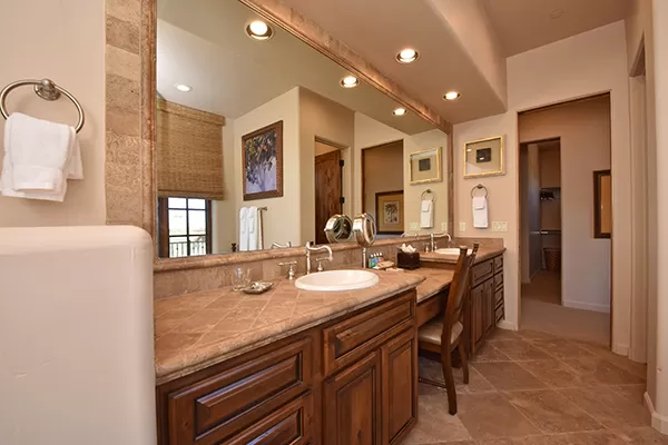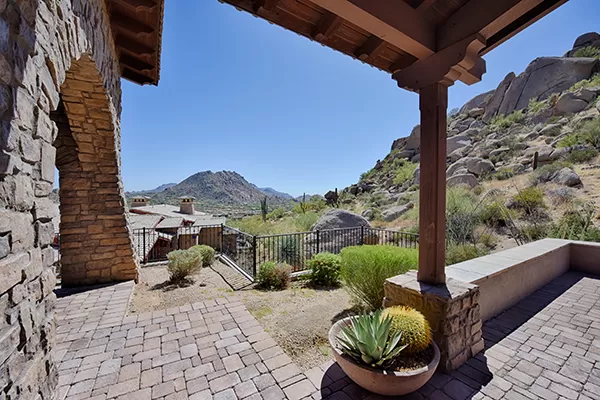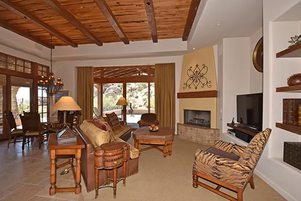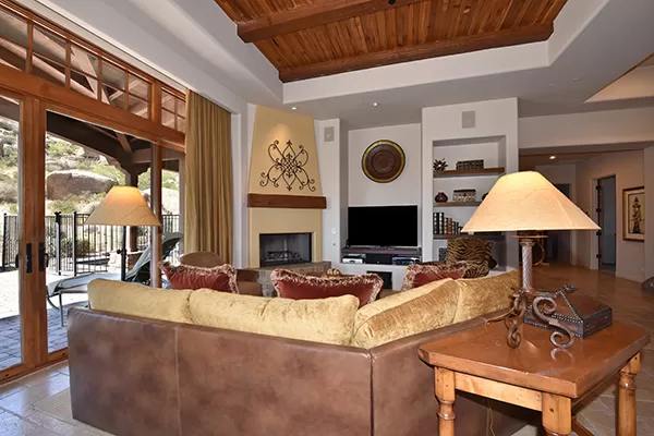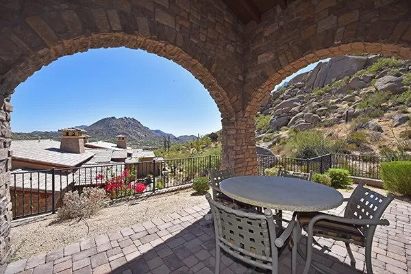 The Rocks is a resort property that delivers high-end resort amenities – designed for the owner that wants everything taken care of for them. Located at the top of the development this beautifully furnished Hacienda Villa has dramatic views of large boulder outcroppings that you can enjoy from the patio with private plunge pool. Great Room floor plan opens to gourmet Kitchen with Wolf/Sub-Zero Appliances.