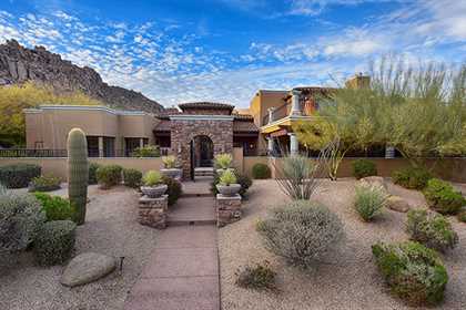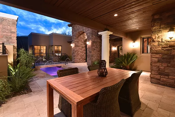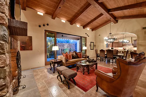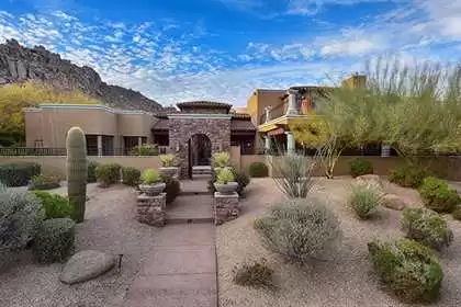 Details Galore! This exquisite old-world Tuscan inspired estate located in guard gated Troon Village is a craftsman’s dream. Stunning details abound in this 6,000 plus SF masterpiece highlighted by wood beamed and groined vault brick ceilings, versailles pattern travertine and wood floors, smooth stucco and stacked stone exterior and interior accents, and many more custom details throughout.