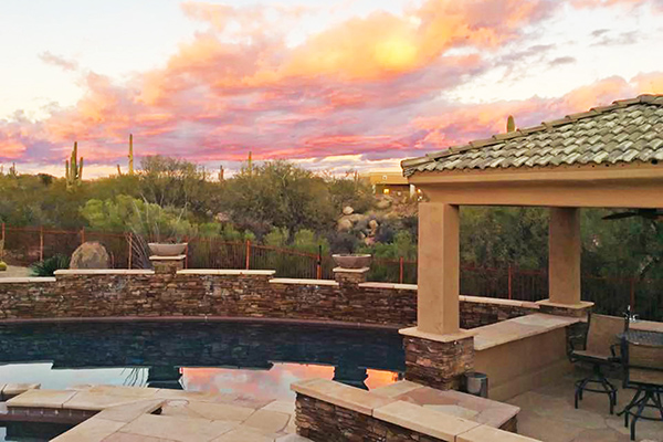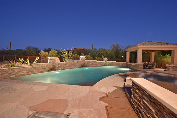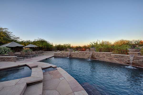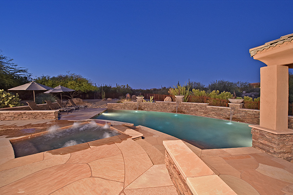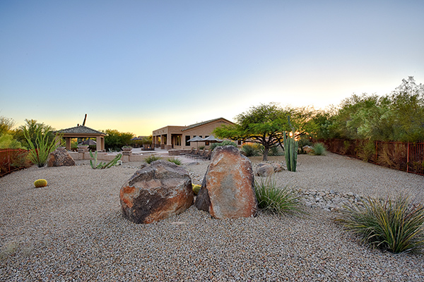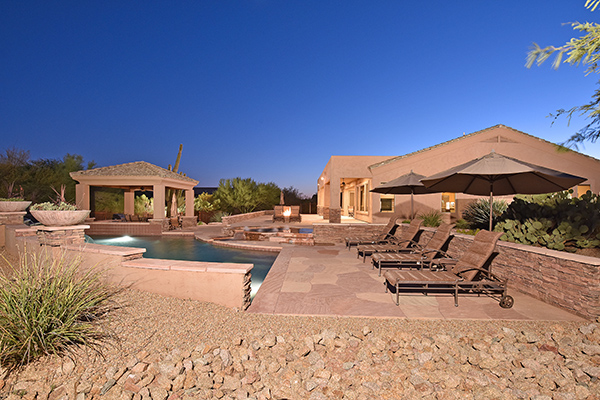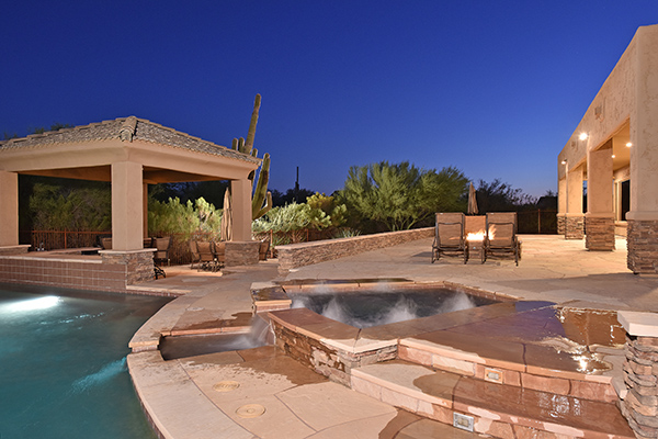 This well maintained home in the upscale, gated community of Troon Verde has a sun filled, premium lot that features nearly an acre of private Sonoran Desert living. Relax in the backyard with large pool and elevated spa with water features and swim up bar, easy maintenance desert landscaping, private ramada with BBQ and dining area, lounge areas, fire pit, covered patio all to enjoy infamous Arizona sunsets.