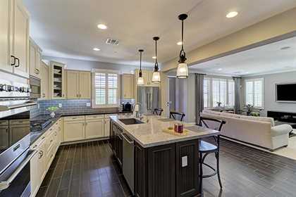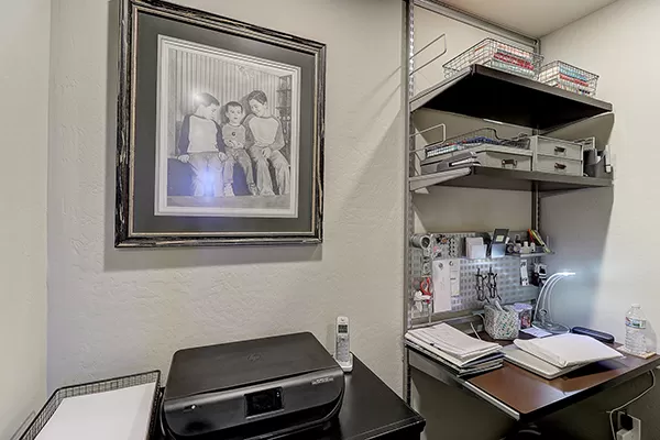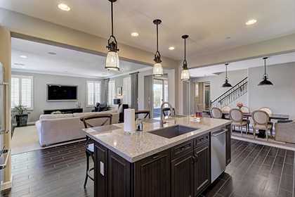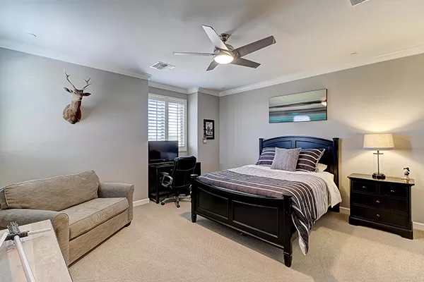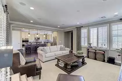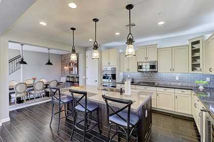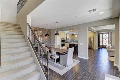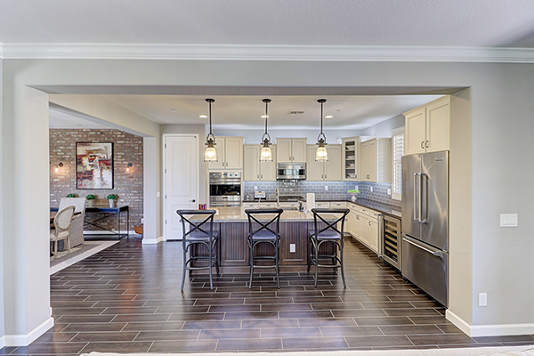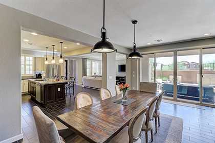 Immaculate and pristine home in gated Villas at DC Ranch is privately located with beautiful upgrades that are on point with today’s trends. Upon entering from the front porch, take note of the great room floor plan with the large kitchen, open to the family room and dining area with accent brick wall. The kitchen features abundant cabinet space with custom white cabinetry and a two toned island with bar seating, glass tile backsplash, Viking stainless steel appliance package, gas range, and custom pendant lighting.