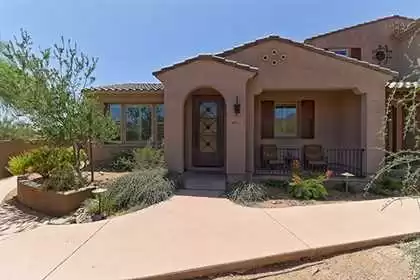Other features include plantations shutters throughout, two car garage, custom light fixtures, large laundry with sink, stone surfaces throughout, and easy access to guest parking. DC Ranch has all the amenities including community pools, walking and hiking trails, tennis and basketball courts, fitness center, playgrounds, shopping, dining, and golf! Don’t miss this one of a kind home.