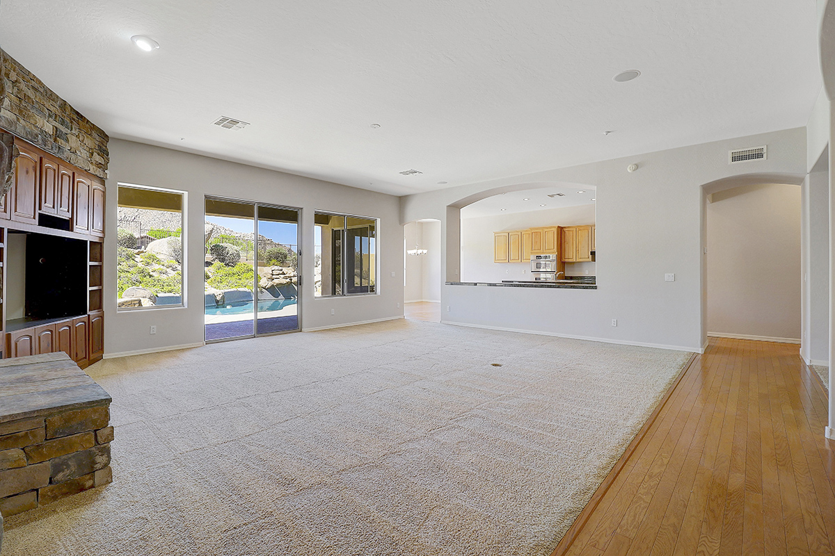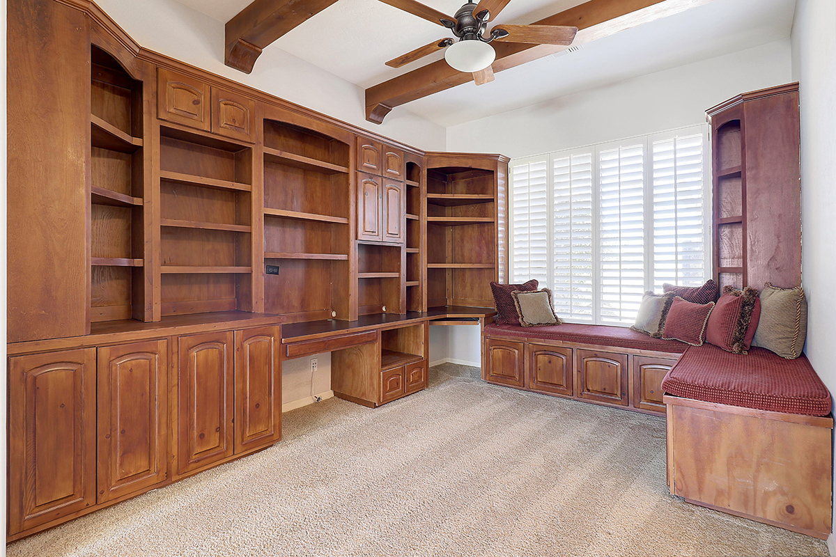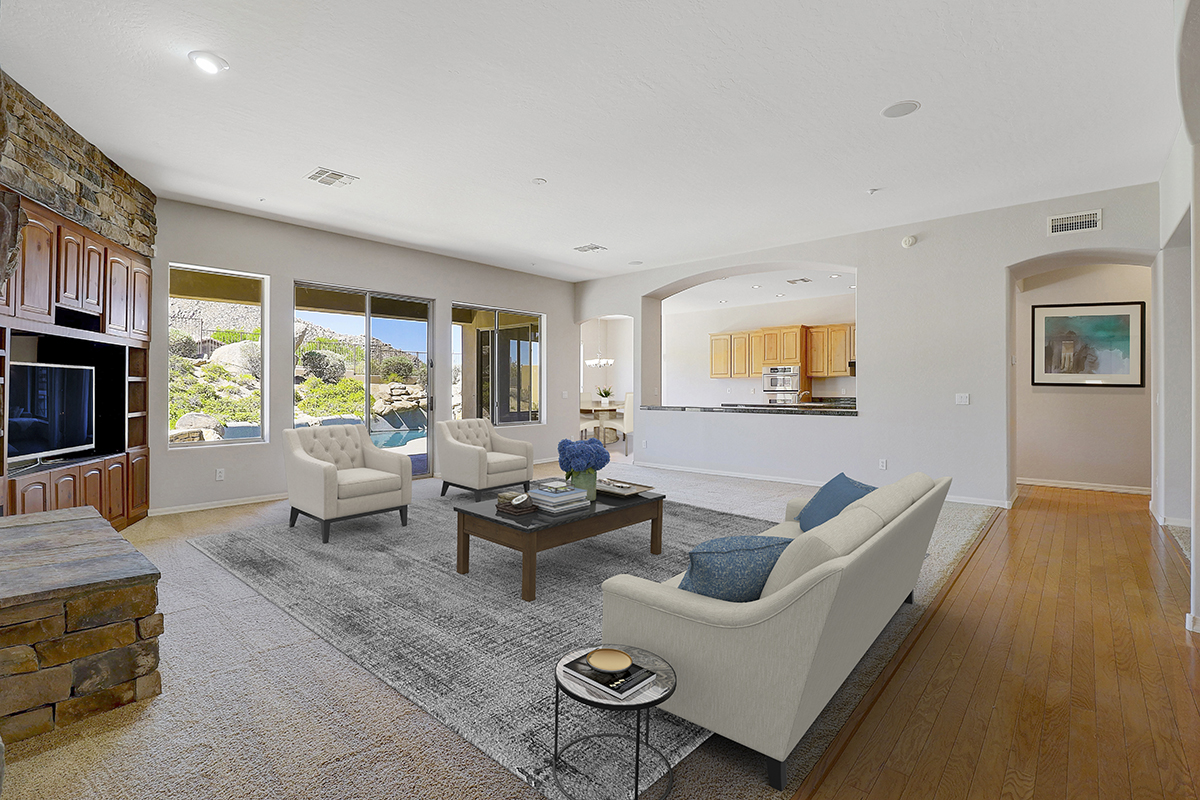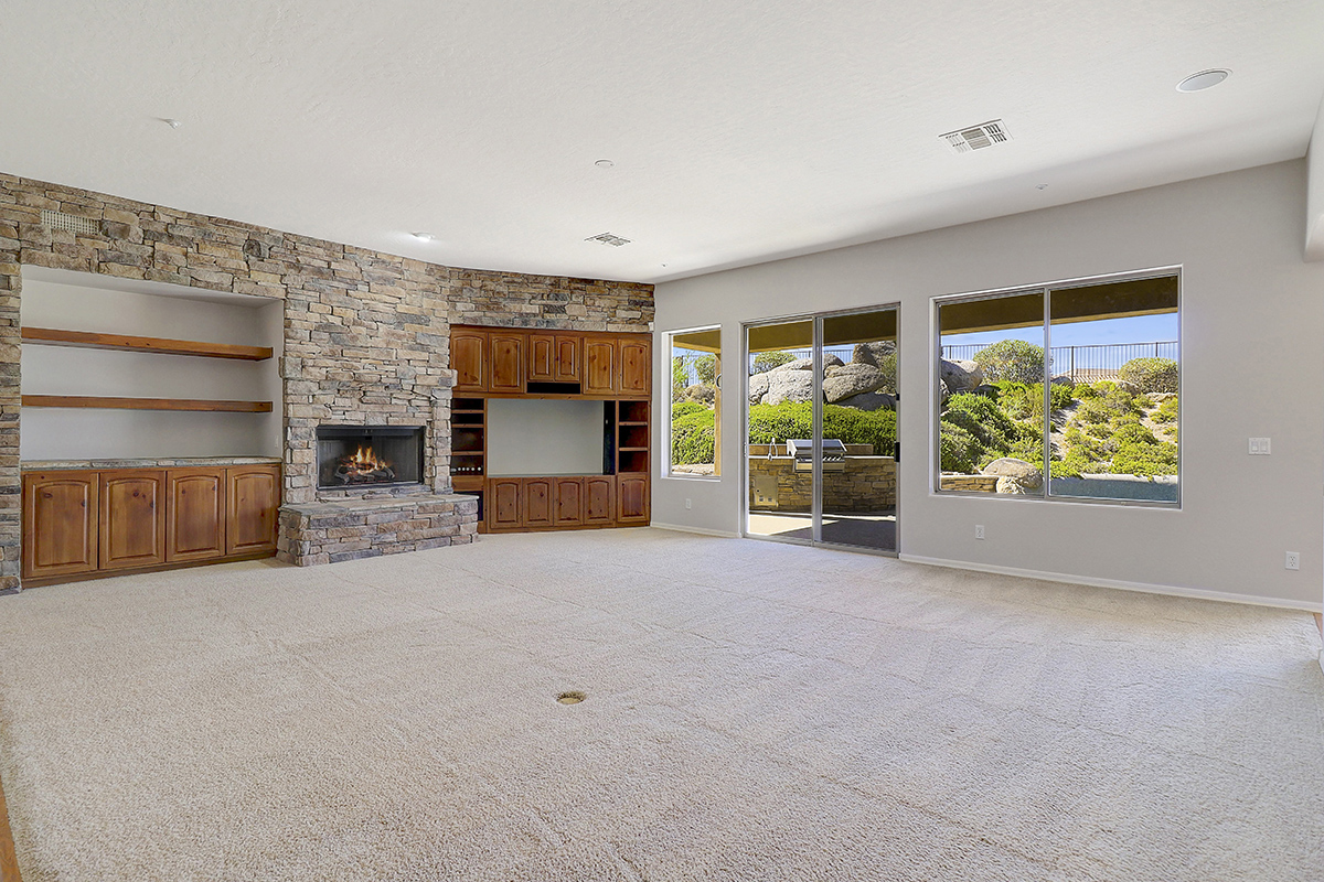 Throughout the home you can find elements of rustic charm with a beamed ceiling and wood accents in the office, charming stone entry bridge and stacked stone in the great room playing off the natural boulders in the backyard. The beautiful Southern exposure backyard makes this the perfect space for relaxation and entertainment with a PebbleTec salt water heated play pool, covered patio for exterior dining and lounging, built in barbecue, two grass play areas, and classic sunset views!