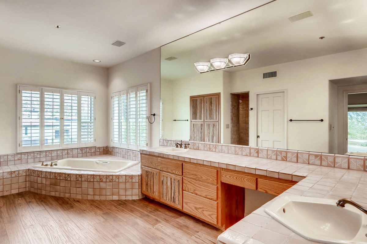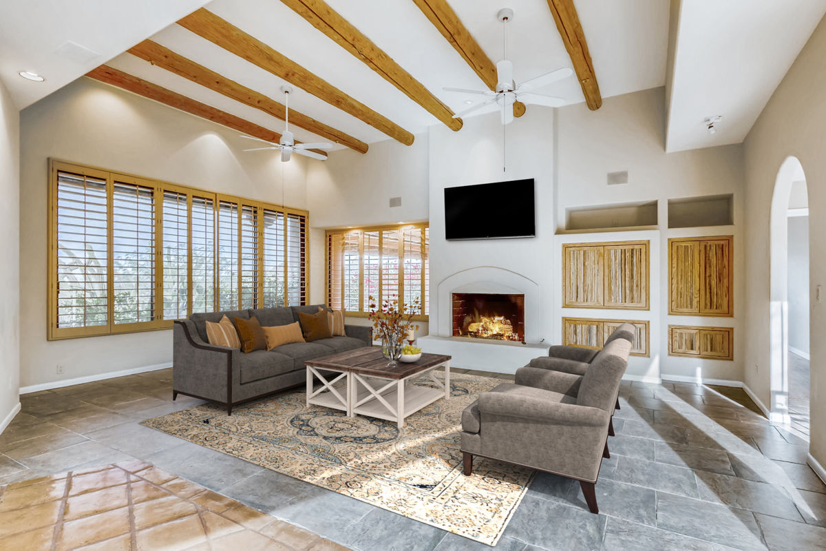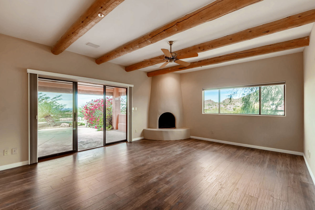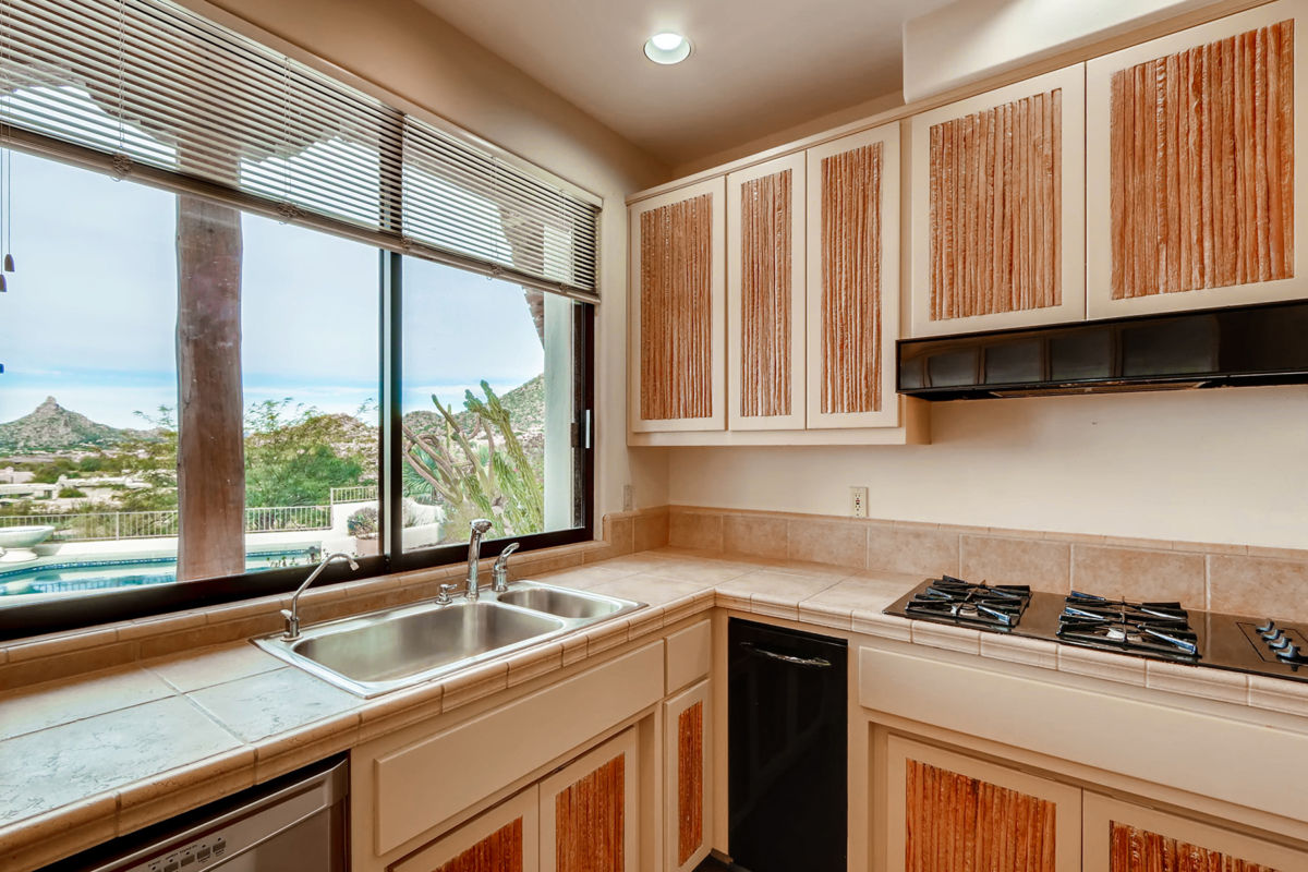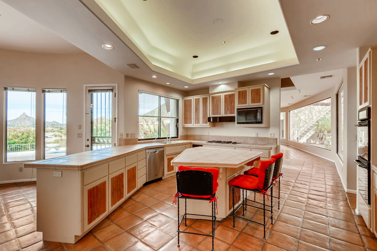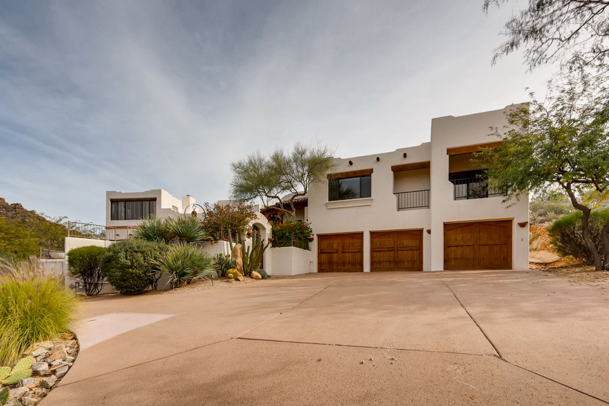 Dynamite views and Southwest charm define this guard-gated Glenn Moor at Troon Village residence. Located on an elevated, unique lot featuring walls of windows showcasing the 360 degree views of the McDowell Mountains, Pinnacle Peak, Troon Mountain, and twinkling city lights. Saltillo tile, Vega beams, latillas, smooth stucco, and kiva fireplaces accent the interior and exterior highlighting the Southwest decor.