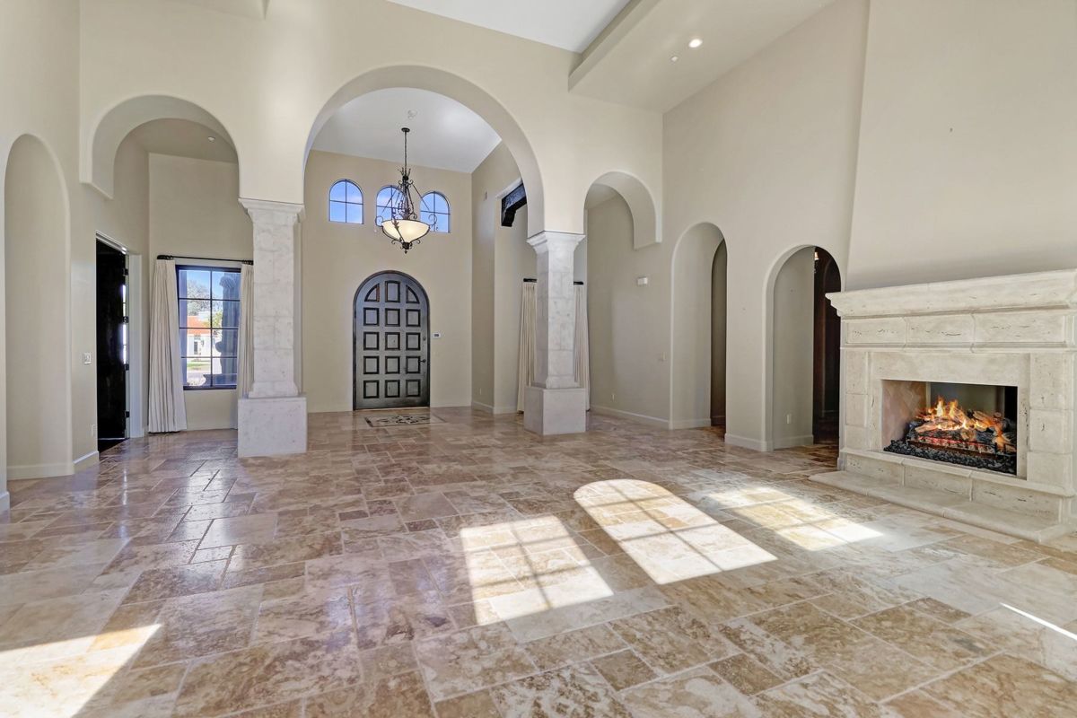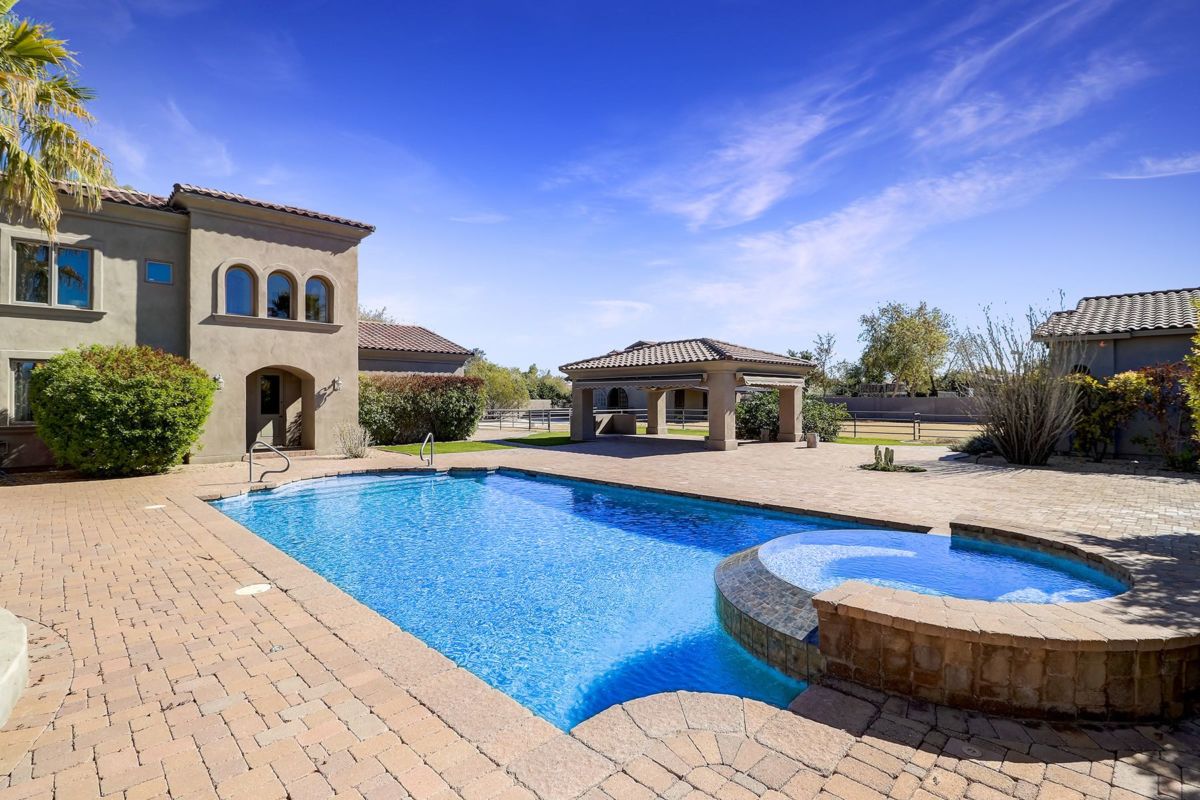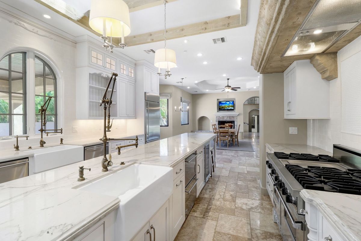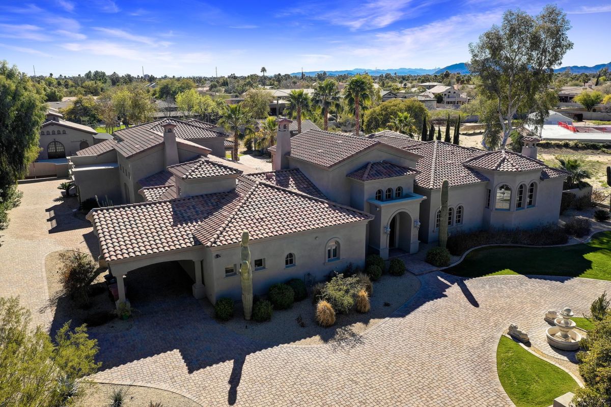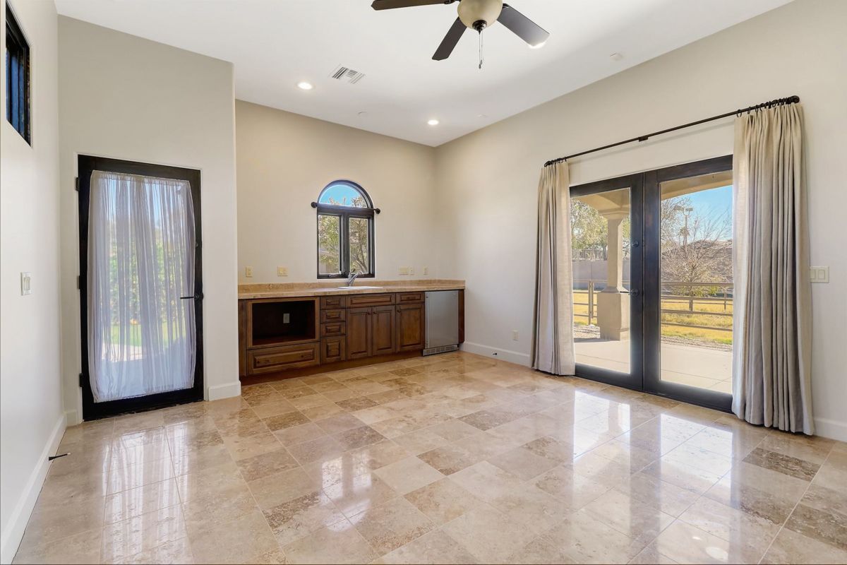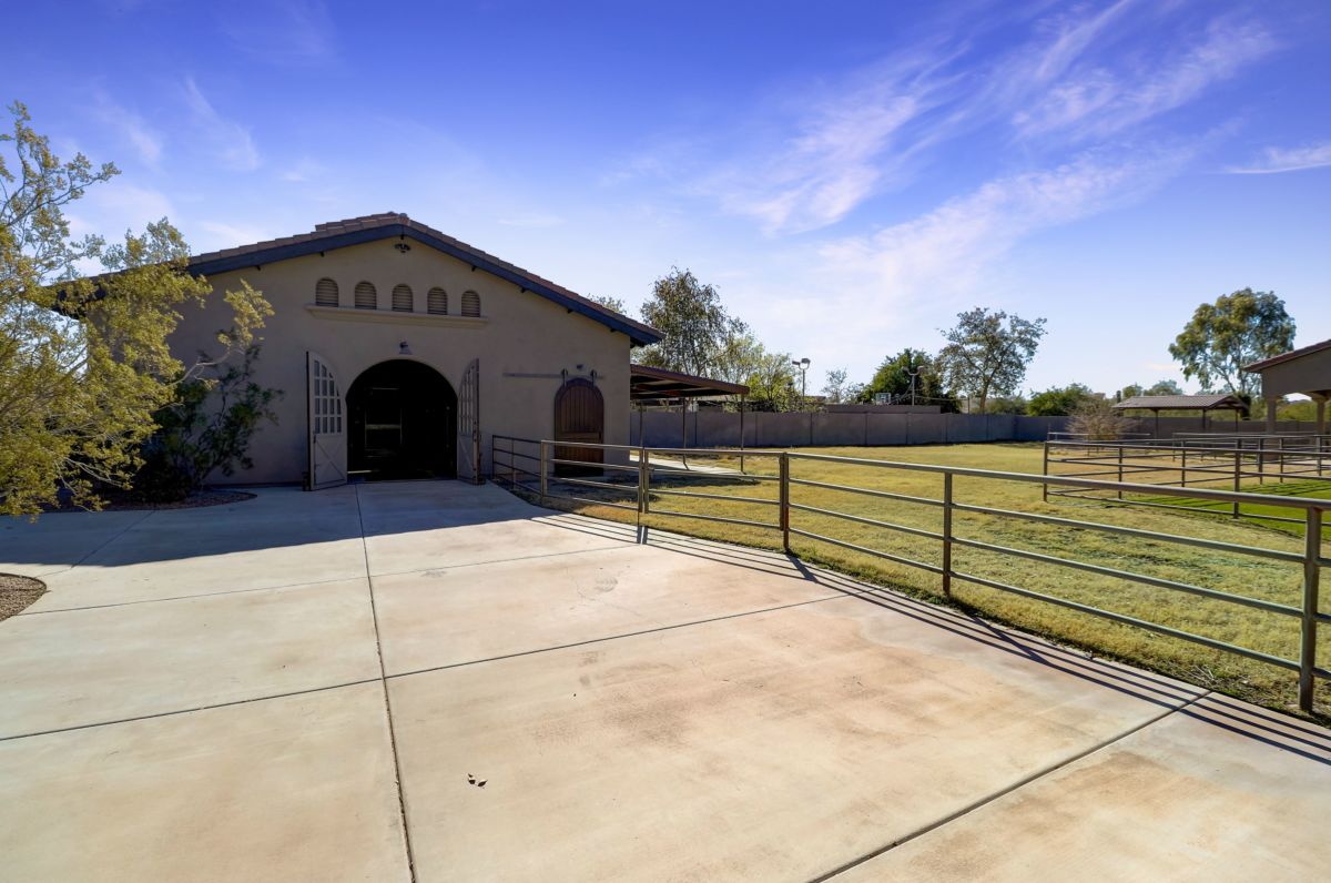 2006 build in the prime neighborhood of McDowell Ranchos features a dream home on over one acre with horse and guest facilities. The well-thought out floor plan boasts a masterful use of space and light. The kitchen has a sophisticated farm house style with custom white cabinetry and counters, gas stove with pot filler, two dishwashers, stainless steel appliances, two sinks, large prep island and branches off to the oversized laundry with sink, secondary dining room with fireplace, nook, powder bath, butler’s pantry, wine storage room, and walk-in pantry storage with a private door off the porte-cochere for easy access.