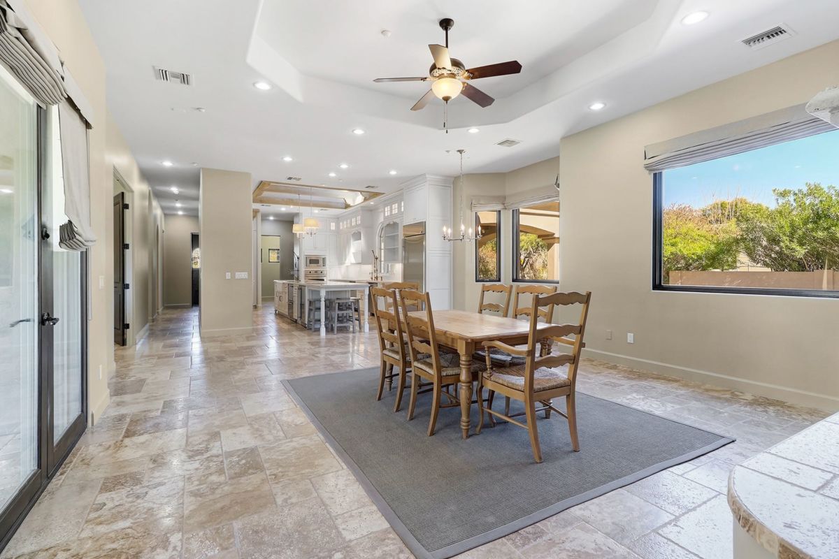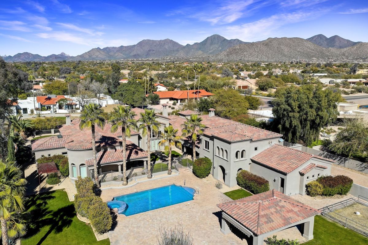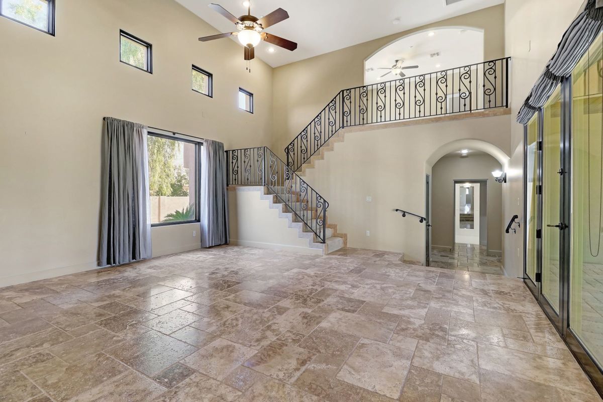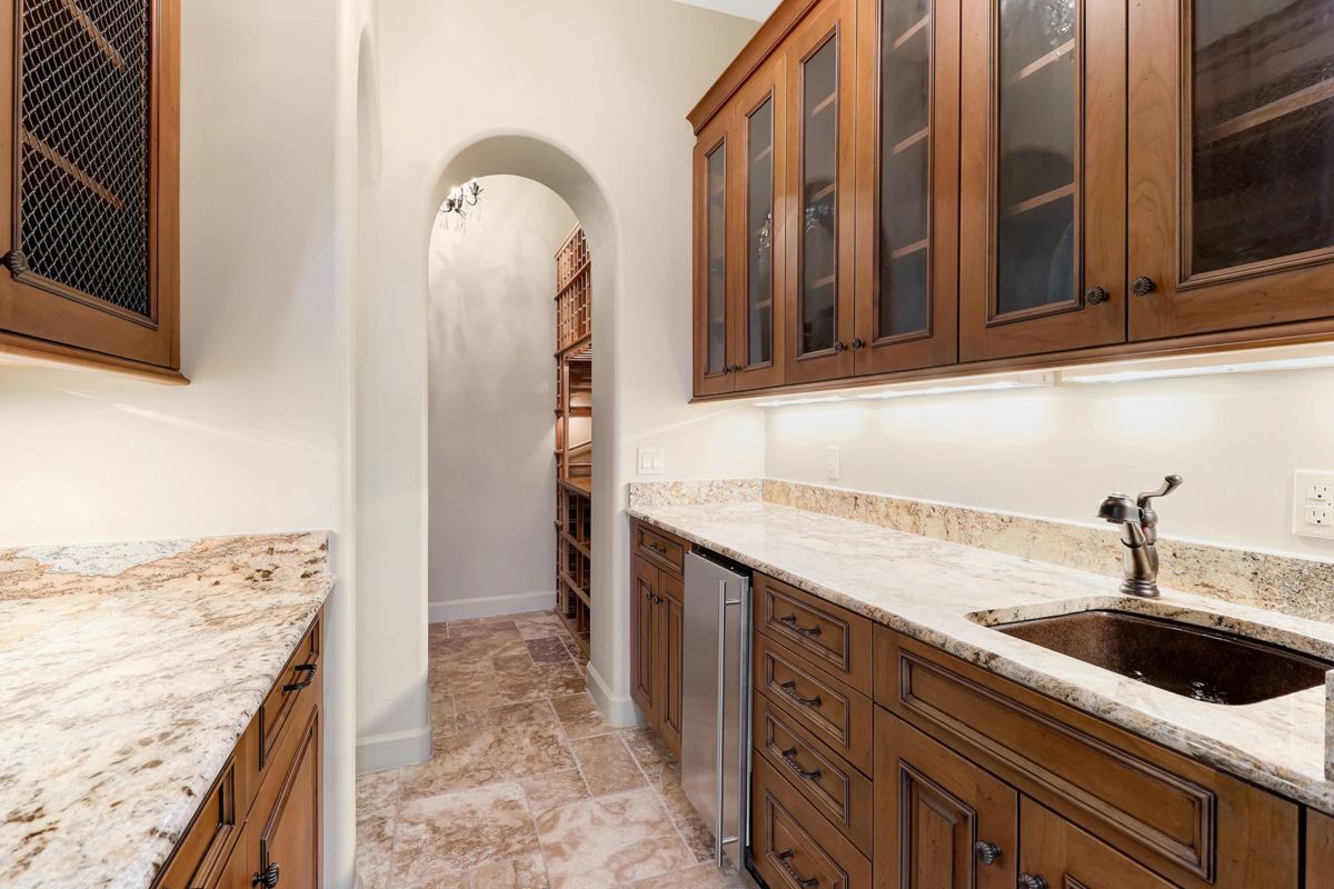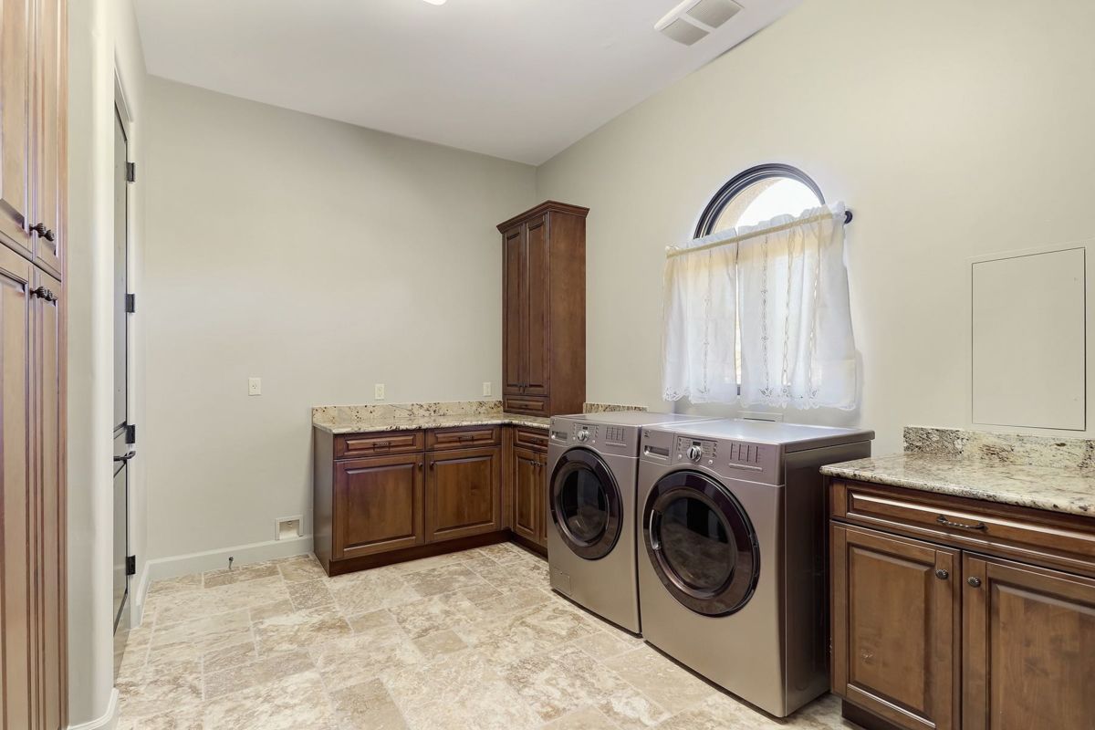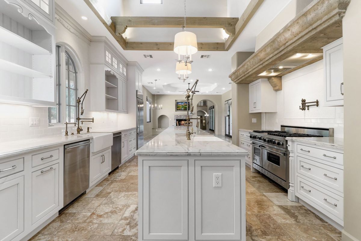 2006 build in the prime neighborhood of McDowell Ranchos features a dream home on over one acre with horse and guest facilities. The well-thought out floor plan boasts a masterful use of space and light. The kitchen has a sophisticated farm house style with custom white cabinetry and counters, gas stove with pot filler, two dishwashers, stainless steel appliances, two sinks, large prep island and branches off to the oversized laundry with sink, secondary dining room with fireplace, nook, powder bath, butler’s pantry, wine storage room, and walk-in pantry storage with a private door off the porte-cochere for easy access.