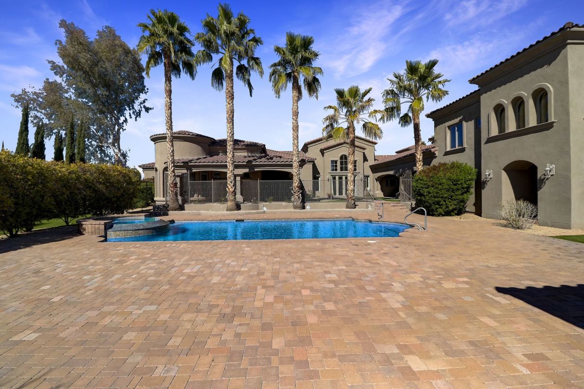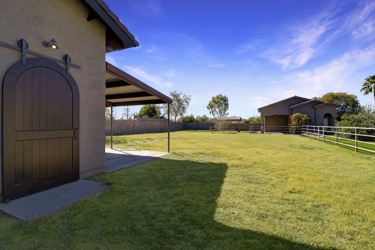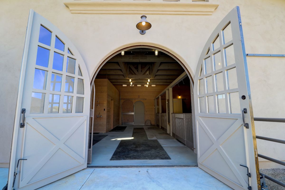 The well landscaped grounds host a resort style pool and spa, pool cabana, grassy play areas and a detached guest home with living, kitchenette, bedroom and bath. A paver half circle drive for guests and a paver side entry drive usher you to the four car garage, one oversized bay and door, and the gated entry to the barn.