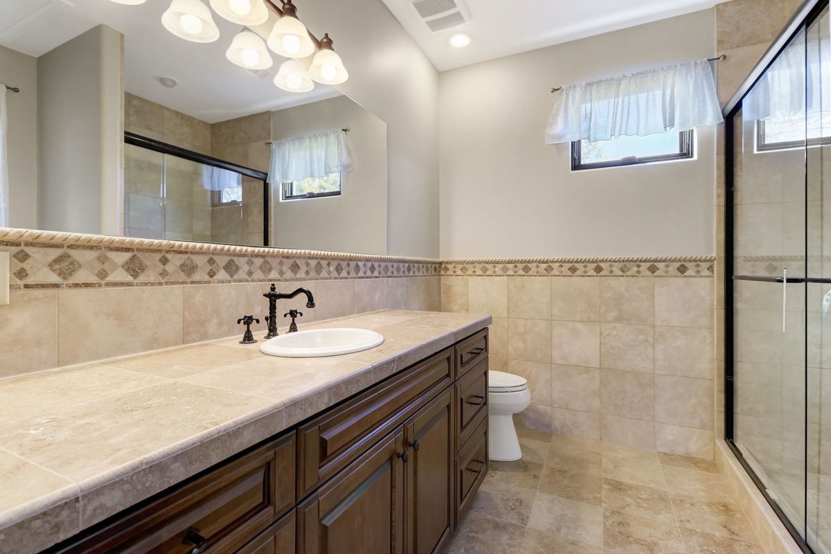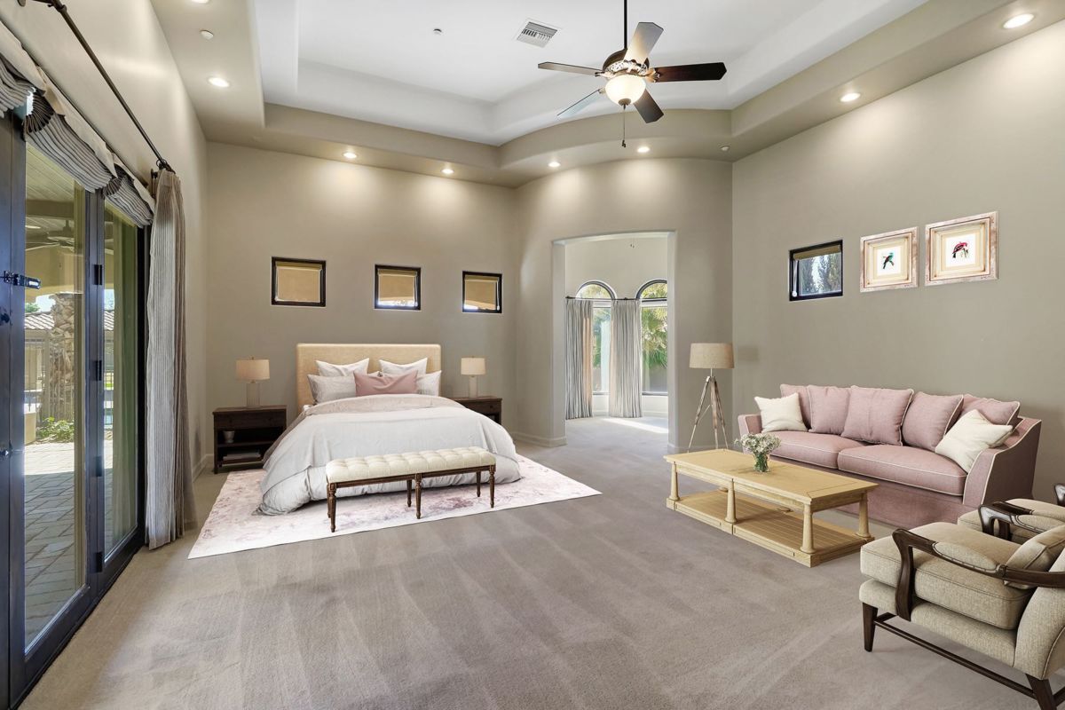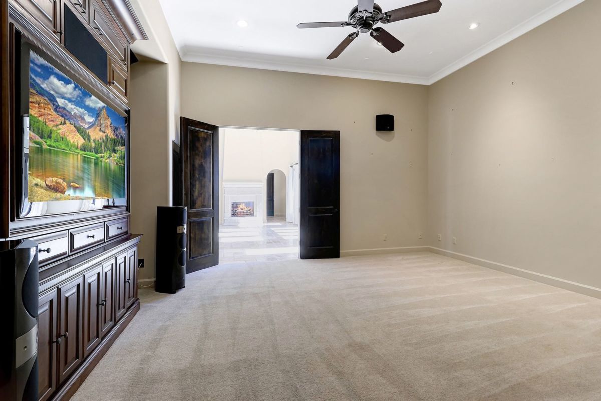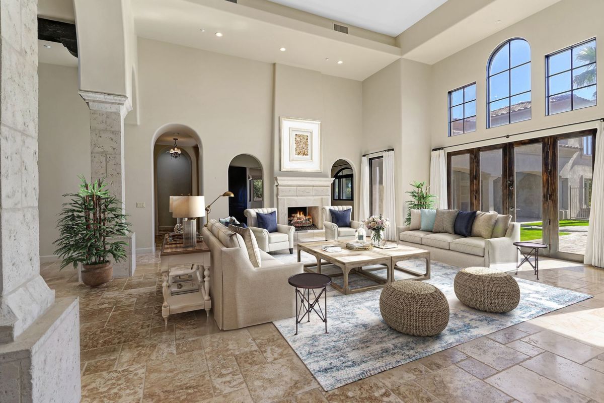 The well landscaped grounds host a resort style pool and spa, pool cabana, grassy play areas and a detached guest home with living, kitchenette, bedroom and bath. A paver half circle drive for guests and a paver side entry drive usher you to the four car garage, one oversized bay and door, and the gated entry to the barn.