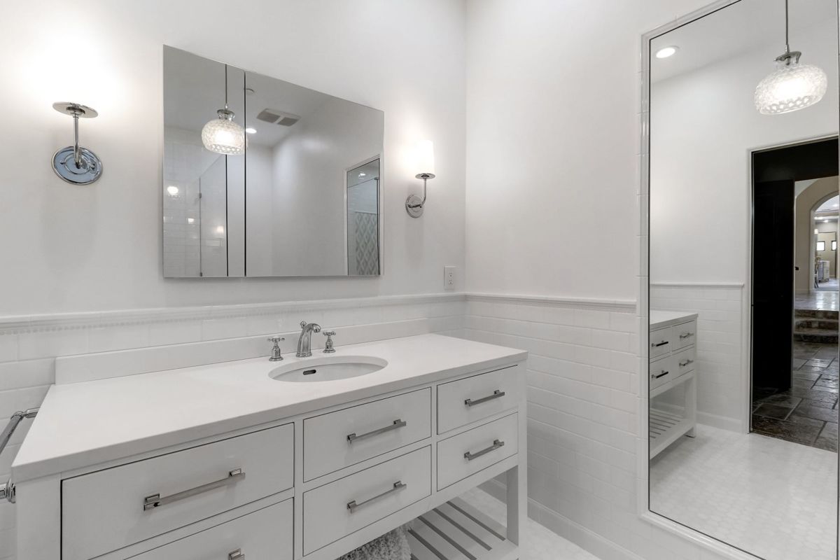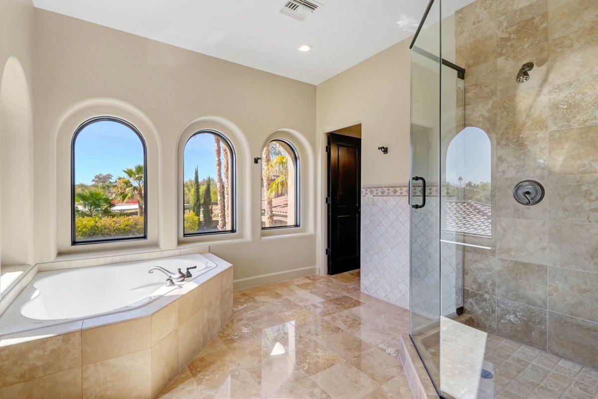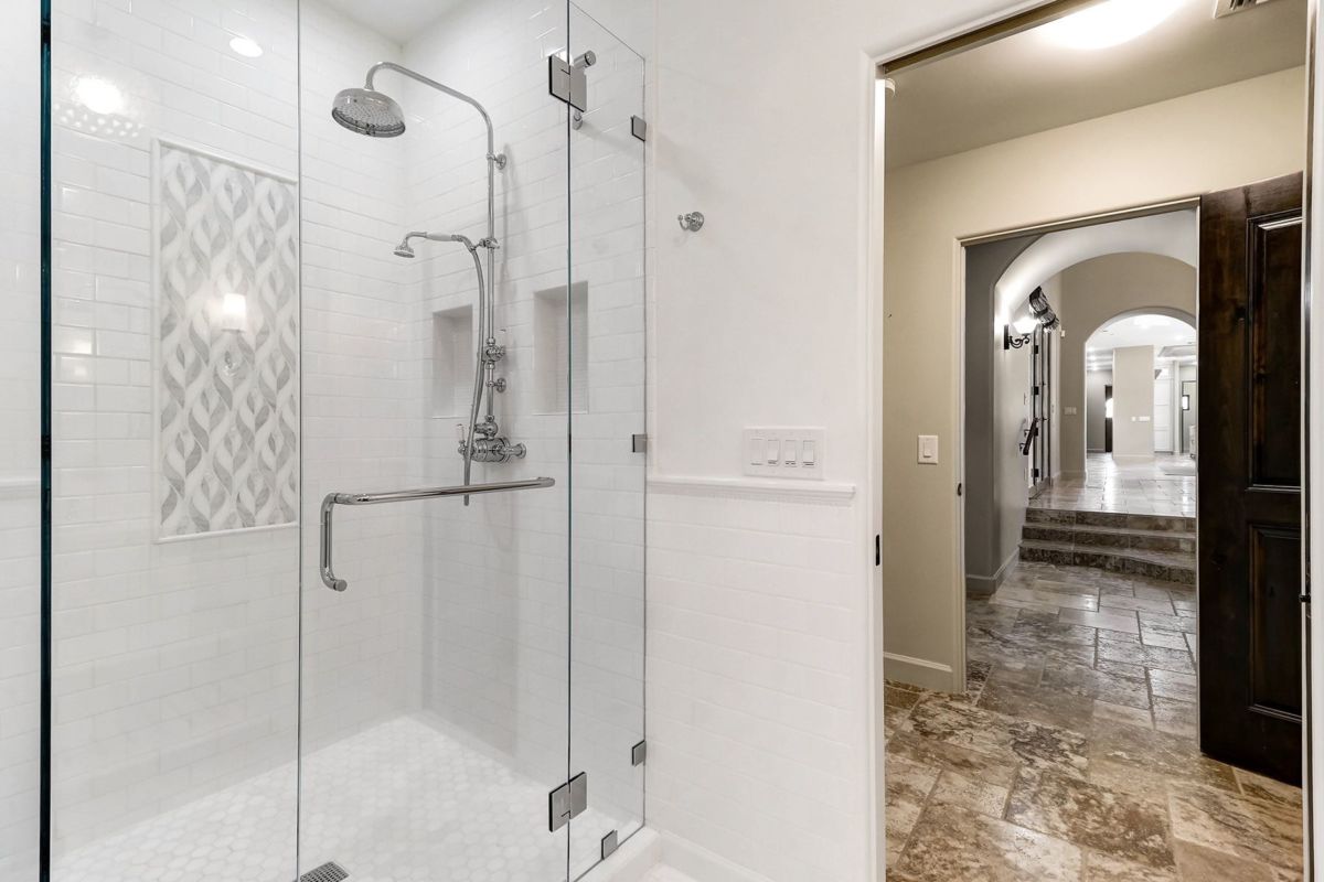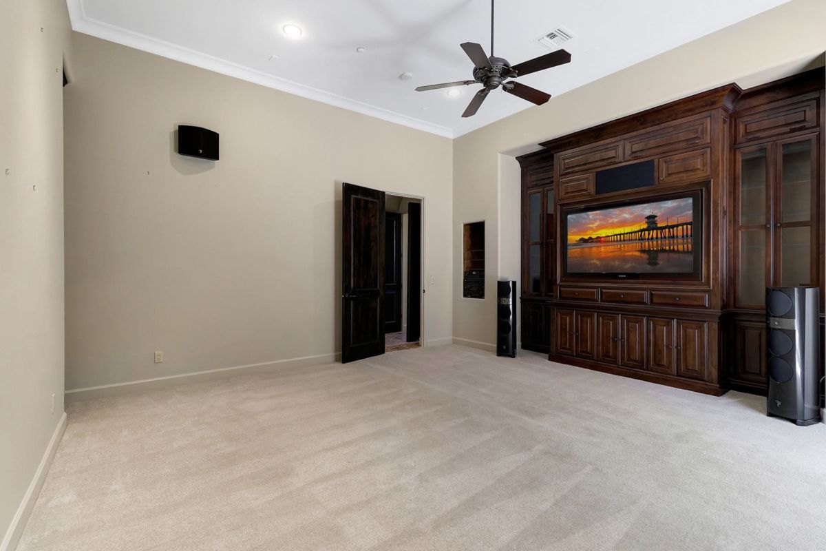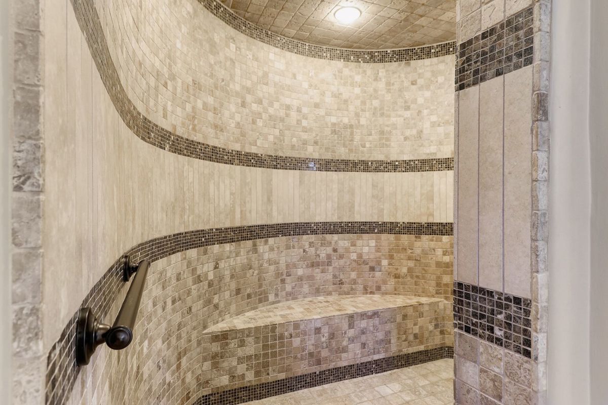 Upstairs features a full loft, walk out deck, two guest bedrooms with a shared separate shower and tub with view window and private sink areas. The main floor has formal living and dining spaces that share a two-way fireplace, dedicated theatre room, den, office/library with fireplace, additional guest room with a private entrance and remodeled bath with Perrin and Rowe Edwardian shower and the grand master suite. Inside the master suite is a rotunda style sitting room, spacious bath with a half circle shower, soaking tub, separate vanities, European style walk-in closet and an exercise room that could serve as a secondary closet.