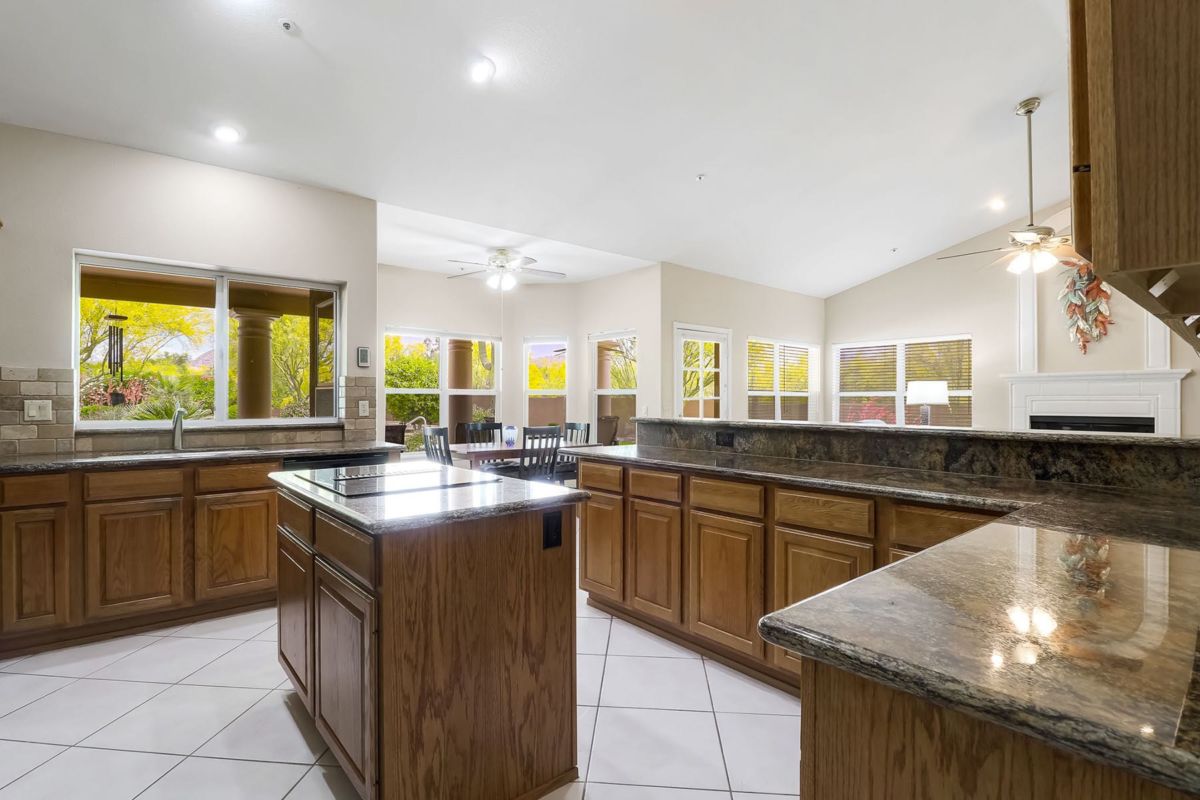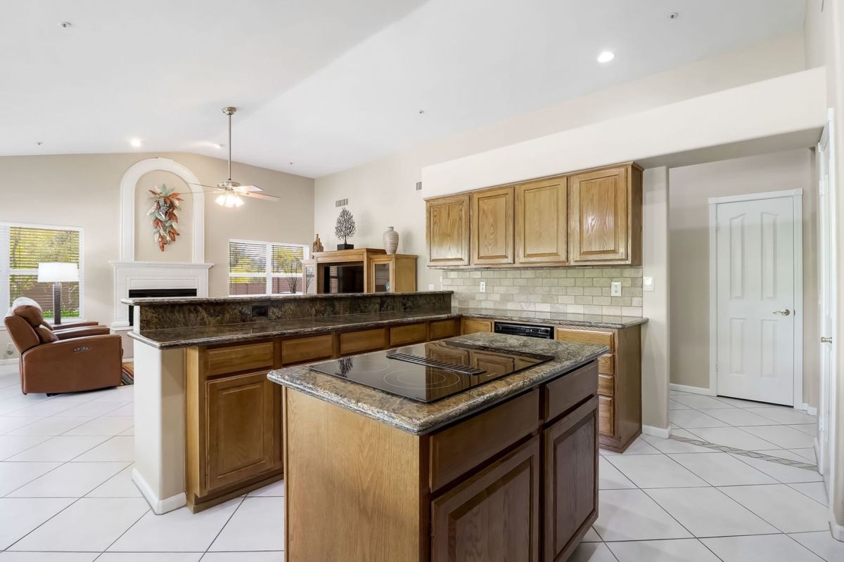 With room to spread out and grow, the yard features a refreshing diving pool, travertine hardscape covered patio, large grassy play area, well landscaped and mature vegetation including a multiple array of fruit trees, block wall surround and an RV gate for toy storage. Inside you will find lots of light throughout including the kitchen and family room with bay window breakfast area and cozy fireplace creating an open setting. Formal dining and living rooms flank the entry and include a wet bar for entertaining.
