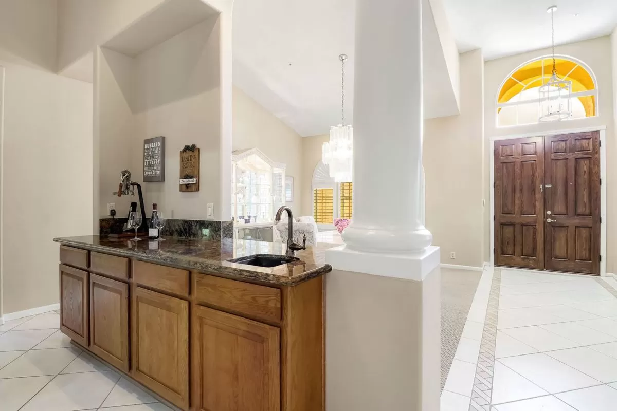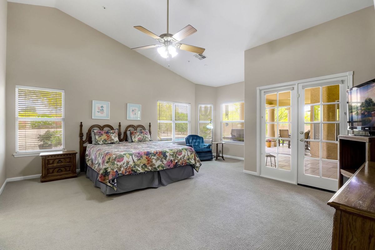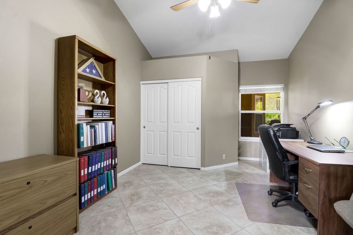 The spacious master suite has a private entry to the covered patio and a newly remodeled bath featuring custom cabinetry, dual vanity sinks, quartz countertops, beach entry shower, and walk in closet. Other spaces include two additional bedrooms and an office with a closet, remodeled guest bathroom, remodeled large kitchen with island and pull out drawers, laundry with sink and more storage cabinetry, and a guest powder room. A large drive way with side entry three car garage is complimented by the half circle guest drive for plenty of parking. This well maintained home is ready for it’s new owners!