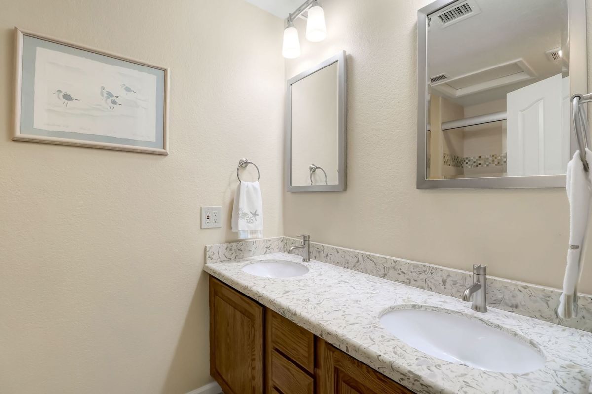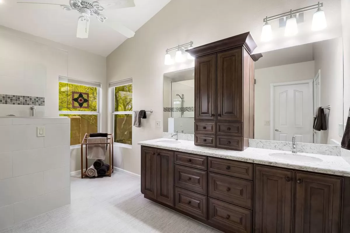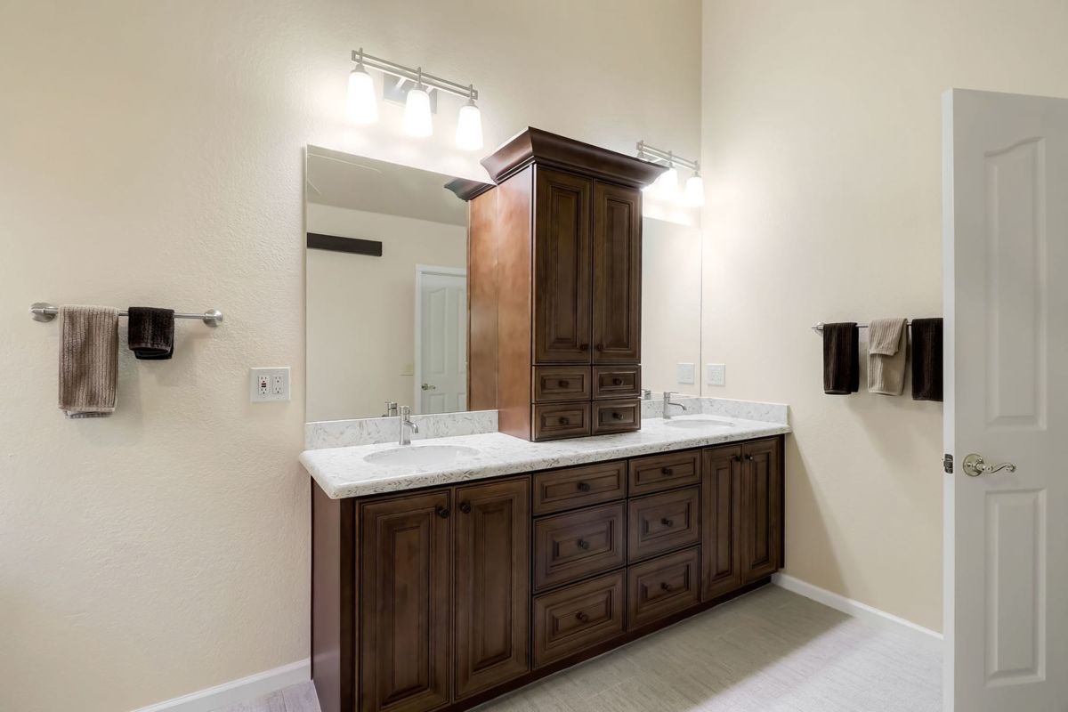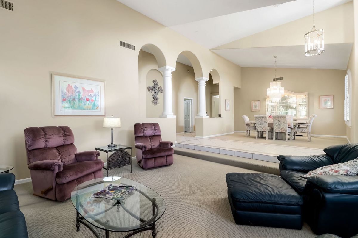 The spacious master suite has a private entry to the covered patio and a newly remodeled bath featuring custom cabinetry, dual vanity sinks, quartz countertops, beach entry shower, and walk in closet. Other spaces include two additional bedrooms and an office with a closet, remodeled guest bathroom, remodeled large kitchen with island and pull out drawers, laundry with sink and more storage cabinetry, and a guest powder room. A large drive way with side entry three car garage is complimented by the half circle guest drive for plenty of parking. This well maintained home is ready for it’s new owners!