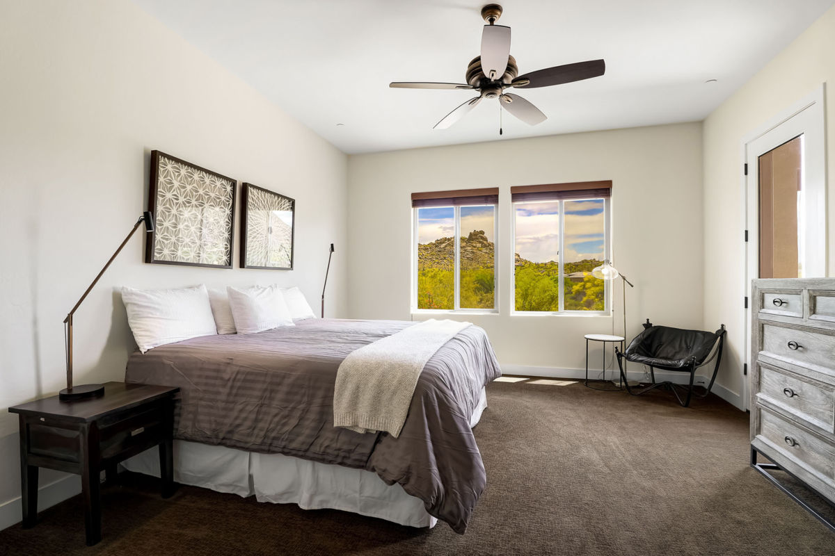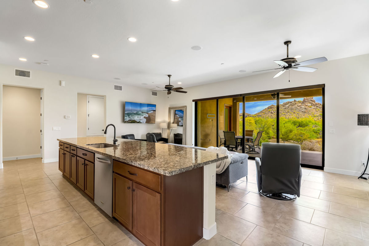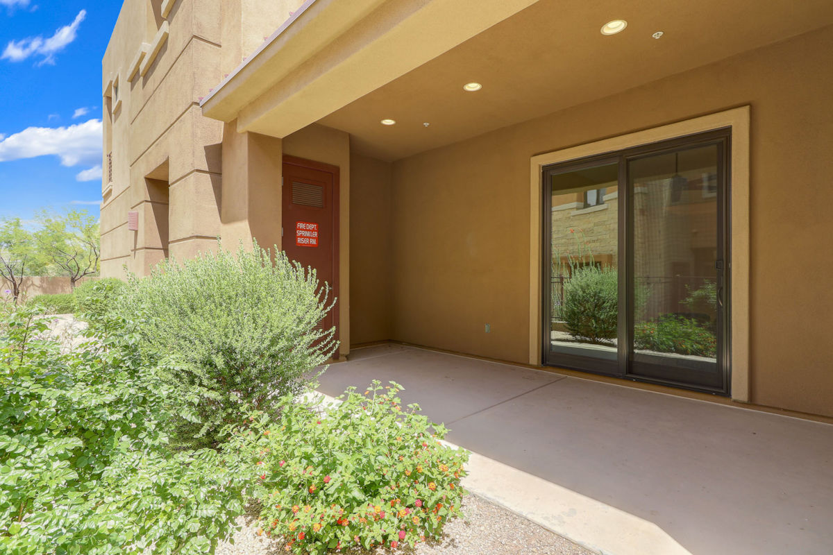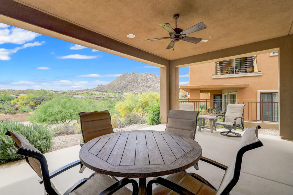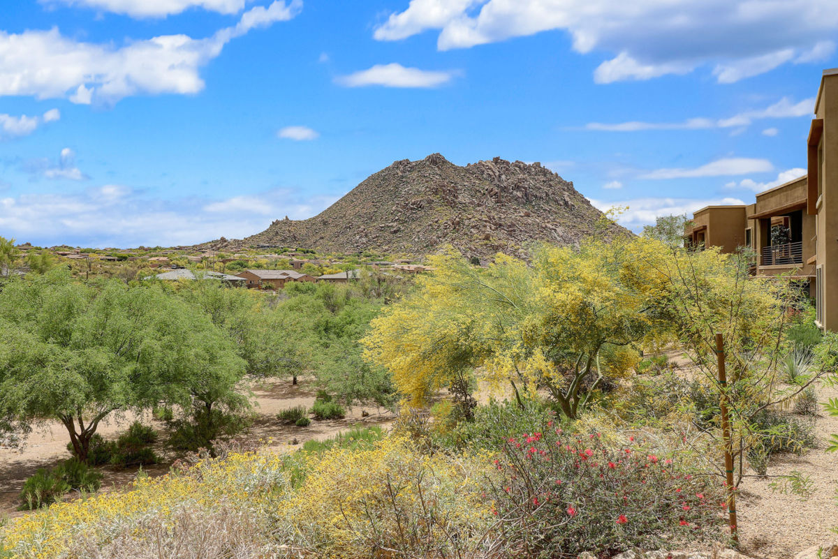 SPECTACULAR VIEWS!! Rare find of first floor unit in one of the most recent new builds in North Scottsdale across from the Four Seasons Resort. Enter through your private gated courtyard with fireplace to this fabulous home with designer finishes, great room floor plan and dramatic wall of multi-sliding doors that open to your private patio and incredible mountain views. This gorgeous home offers, 2 bedrooms, 3 baths, den, laundry room and 2 car garage with built-in cabinets and overhead storage rack. The large kitchen has granite countertops, huge island with seating and stainless appliances. This gated community with community pool, spa and work out room offers Scottsdale’s resort lifestyle at its finest.