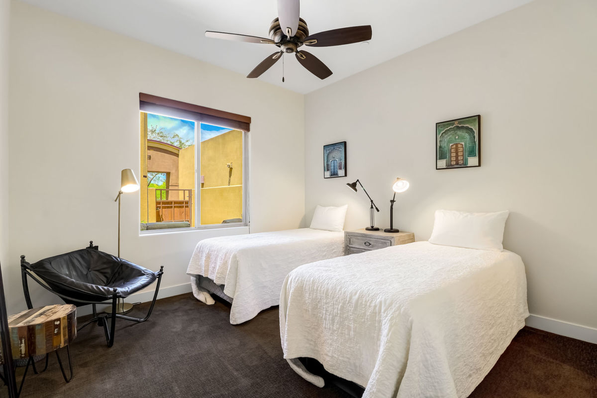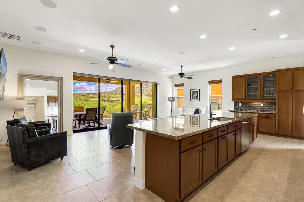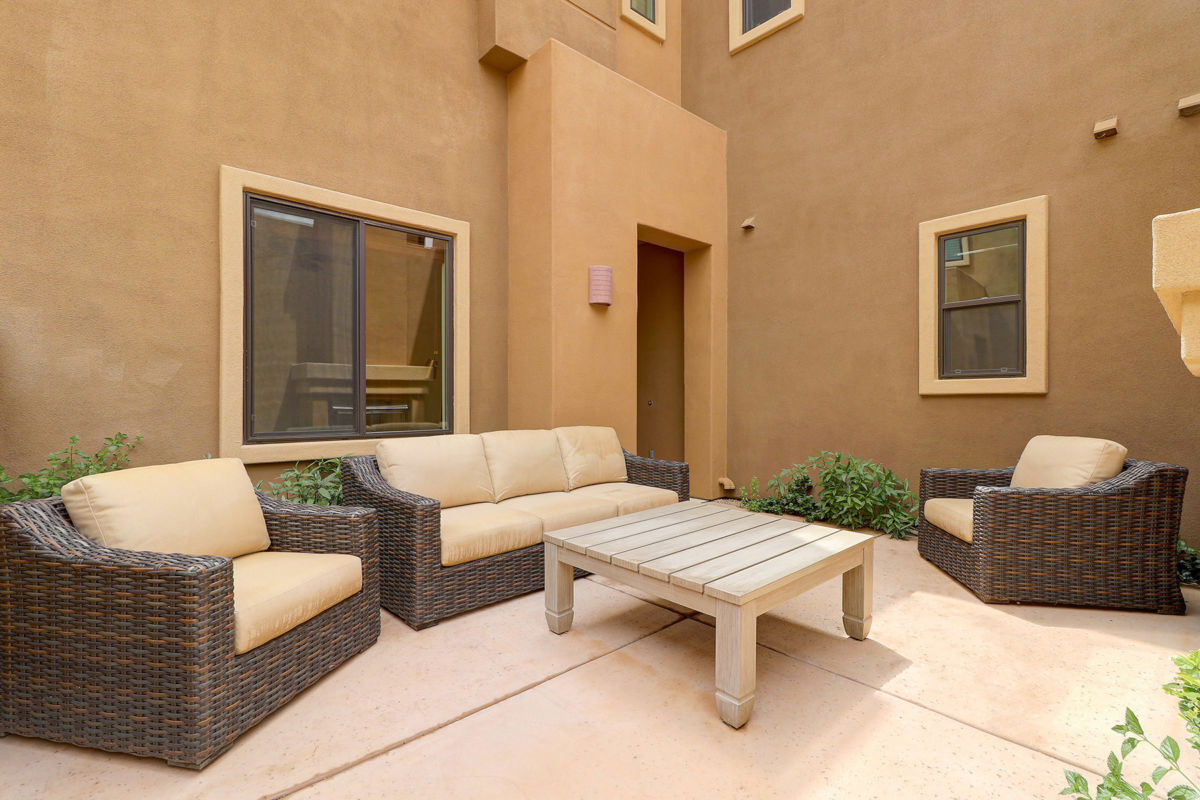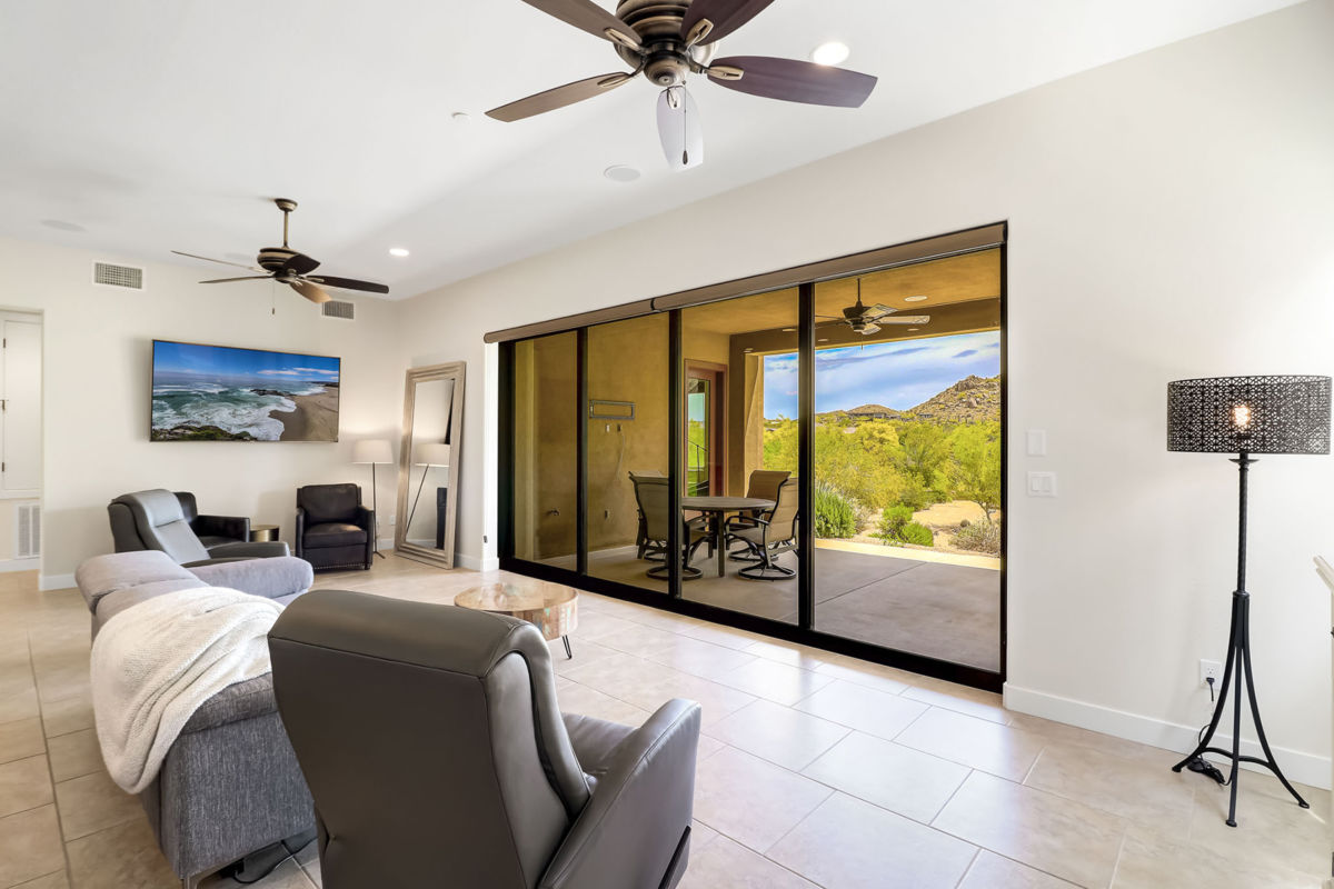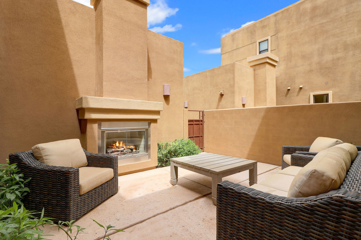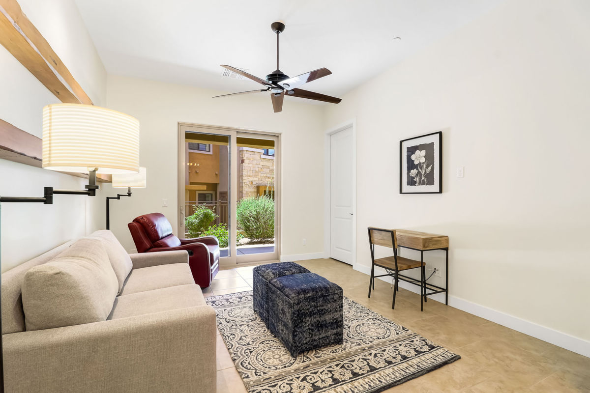 SPECTACULAR VIEWS!! Rare find of first floor unit in one of the most recent new builds in North Scottsdale across from the Four Seasons Resort. Enter through your private gated courtyard with fireplace to this fabulous home with designer finishes, great room floor plan and dramatic wall of multi-sliding doors that open to your private patio and incredible mountain views. This gorgeous home offers, 2 bedrooms, 3 baths, den, laundry room and 2 car garage with built-in cabinets and overhead storage rack. The large kitchen has granite countertops, huge island with seating and stainless appliances. This gated community with community pool, spa and work out room offers Scottsdale’s resort lifestyle at its finest.