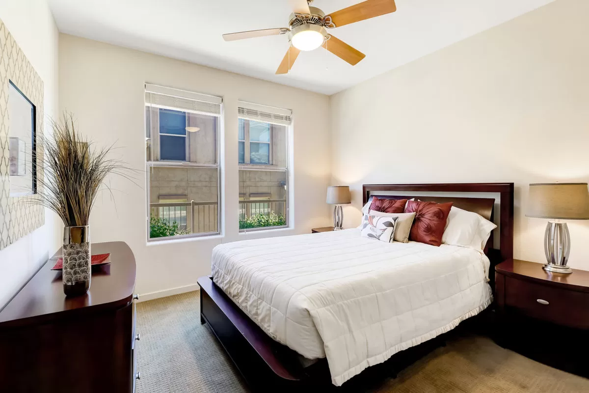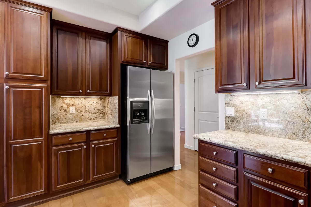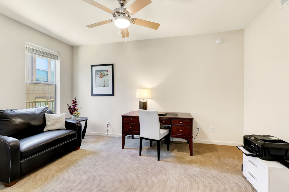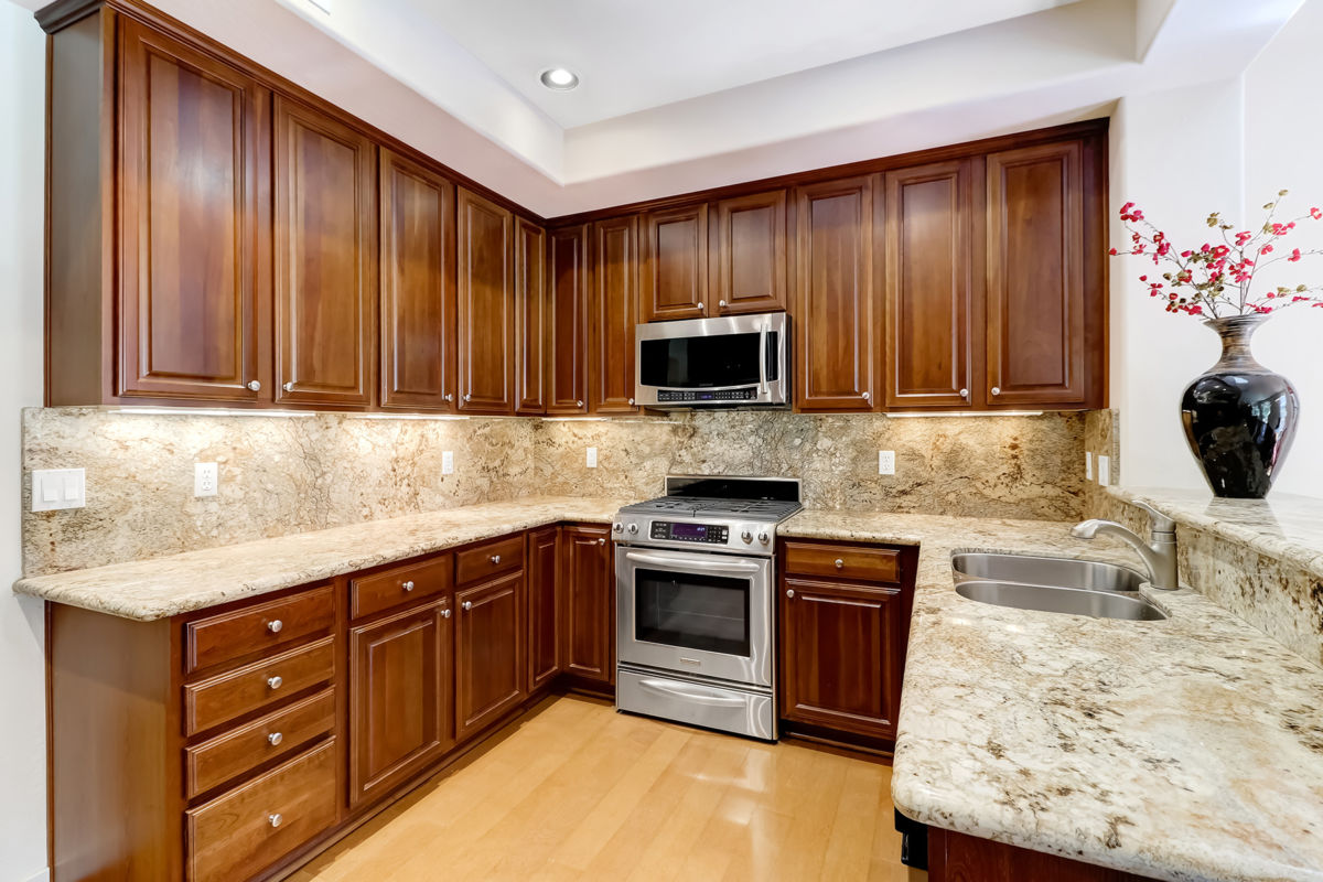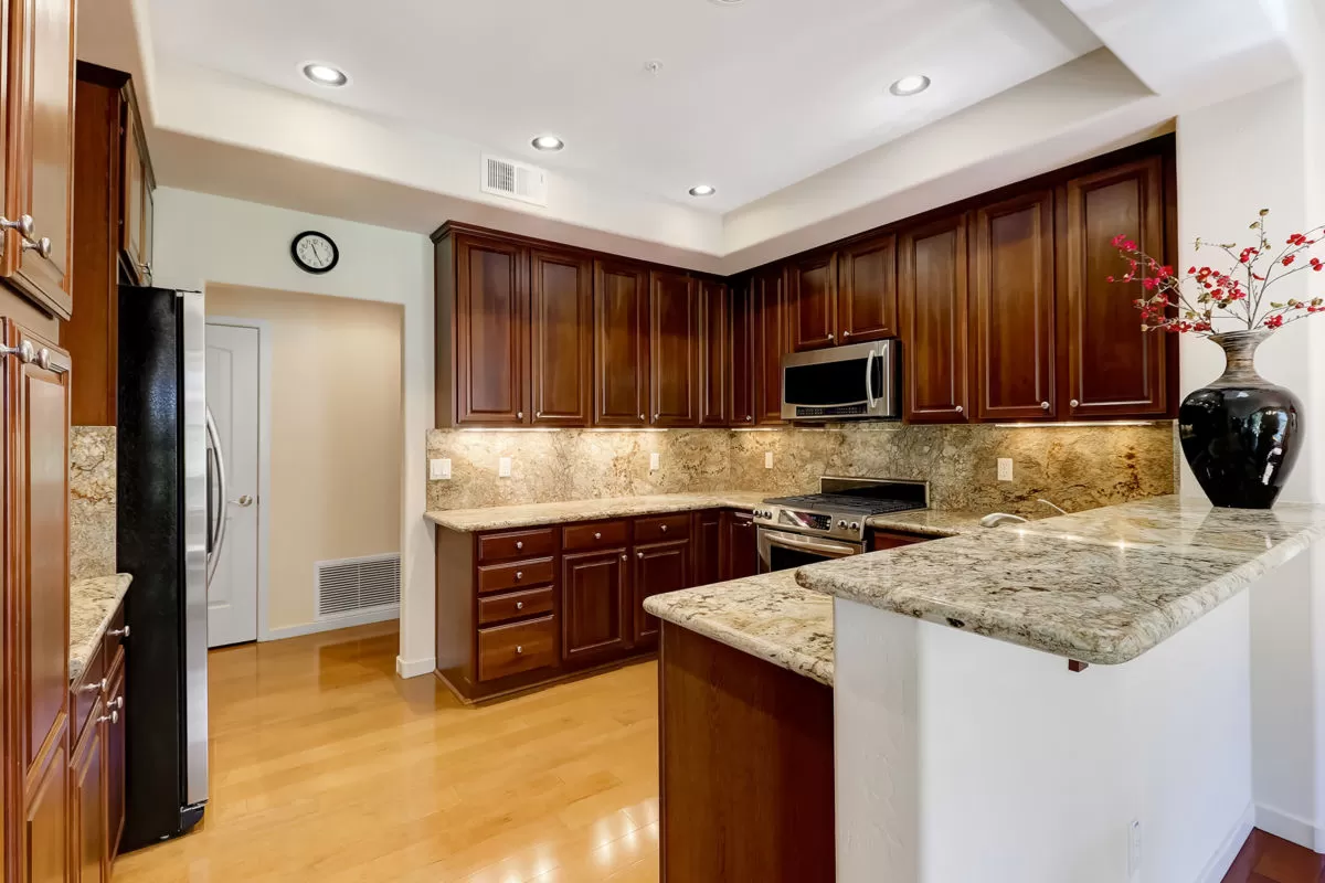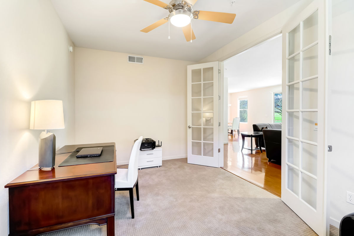 Light, bright and move in ready! Located in the gated community of the Ridge at Troon North this two bedroom plus den, two-bath home backs to the 9th Fairway of Troon’s Monument course. This ground level end unit has an open floor plan with no interior or exterior steps and a private side entry! The meticulously kept unit has a designer kitchen with warm cherry wood cabinetry, ample storage, stainless steel appliances with gas stove, bar seating, and gorgeous slab granite counters. The living room has a cozy fireplace, hardwood floors, built in shelving, and opening to both the den and dining room creating inviting gathering spaces.