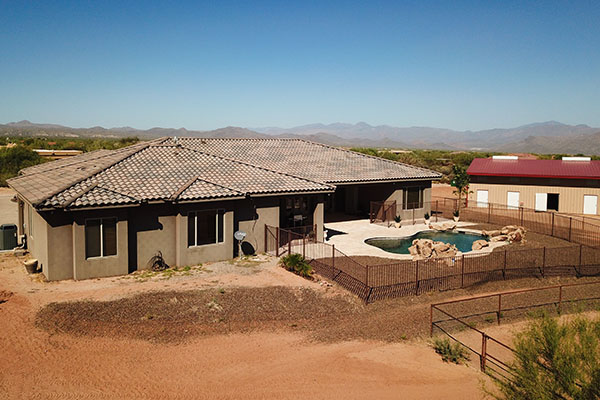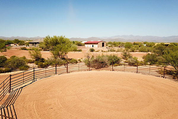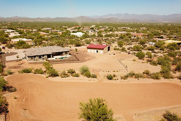 Nestled on 4.7 acres in Rio Verde Foothills, this compound provides plenty of room for multi-use activities and features an exceptional-quality, custom-built home newly constructed in 2014. Fitted for equestrian use with several graded open areas and a large 50×50-foot barn with two stalls, tack and feed storage, and two large doors for easy pull-through access for horse trailers or RVs, this home offers both privacy and exquisite mountain views.