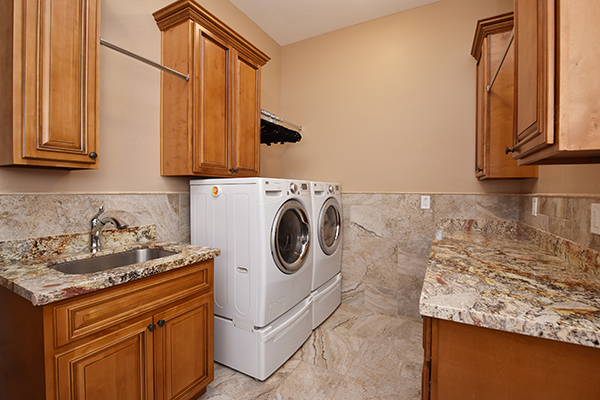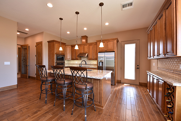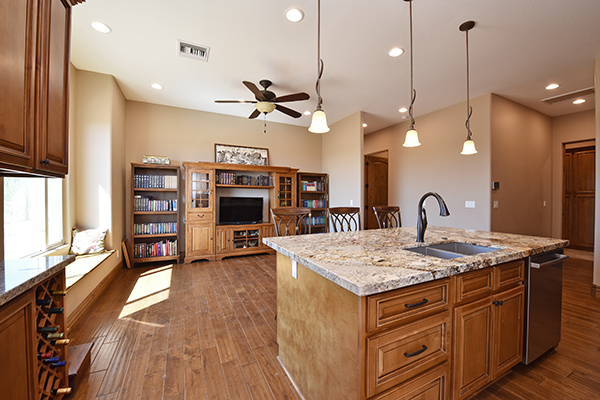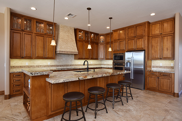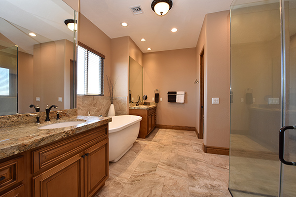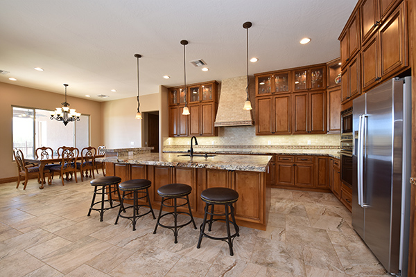 The beautiful kitchen with stainless-steel appliances, tiled backsplash and centerpiece hood vent, offers a large center island with eat-in seating and slab-granite counters. The large master suite includes a spa-like bath complete with a jetted soaking tub flanked by dual vanities, walk-in closet, and large walk-in shower with granite walls and multiple shower heads. The separate-entry guest quarters offers a full kitchen, living area, two additional bedrooms and a bathroom for full guest enjoyment.