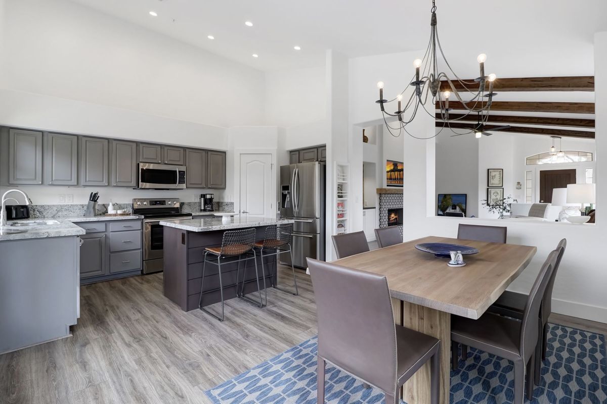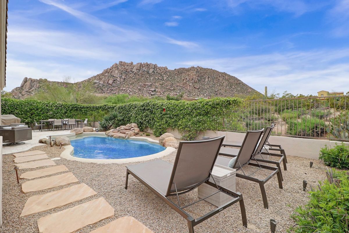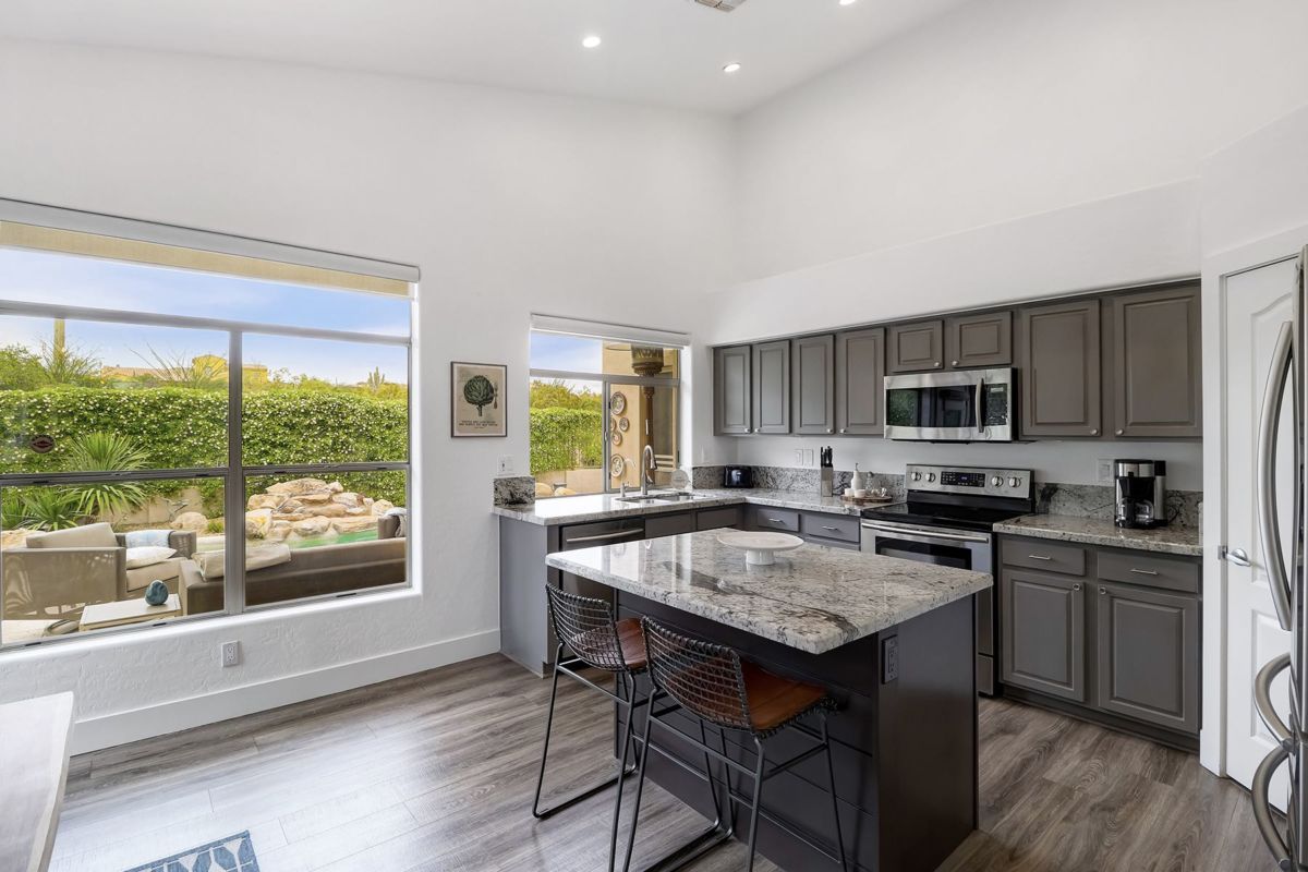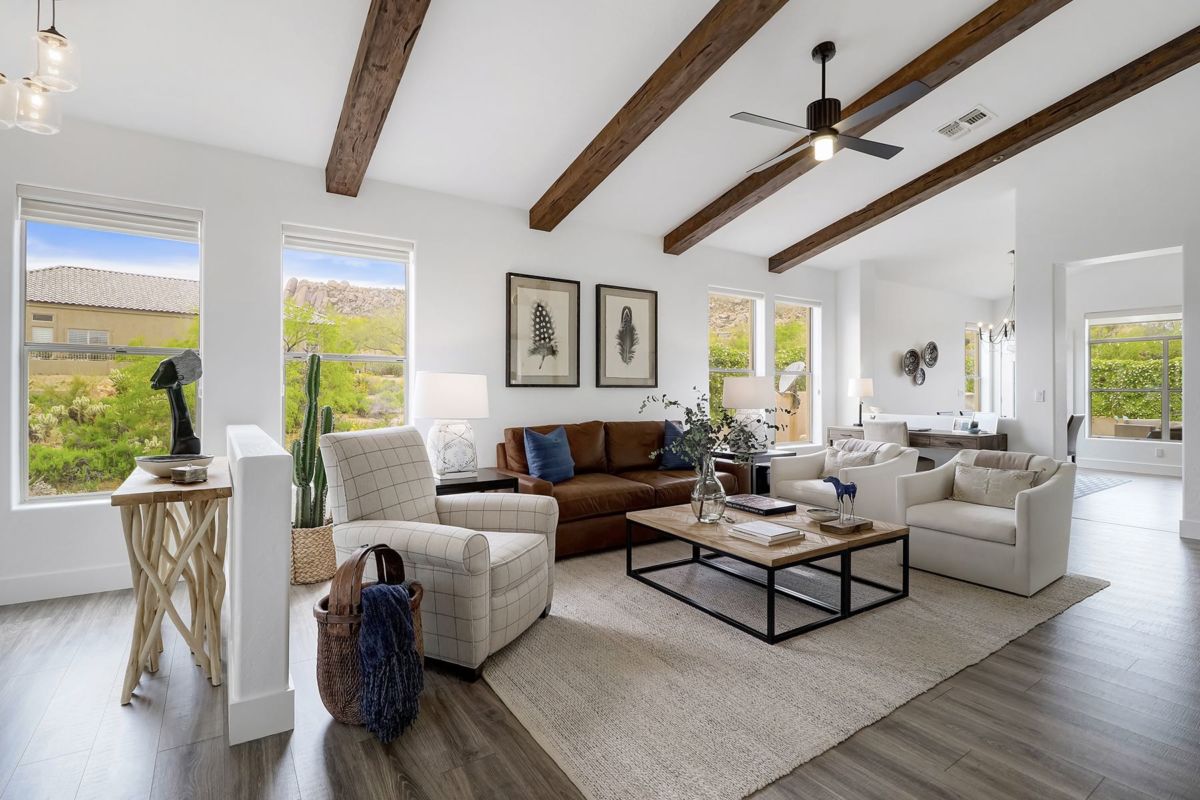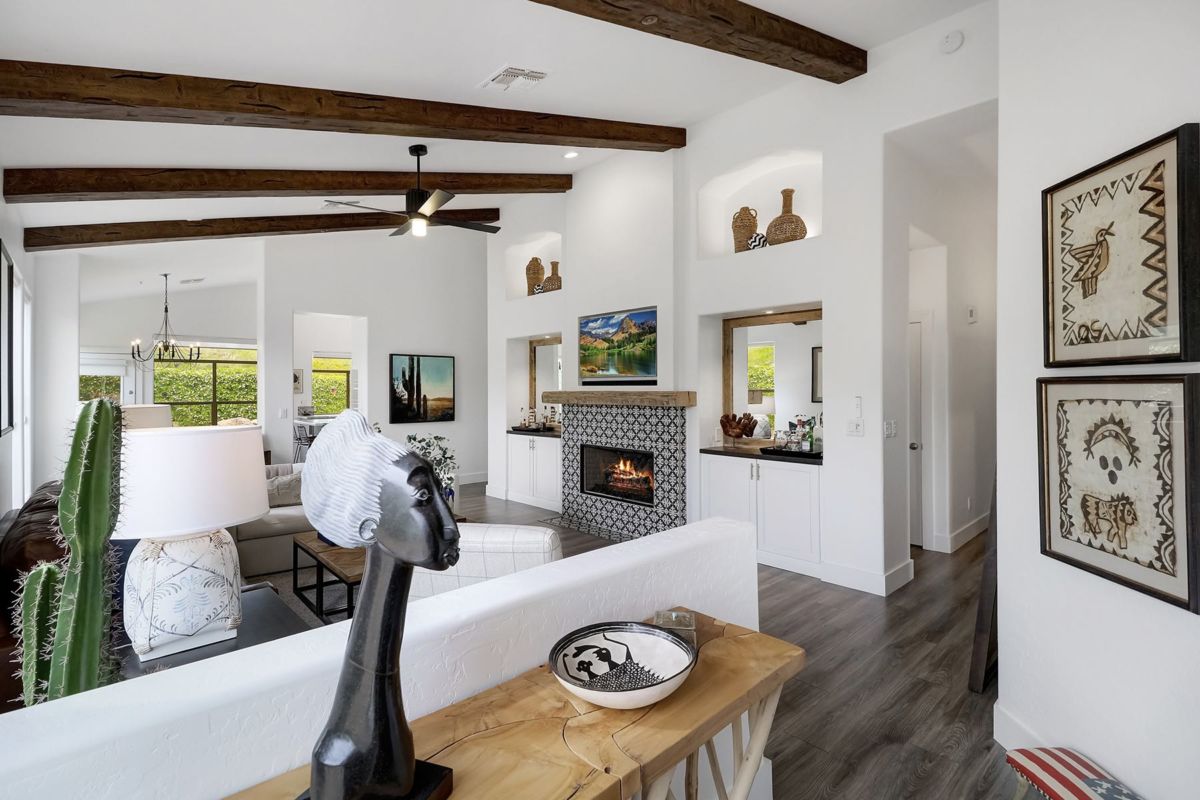 Sophisticated and stylish Santa Barbara inspired remodel in Saddleback features seamless design elements carefully selected for an on trend and timeless look. Situated on a corner lot with wonderful views of Troon Mountain and buffered on one side with NAOS, this three bedroom, two and a half bath 2,090 sq ft home is perfectly sized for year round enjoyment or a lock in leave for seasonal visiting.