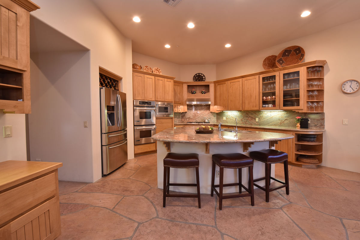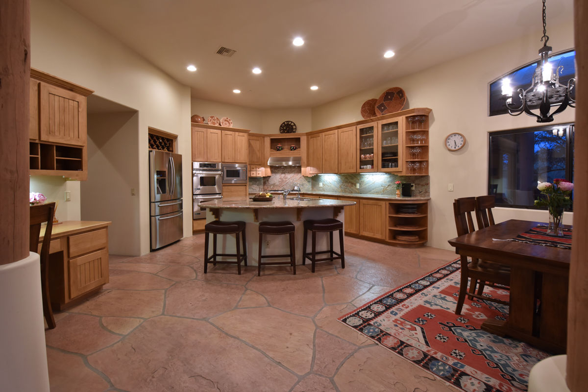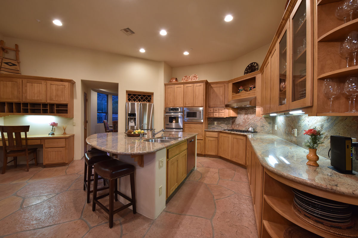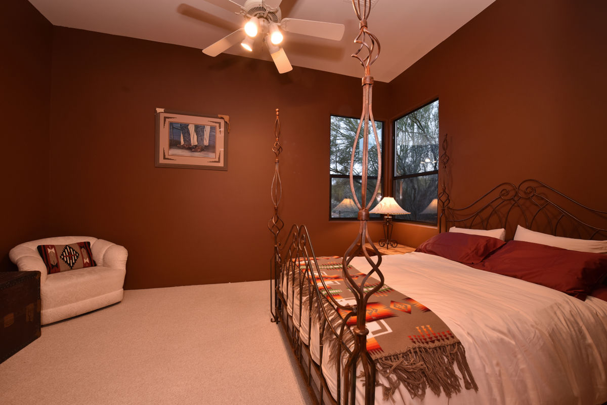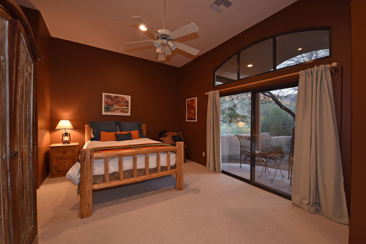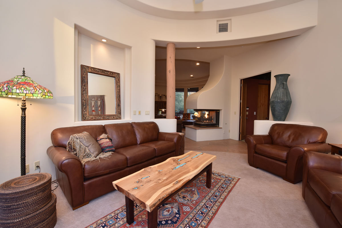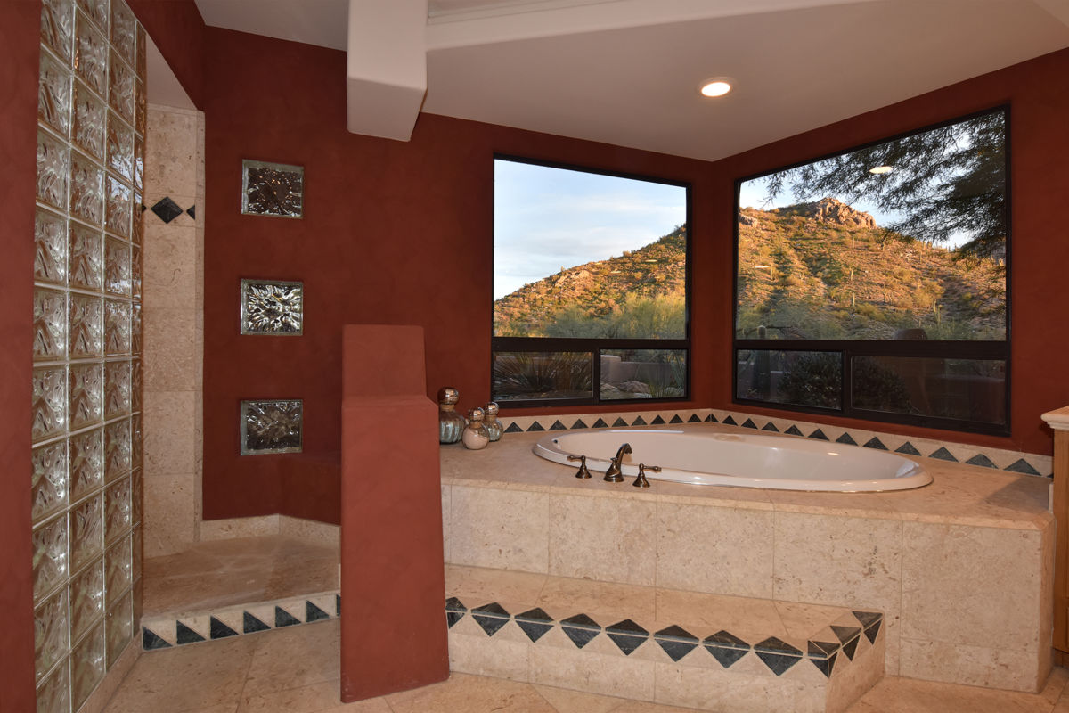 Tucked away in the gated community of Troon Ridge Estates II, you will find this southwest inspired custom home perfectly cradled between Troon Mountain and the McDowell Mountain range. Enjoy the views from the gated front courtyard with fireplace and lounge area before being ushered in to the entry rotunda accented by vega beams, and art niches. From the backyard enjoy up close mountain views from the numerous lounge and covered patio areas, and relax in the pool with new heater and filter and new wifi controls, all surrounded by mature landscaping.