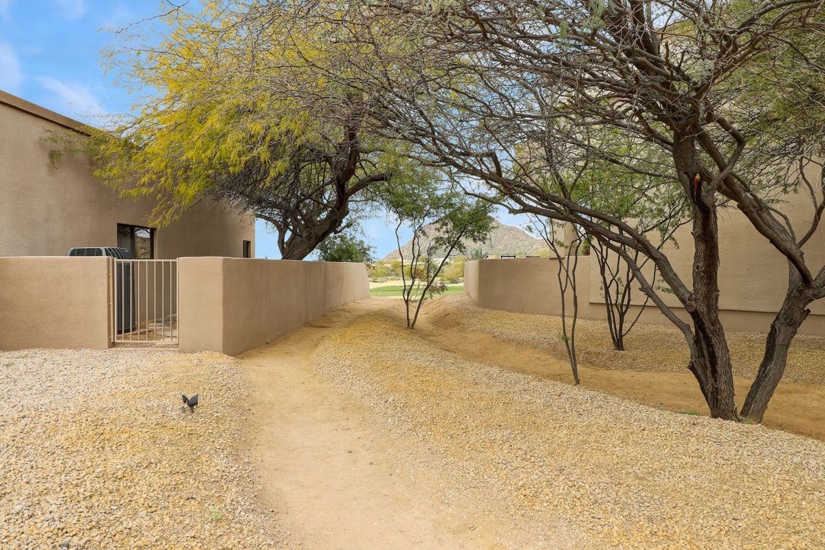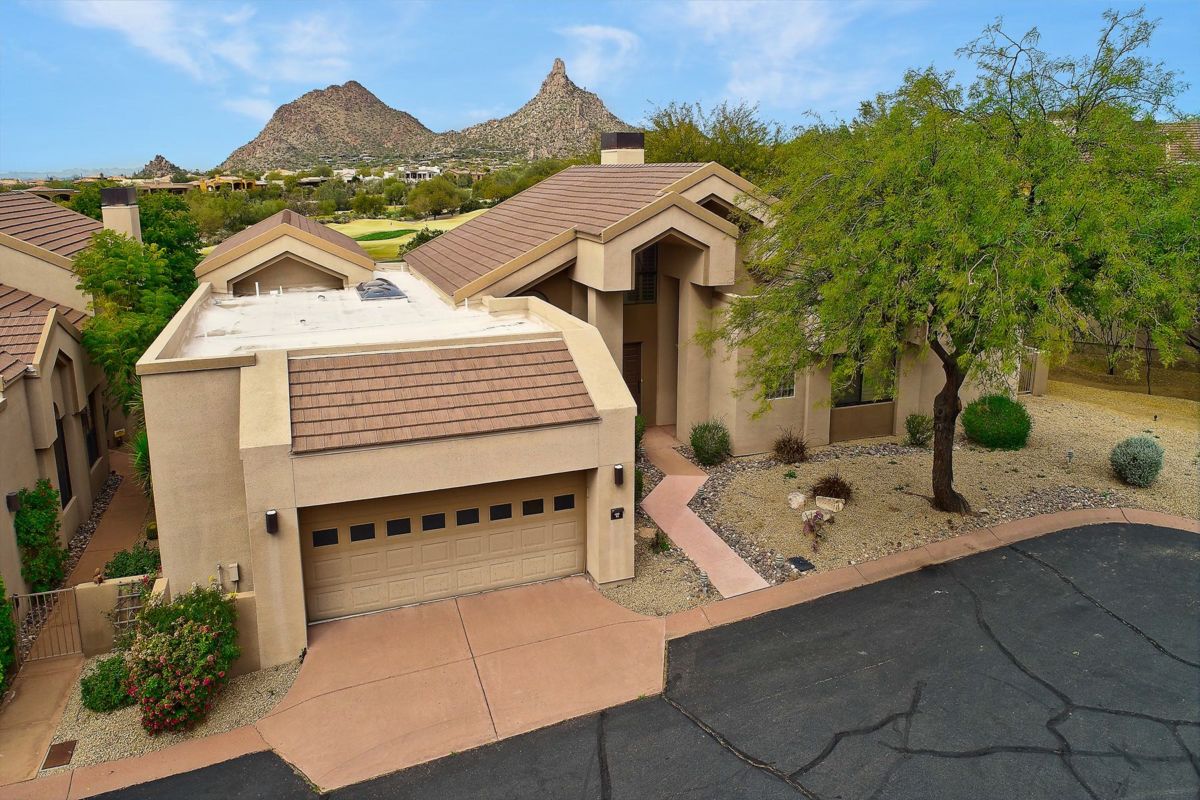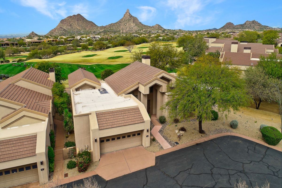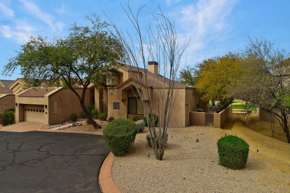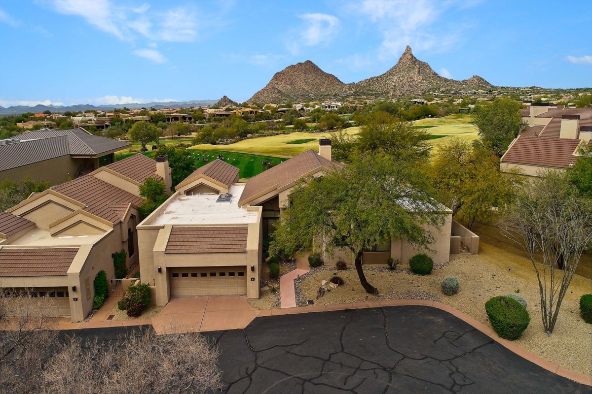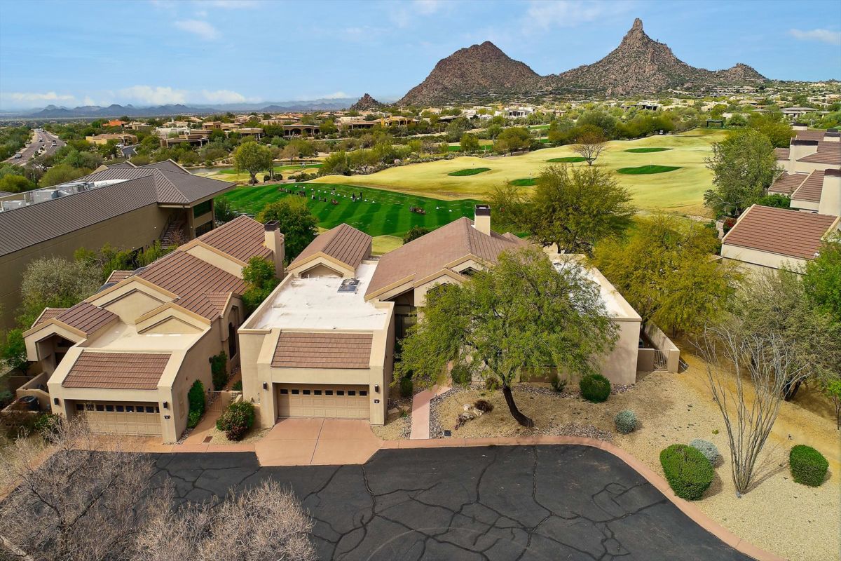 One of a kind opportunity to own this completely unique split floorplan three bedroom plus office, three and a half bath Ballantrae home with incredible views of Pinnacle Peak from almost every room. Located in the guard-gated section of Troon Village, two units were combined to create the largest single level unit in the community.