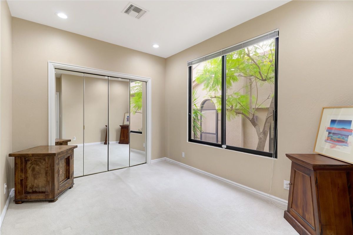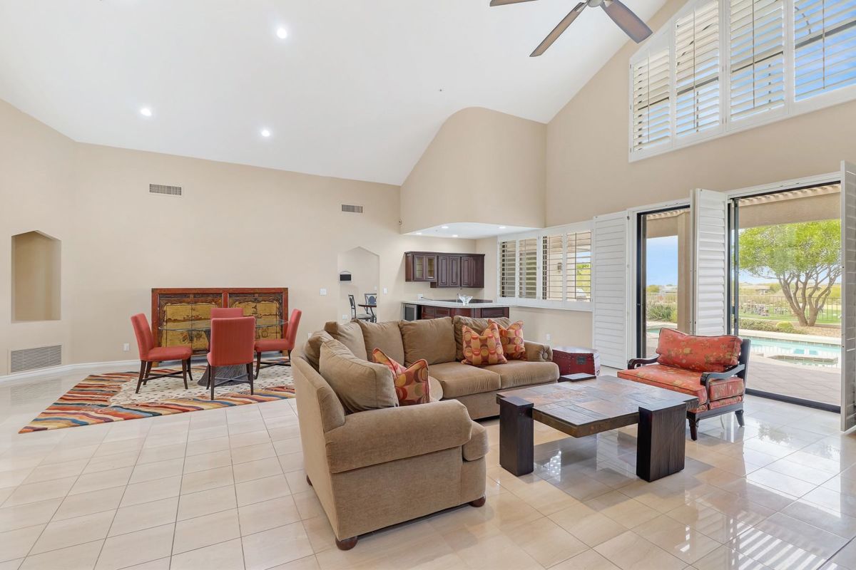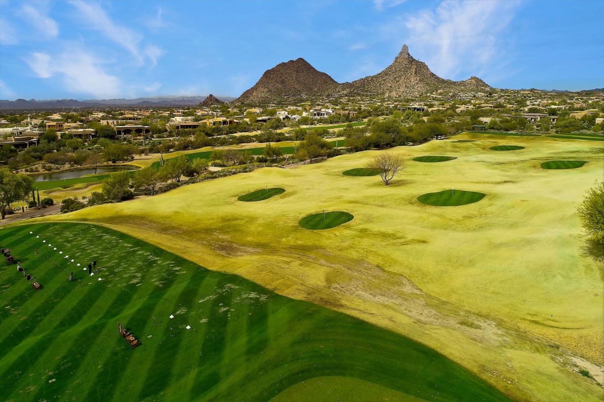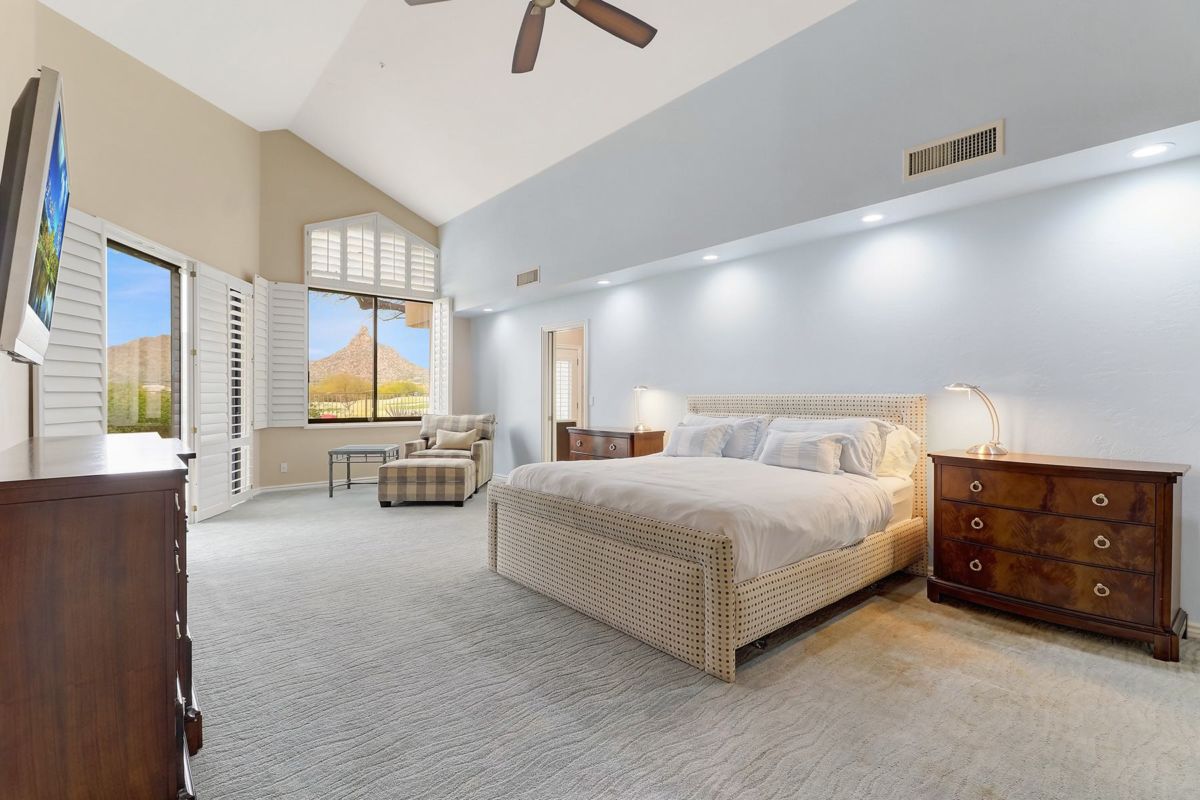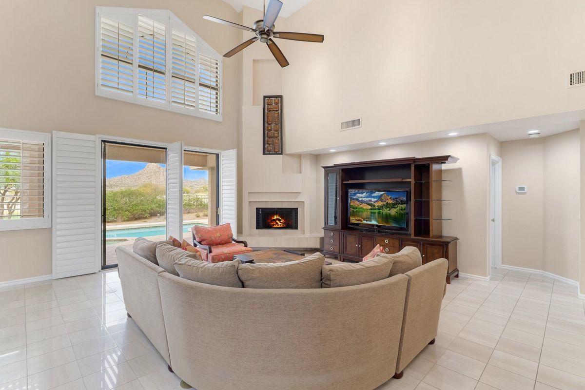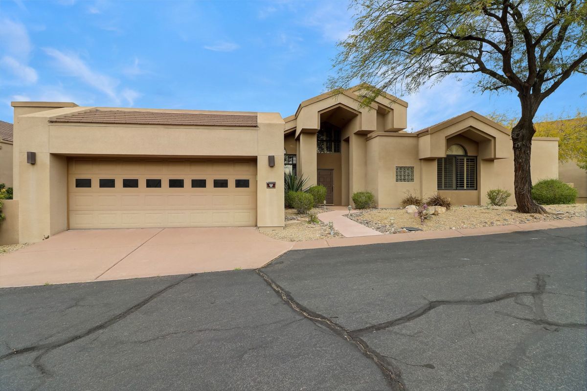 One of a kind opportunity to own this completely unique split floorplan three bedroom plus office, three and a half bath Ballantrae home with incredible views of Pinnacle Peak from almost every room. Located in the guard-gated section of Troon Village, two units were combined to create the largest single level unit in the community.