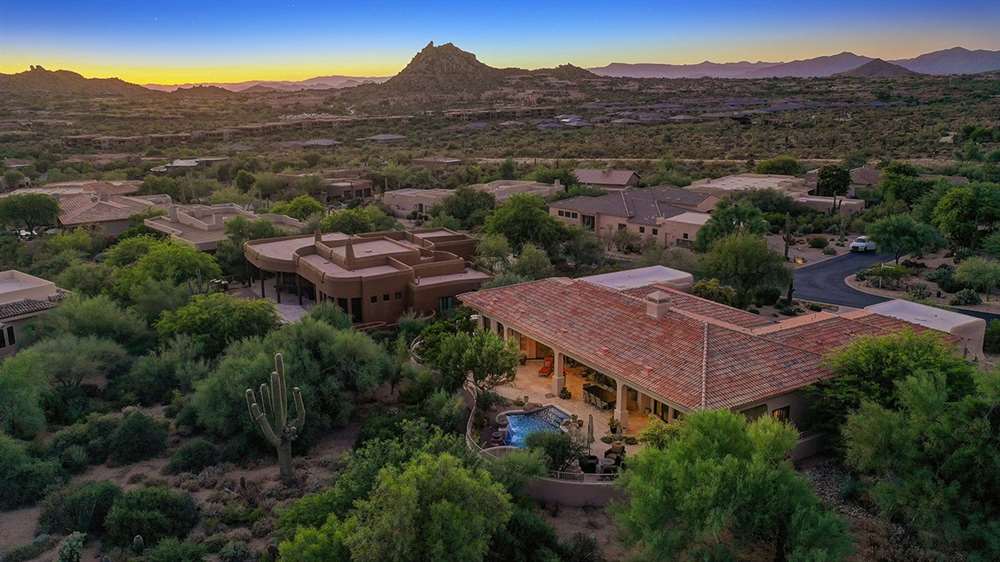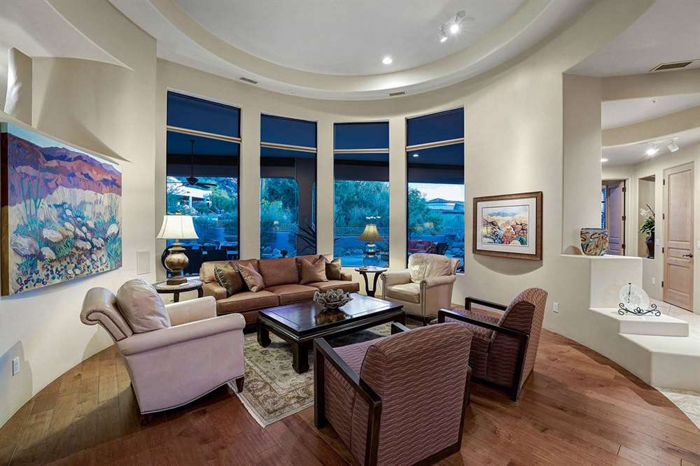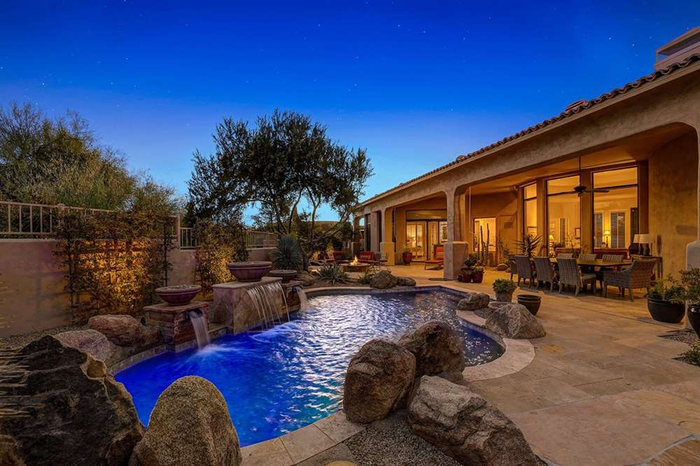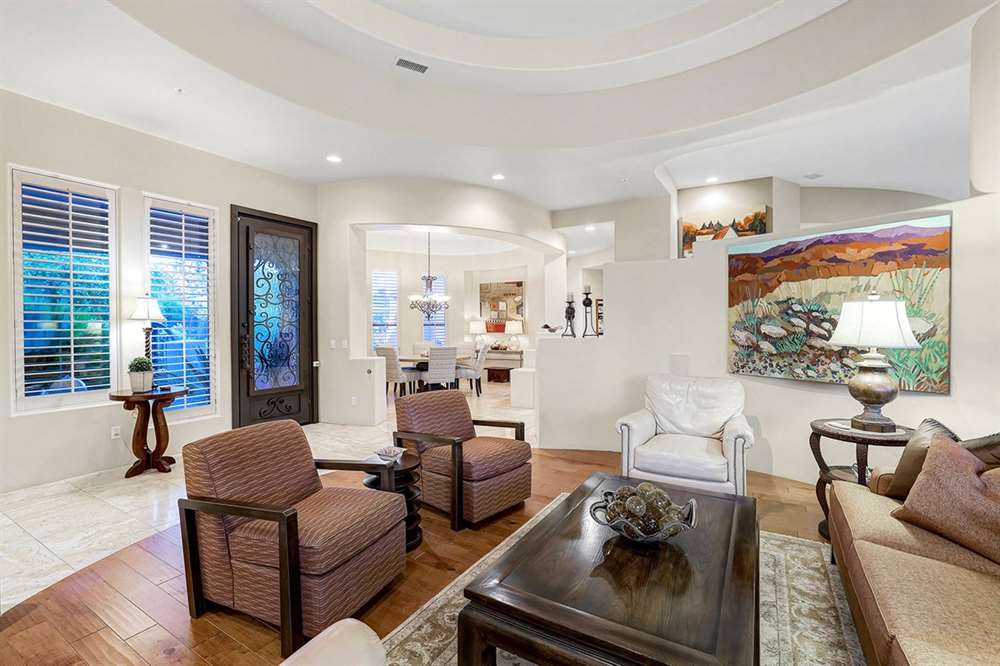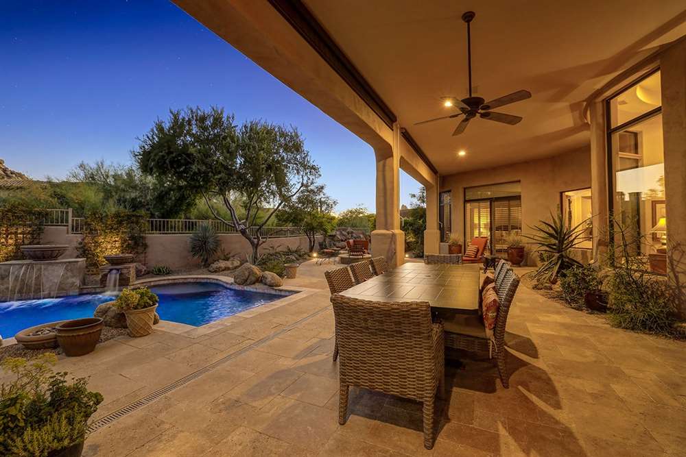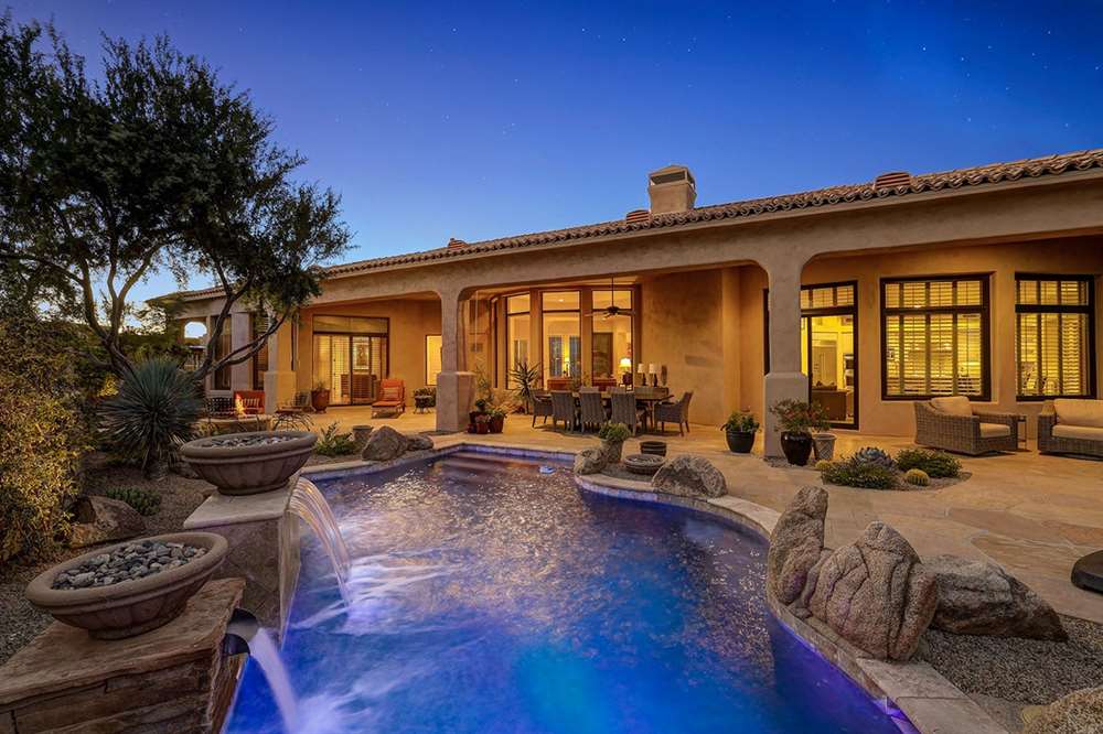 Other features include an office with wine room, wood floor accents, new comfort height toilets, new insulation throughout including the garage, remote controlled shades and plantation shutters, water softener, hot water recirculation pump, two newer A/C units, formal living and dining spaces and neutral tile and paint throughout. This is the best of Troon!